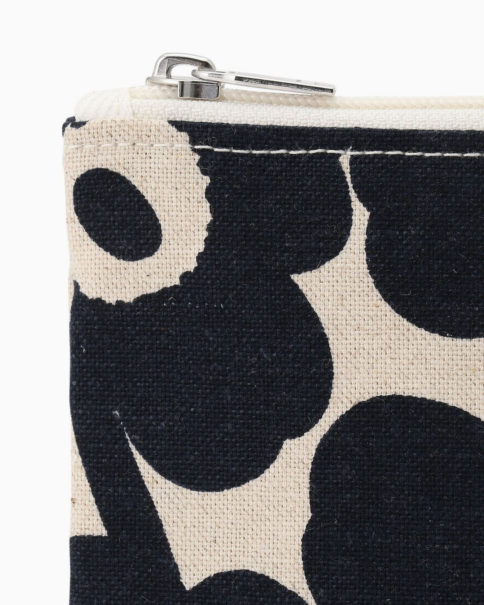 花をモチーフにした「Unikko」プリントのポーチ。コットン×麻のブレンド素材でナチュラルな風合いに仕上げています。小物をまとめるのに丁度良いサイズ感、間口はジップクロージャー。実用的なアイテムはギフトとしてもおすすめです。