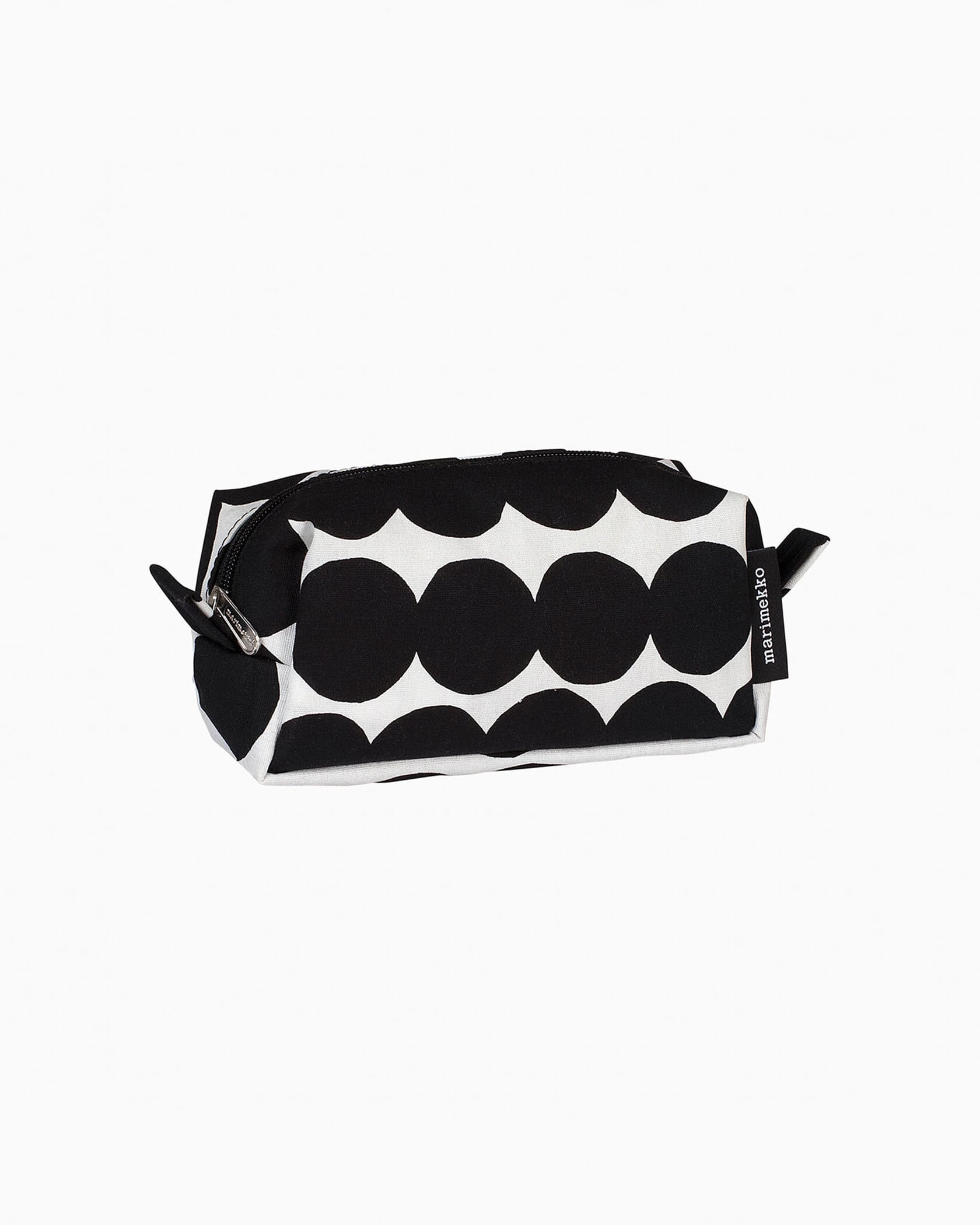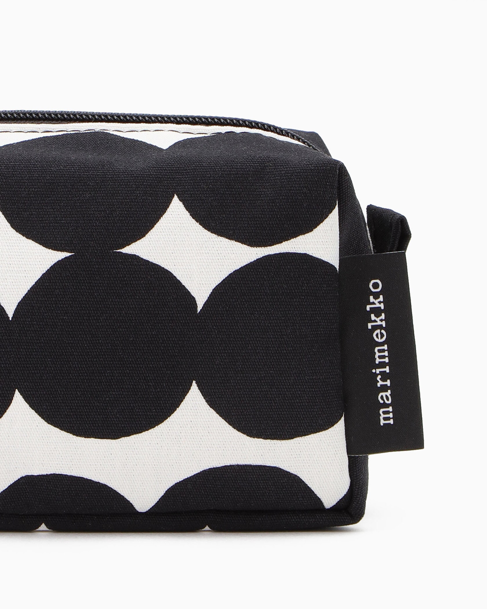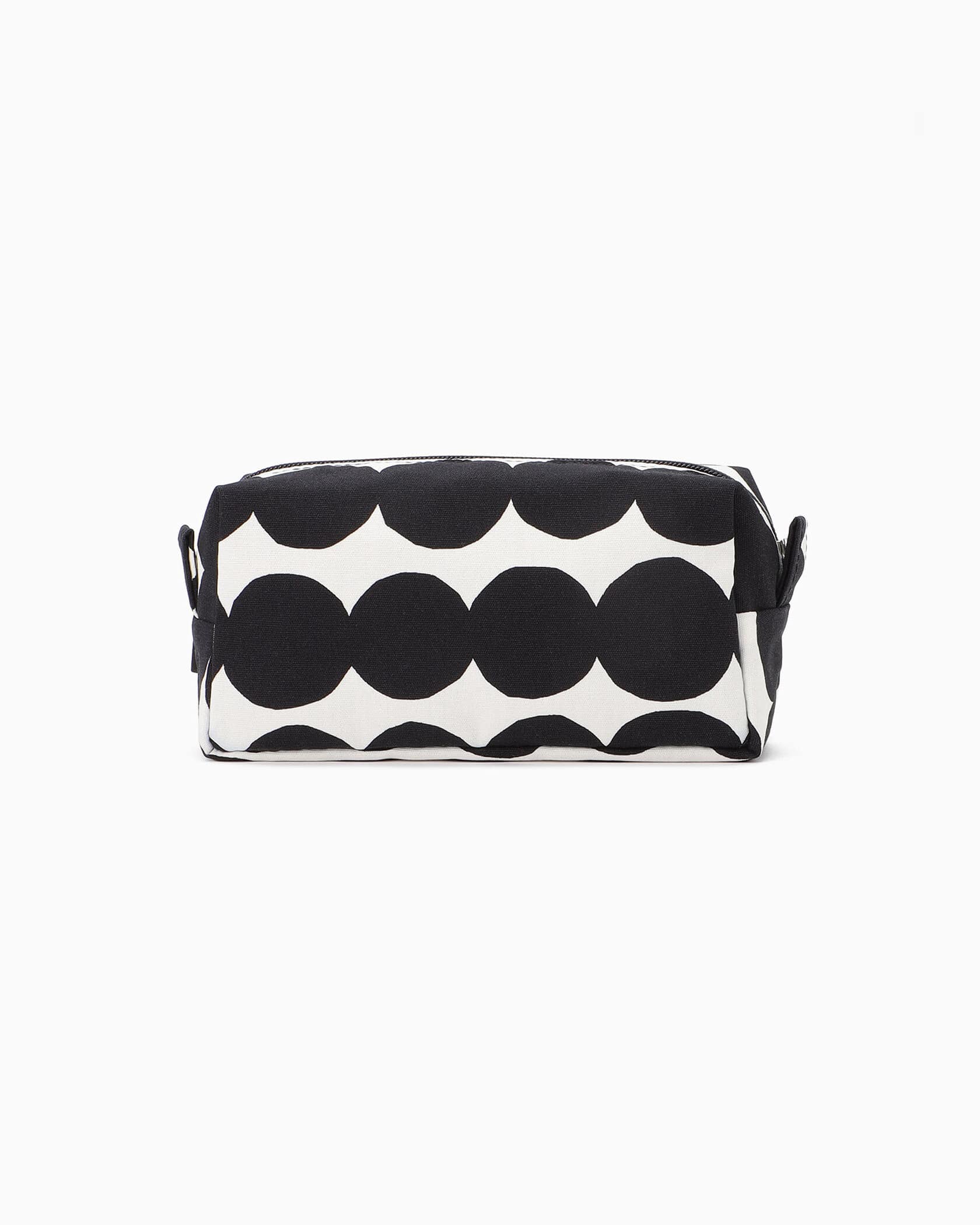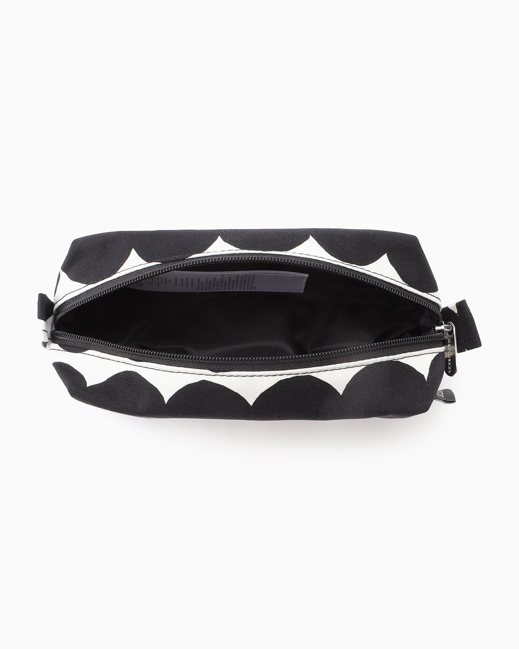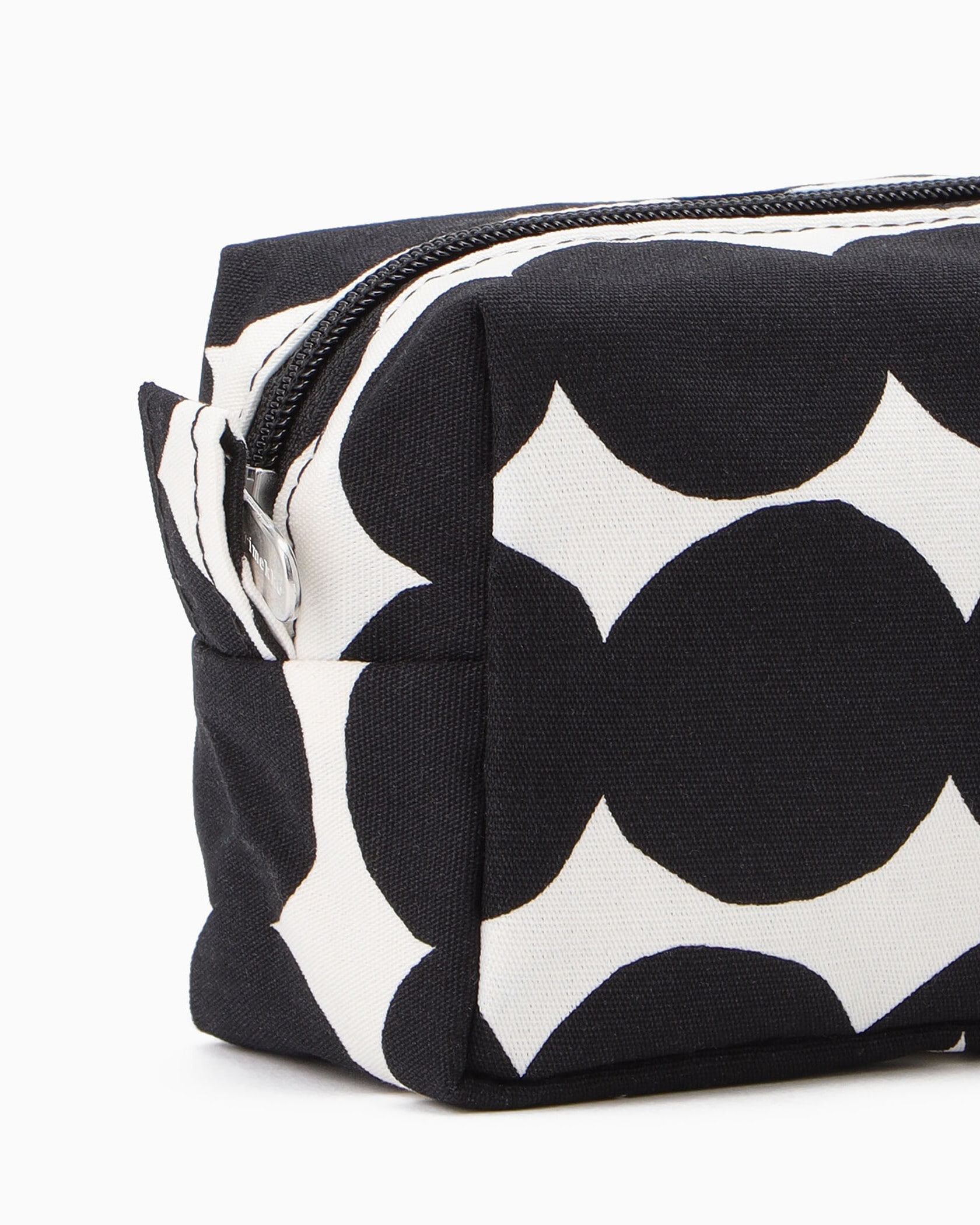 横長サイズで、バッグに収まりやすいスクエア型ポーチ。マチ幅がしっかりあり、容量たっぷりで使いやすさも抜群です。間口のファスナーはサイドまで大きく開くので、中身の出し入れもスムーズに。使い込まれたラグを意味する「Rasymatto」柄は、すっきりとしたバイカラーデザインがポイントです。