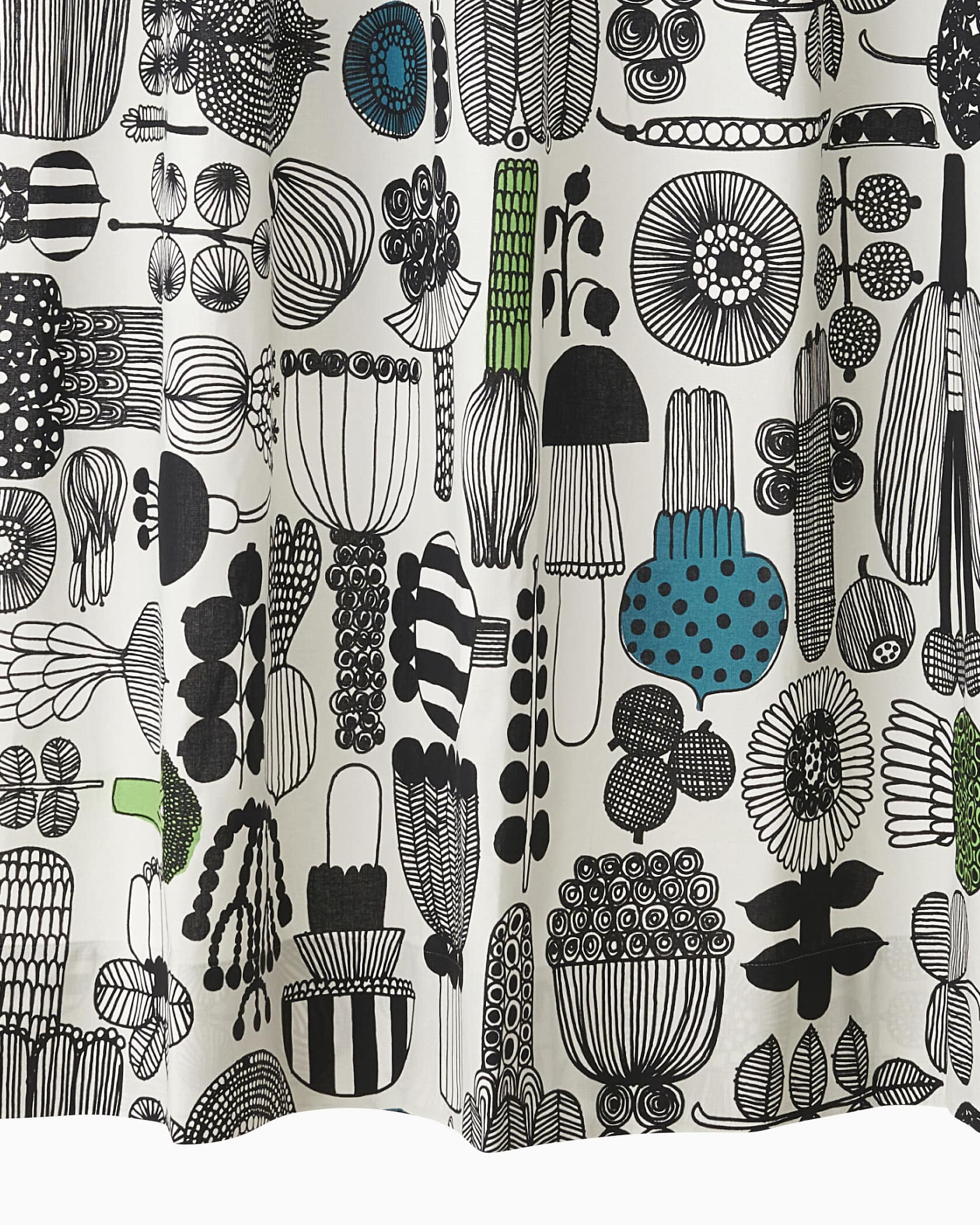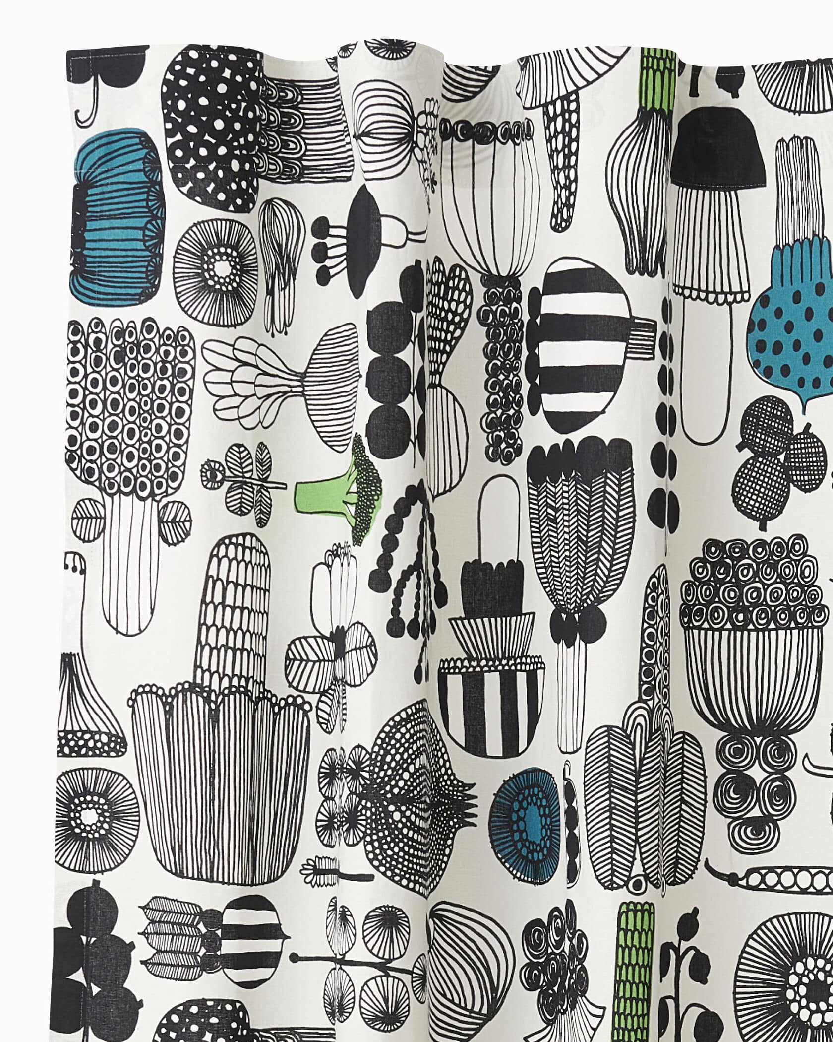 最高の庭師を意味する、Puutarhurin Parhaat(プータルフリン パルハート)パターンのカーテン110cm。様々な野菜を線画で表現したプレイフルなデザイン。モノトーンをベースに、グリーン系のアクセントカラーを取り入れています。