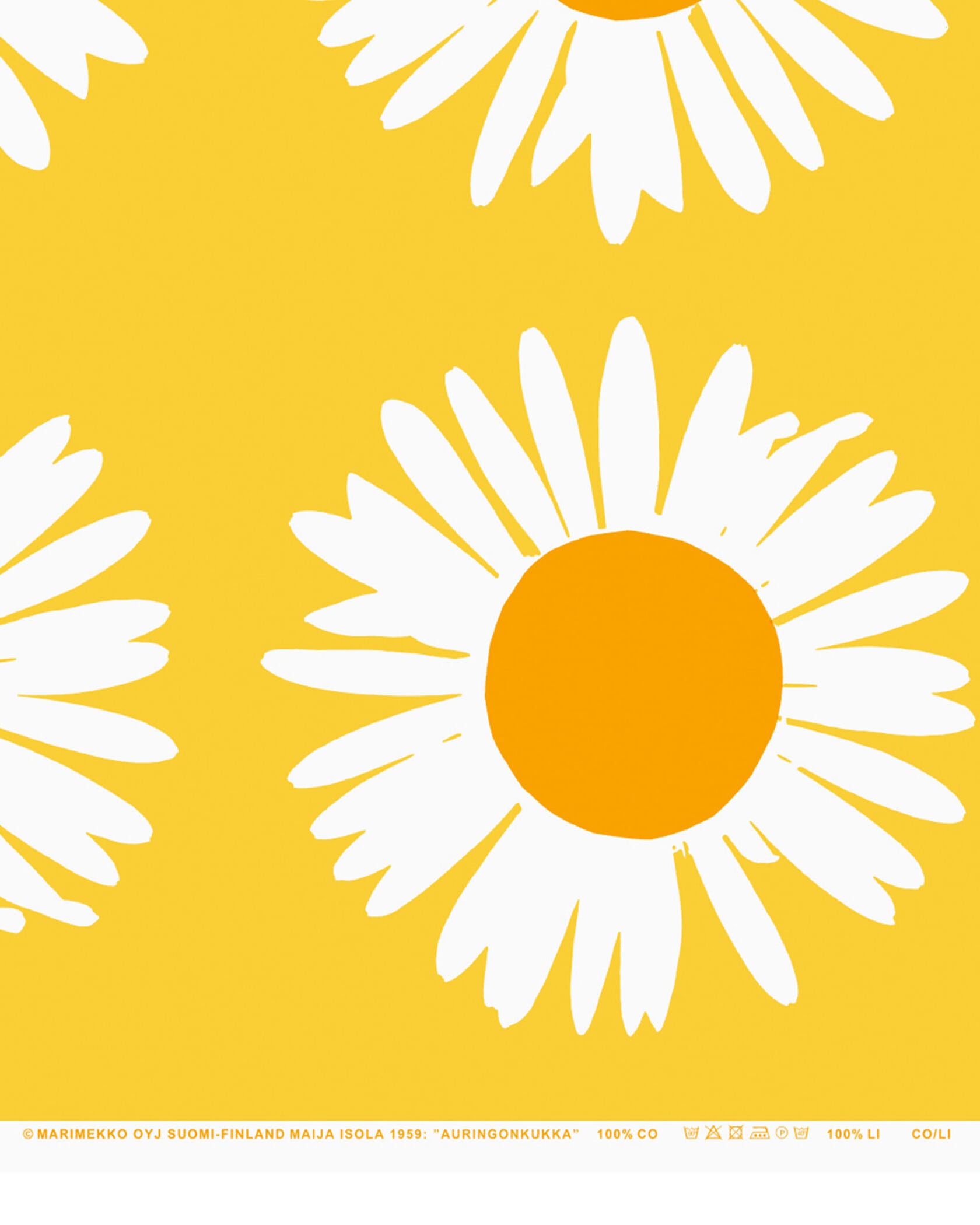 マイヤ・イソラは自身が愛してやまない自然を題材に、数多くの作品を制作しました。そんな作品のひとつでひまわりをモチーフに描いた、喜びあふれるデザインです。