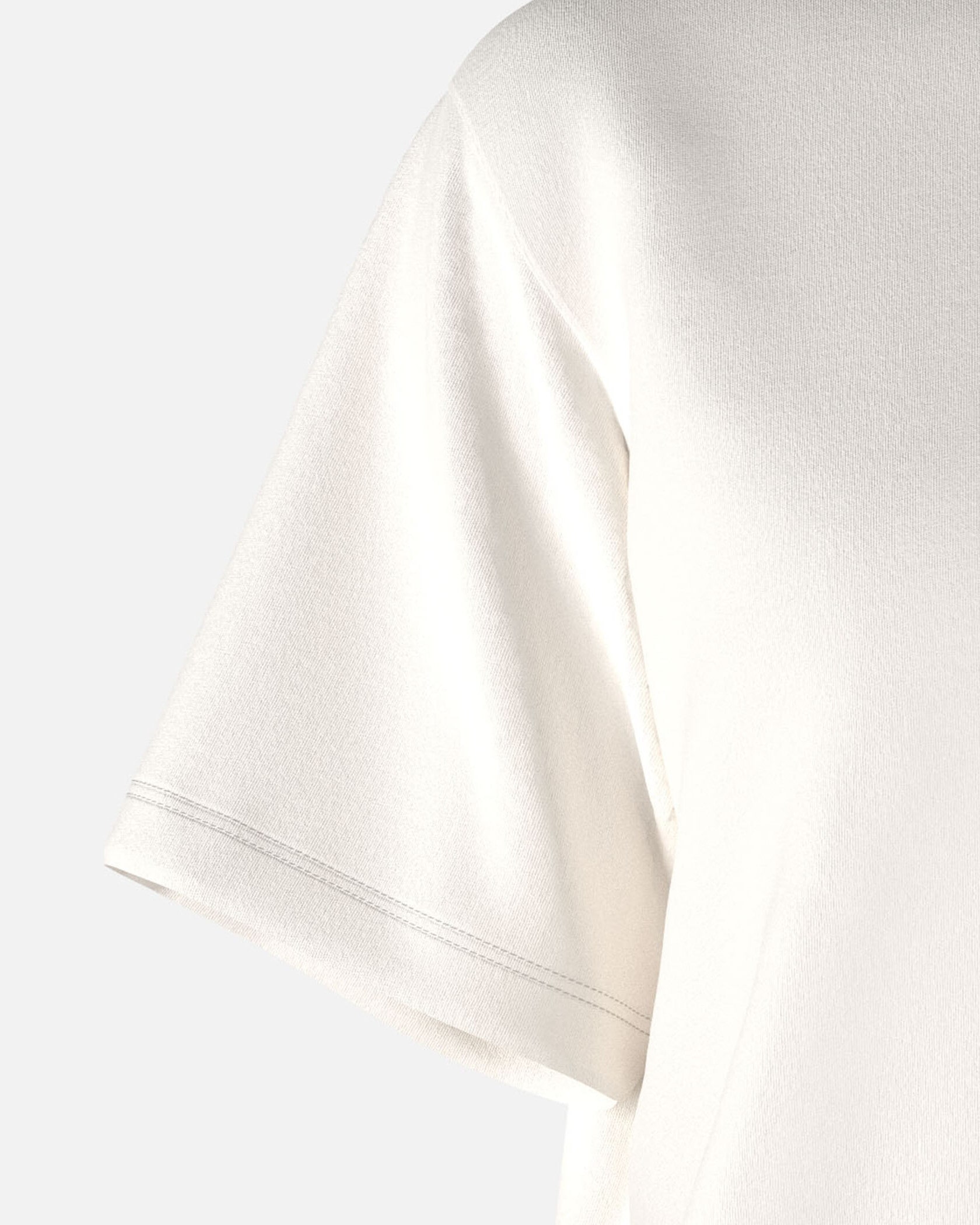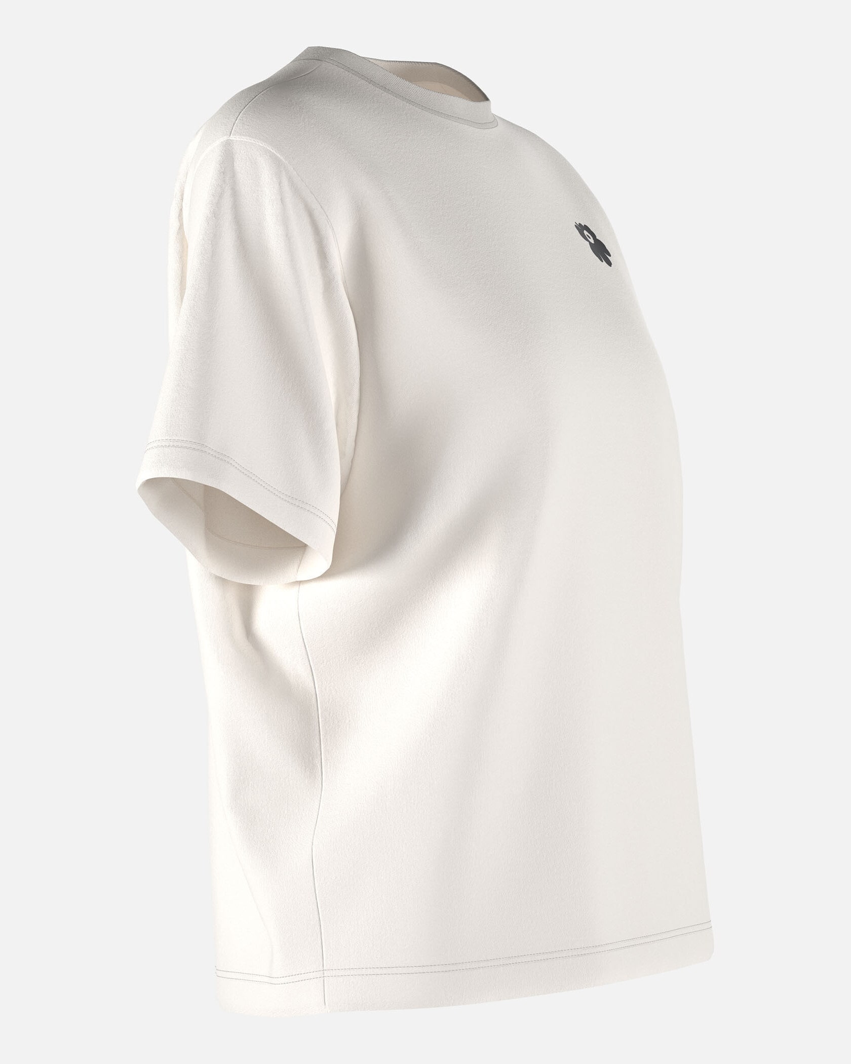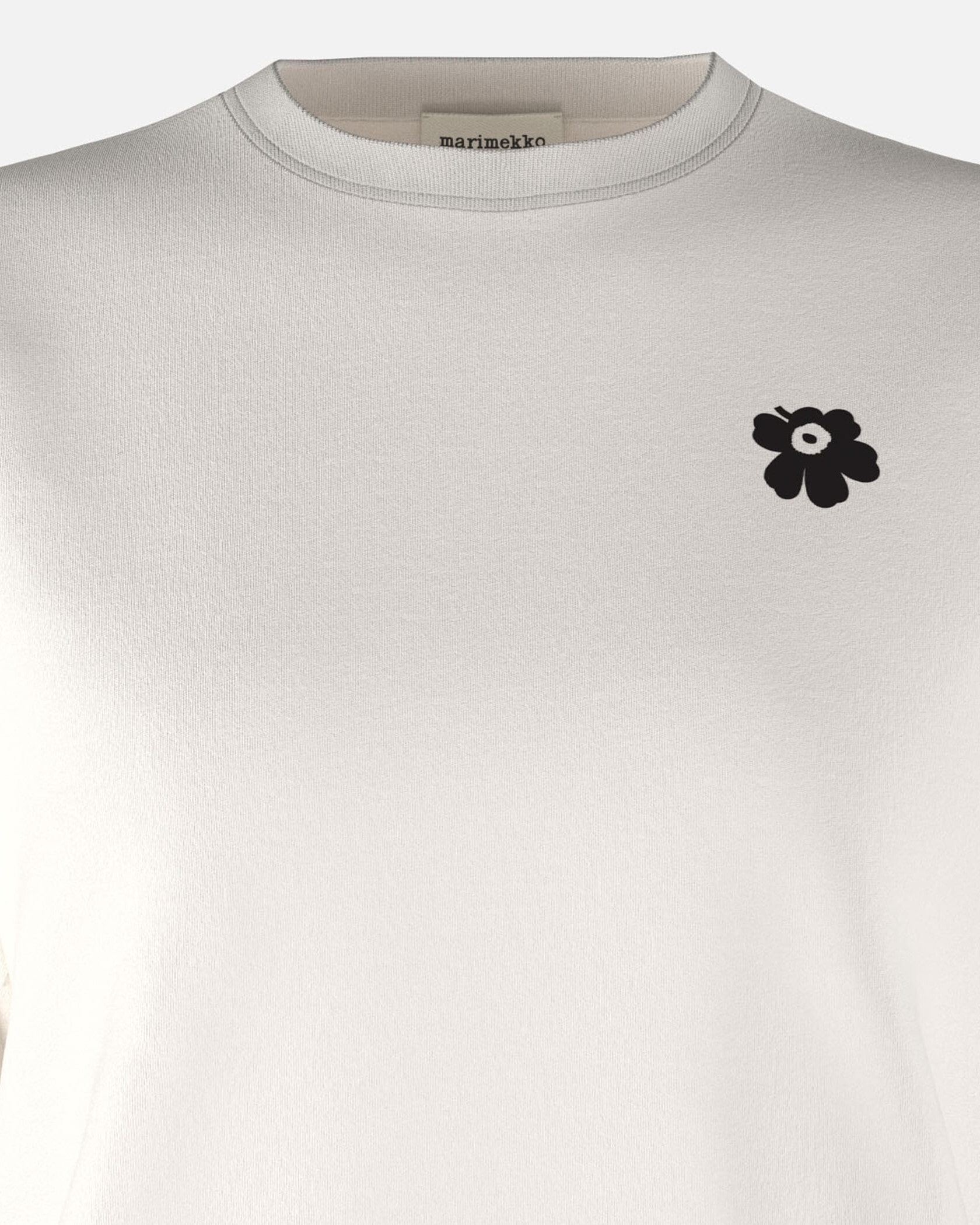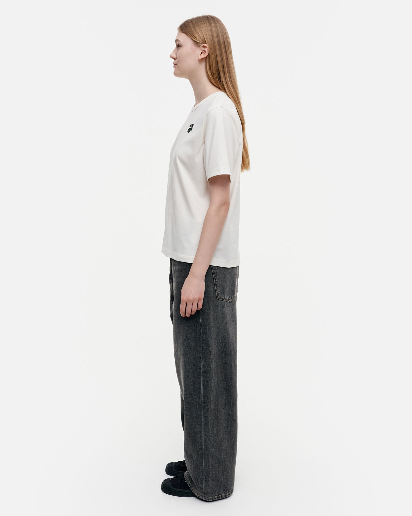 胸もとに花をモチーフにした小さなUnikko柄のプリントをあしらったTシャツ。肌触りの良いオーガニックコットンジャージー素材を採用。程よいゆとりのあるリラックスフィットシルエットで仕上げています。シンプルなデザインはコーディネートに合わせやすくおすすめです。