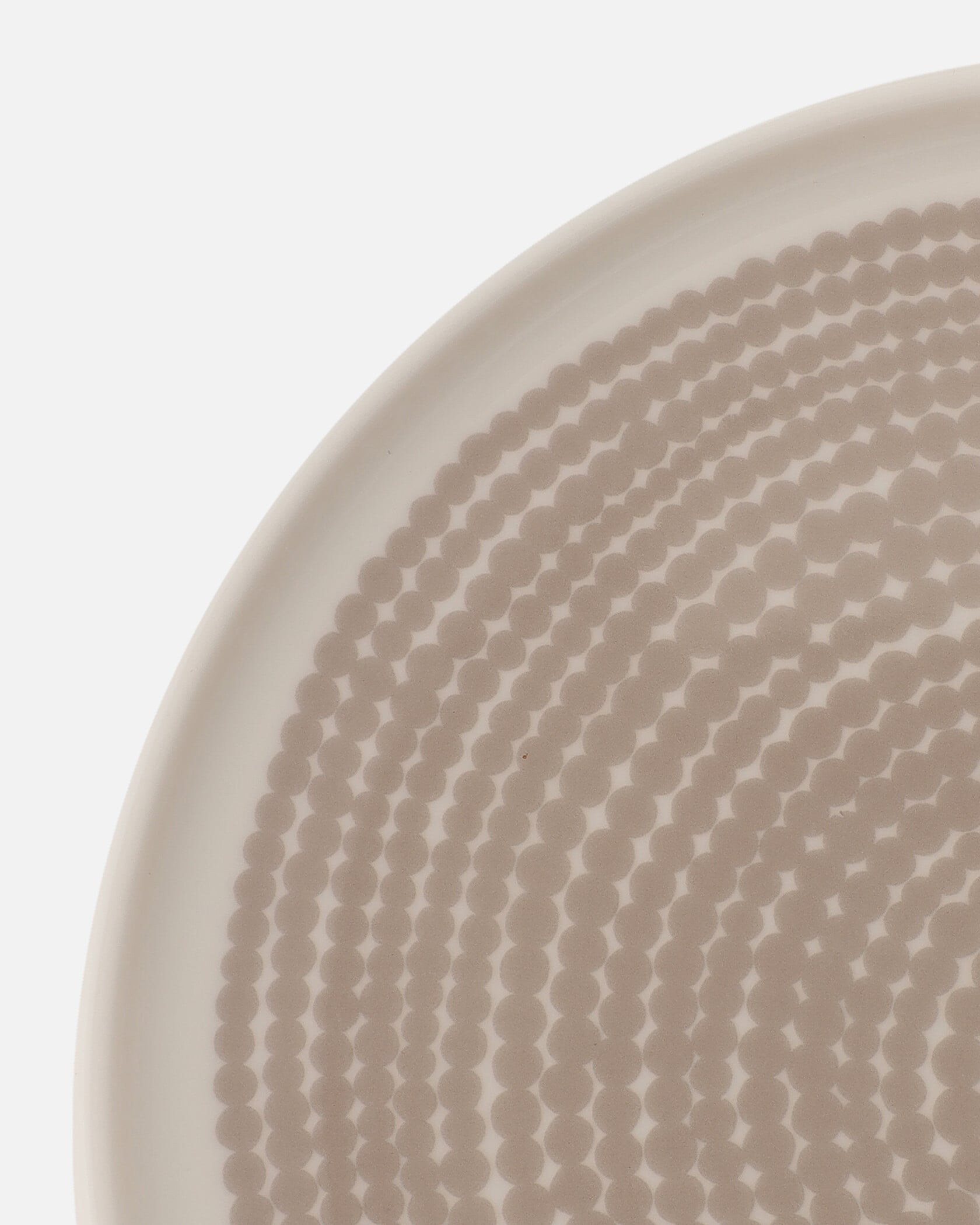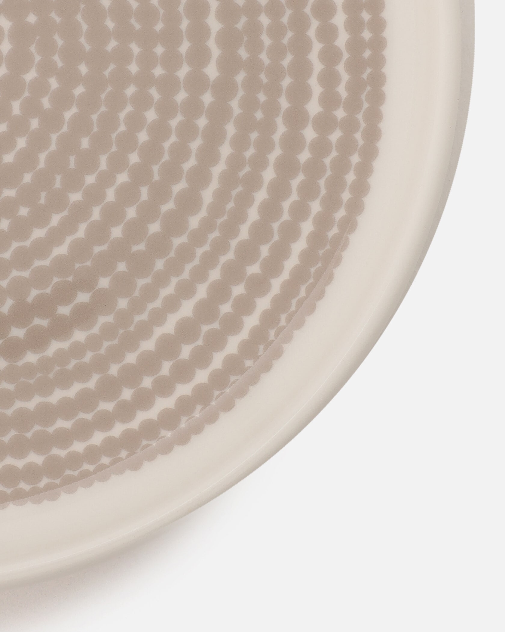 リズミカルなドットが配されたRasymatto柄のラウンド型プレート。フリーハンドのドットがスタイリッシュで印象的。アーティスティックなデザインながら、時代に左右されず長く使えるのも魅力。電子レンジ、冷凍、オーブン、食洗機対応で機能性も優秀。毎日のテーブルを彩る汎用性の高いアイテムです。