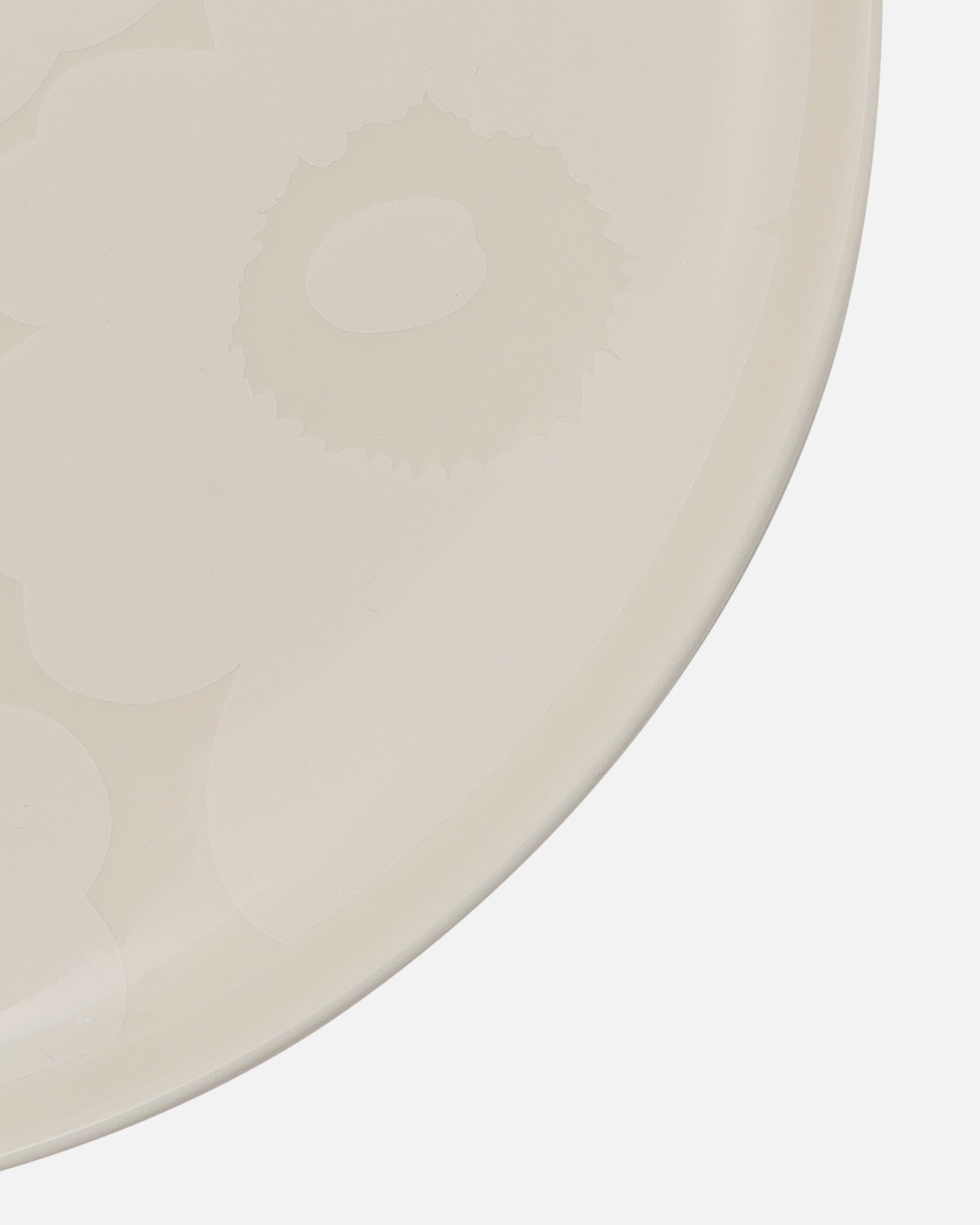 Marimekkoの人気のテキスタイルUnikko柄がプリントされたプレートです。プレートいっぱいに配置された花をお皿と同系色で落ち着きのある上品なデザインに仕上げています。どのお料理も盛りつけるだけでたちまち華やかに。おもてなしやホームパーティにもおすすめです。