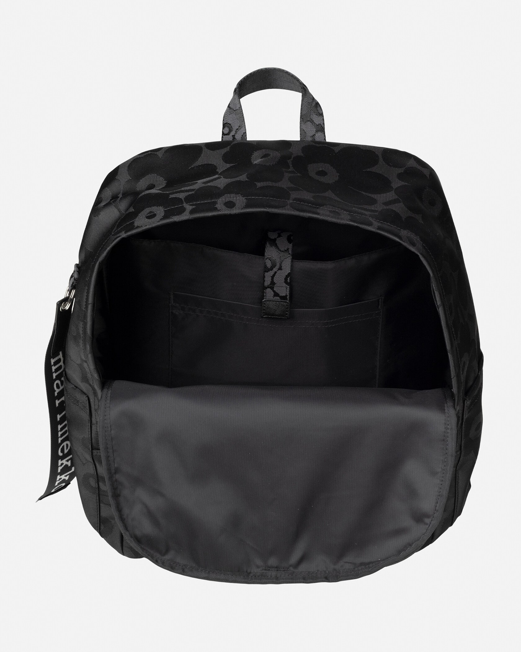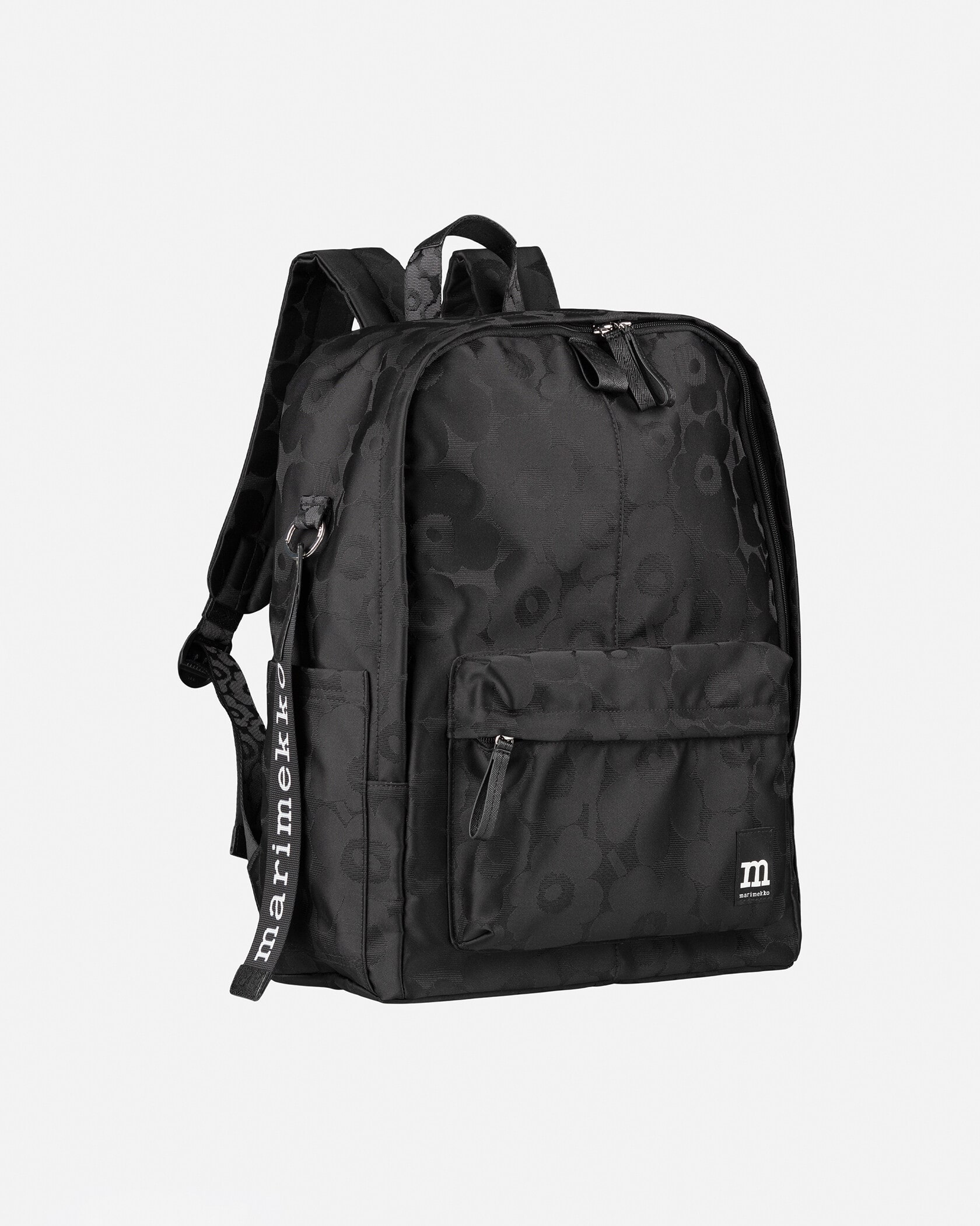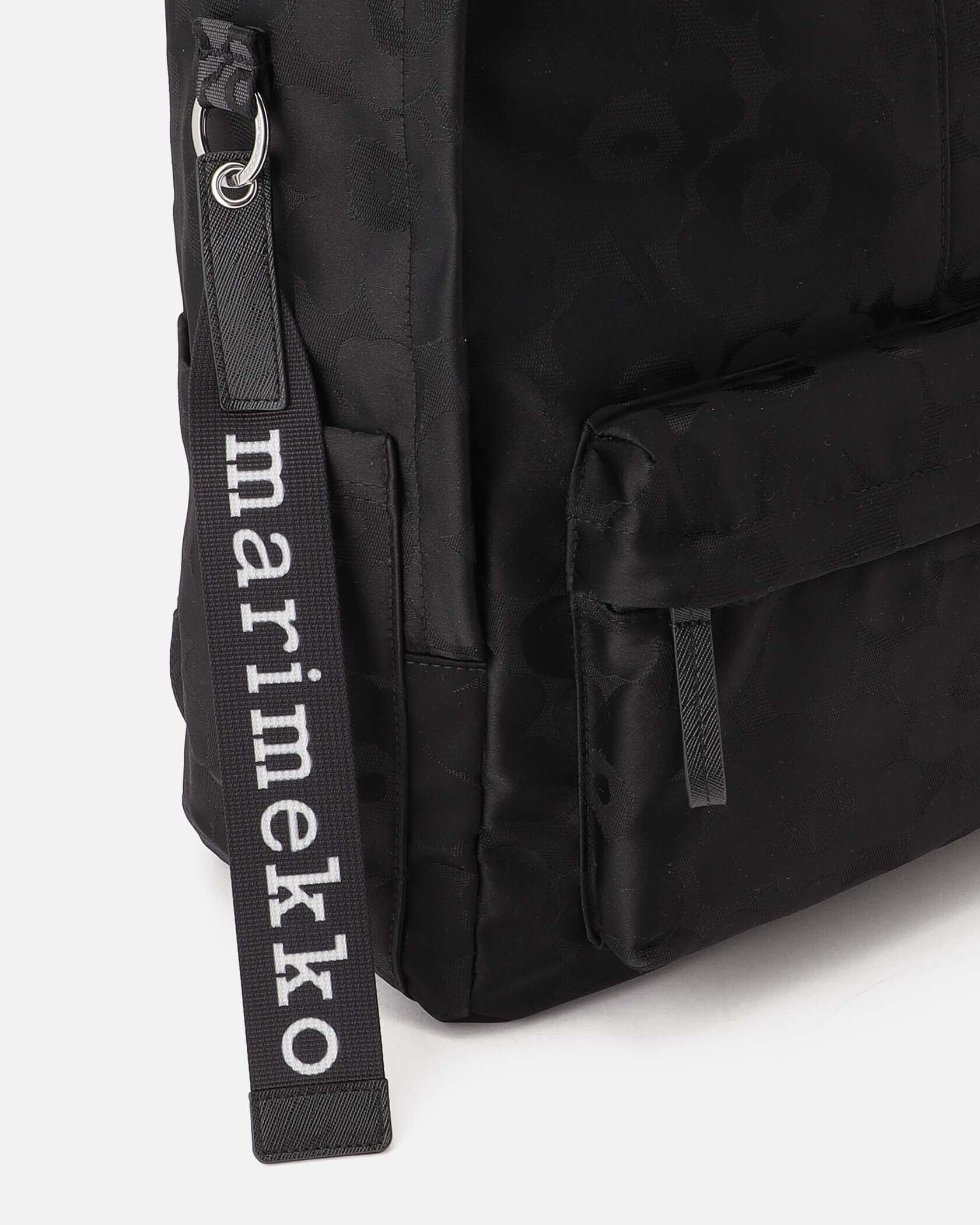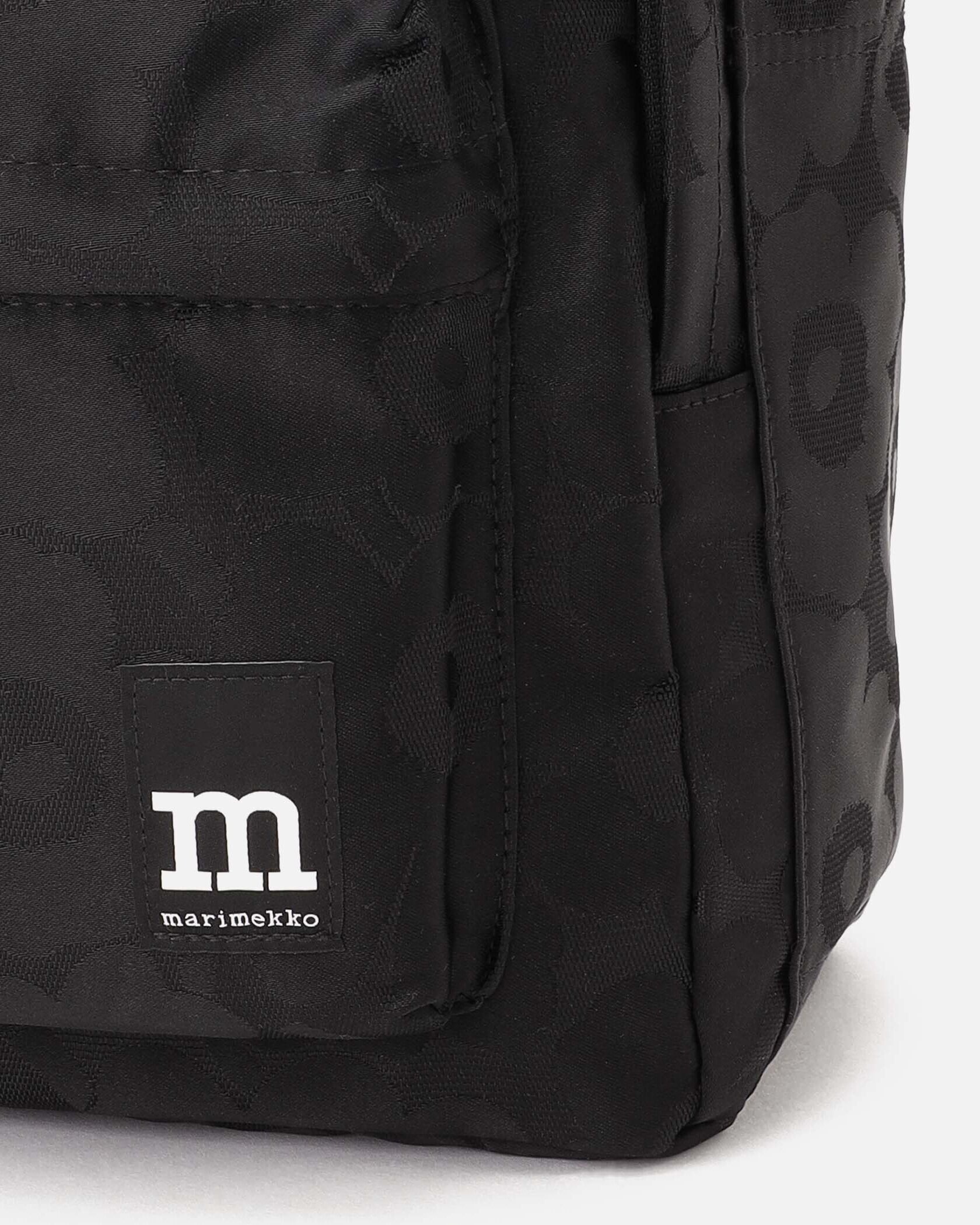 Marimekkoを代表するUnikko柄のデザインパターン柄がさりげなく華やかなバックパック。大きなロゴ入りストラップと、ポケットのロゴタグがデザインアクセント。フロントと内側にはポケット付き、しっかりとマチがある充分な収納力で、使い勝手も抜群。モノトーンでスタイリングしやすく、デイリーに活躍します。