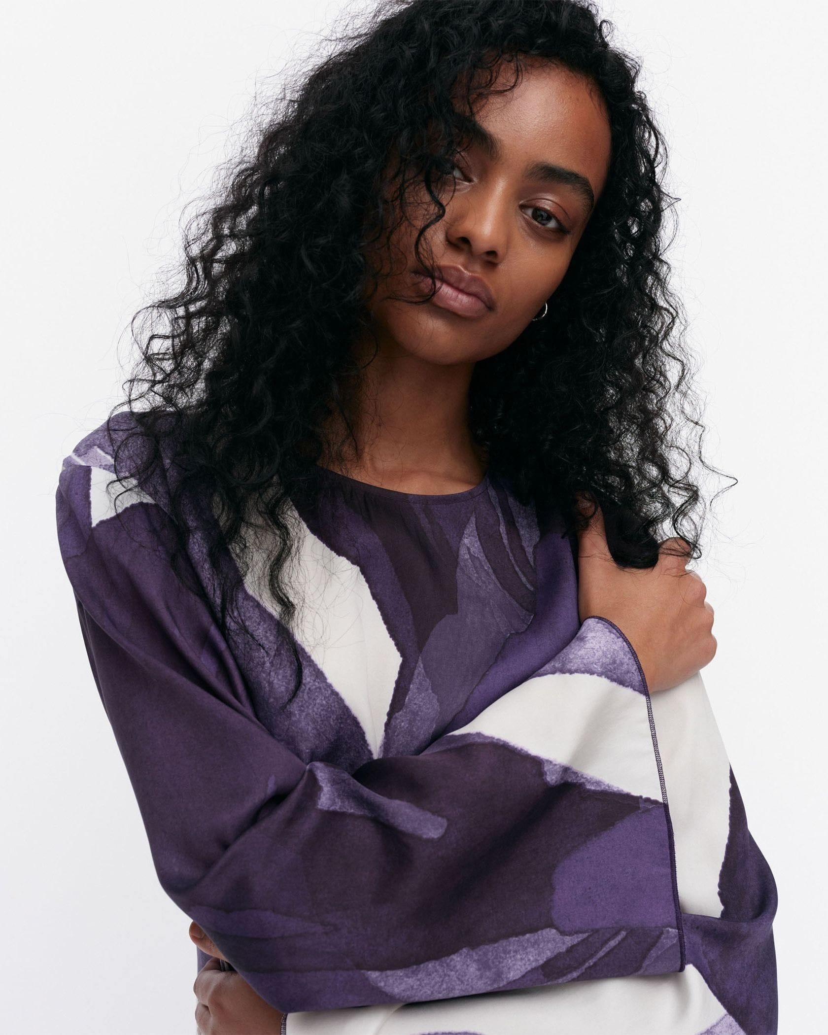 水彩風プリントの繊細なグラデーションを楽しめるワンピース。すとんと落ちるリラックスしたシルエットで、より今らしい表情に。シンプルな着こなしこそエッジを効かせたい日におすすめの一枚です。