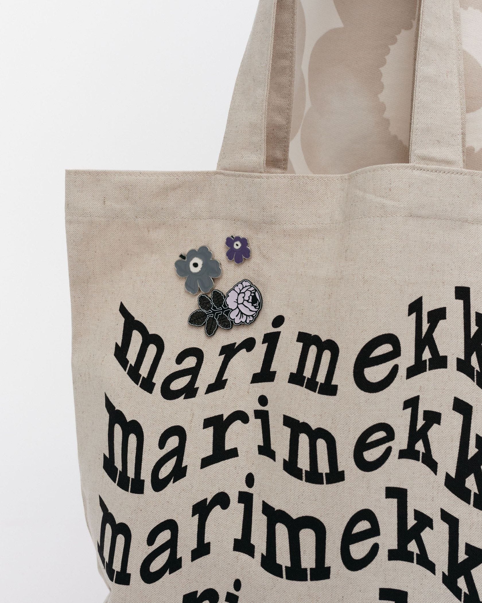 Marimekkoらしい花をモチーフにした3点セットのピンバッチ。キャンバスバッグや帽子、ウェアの衿や胸元などに簡単に装着でき、コーディネートのワンポイントとして取り入れられます。それぞれ単品でもお使いいただけ、アレンジの幅の広さも魅力です。ちょっとしたイメージチェンジにも重宝します。