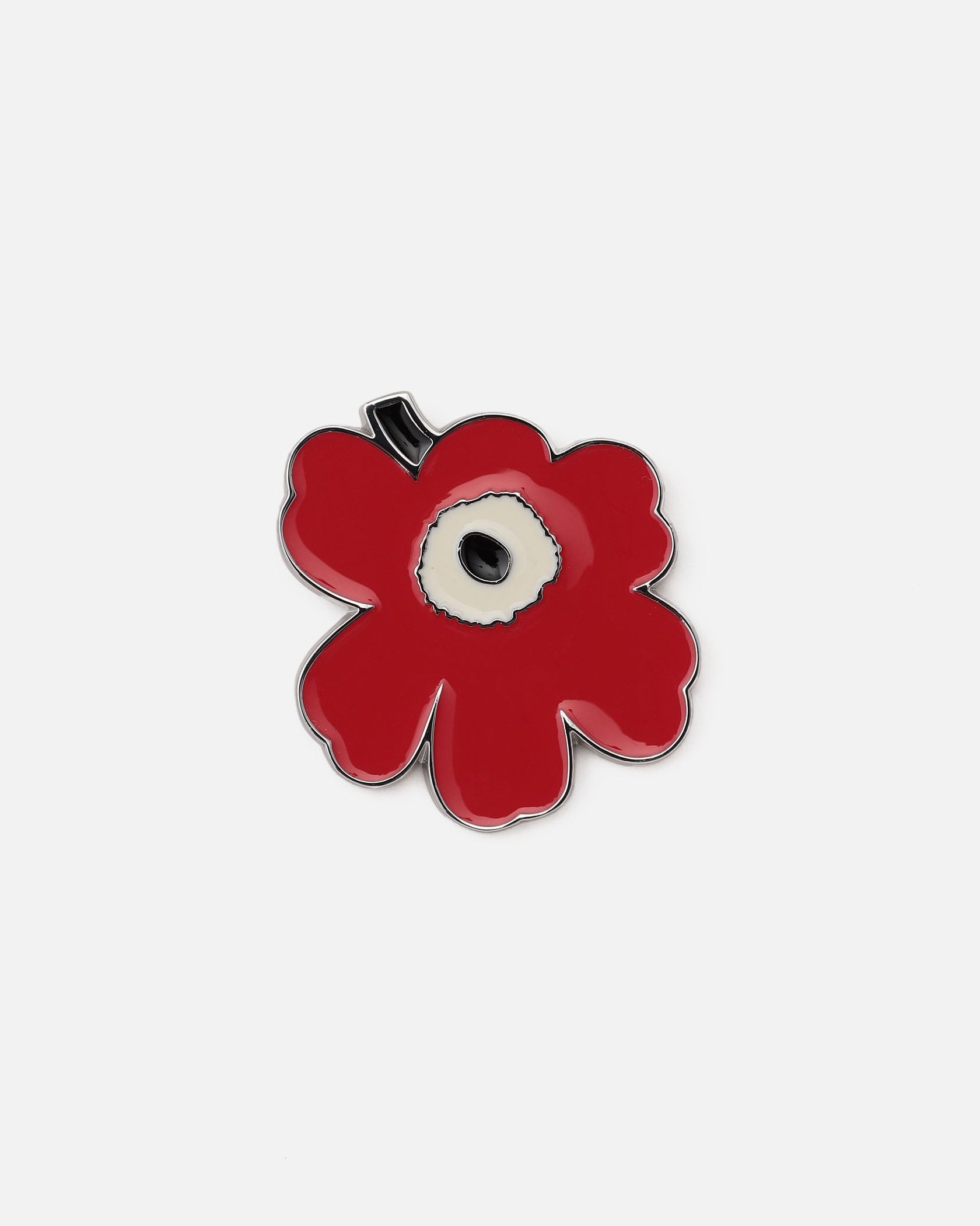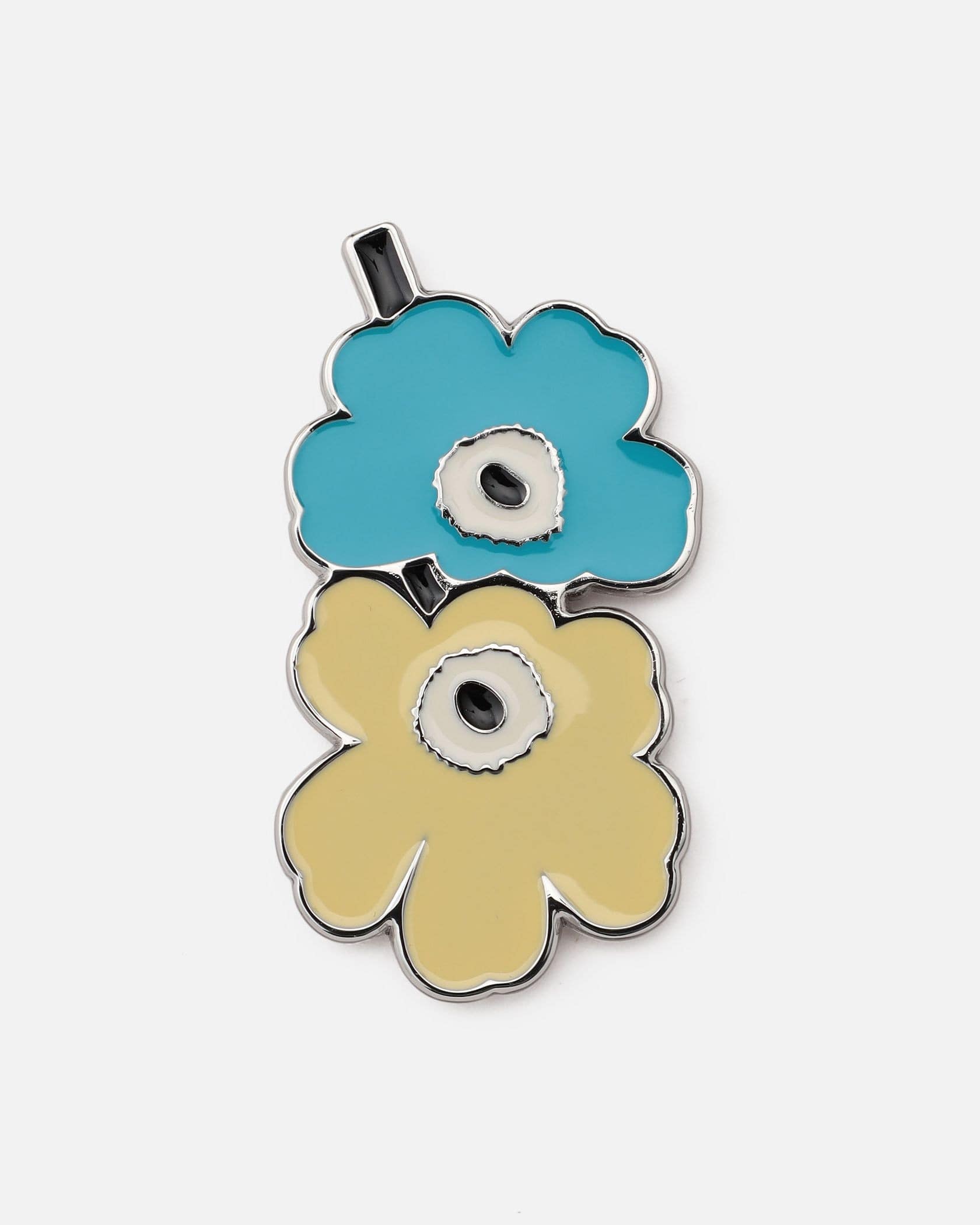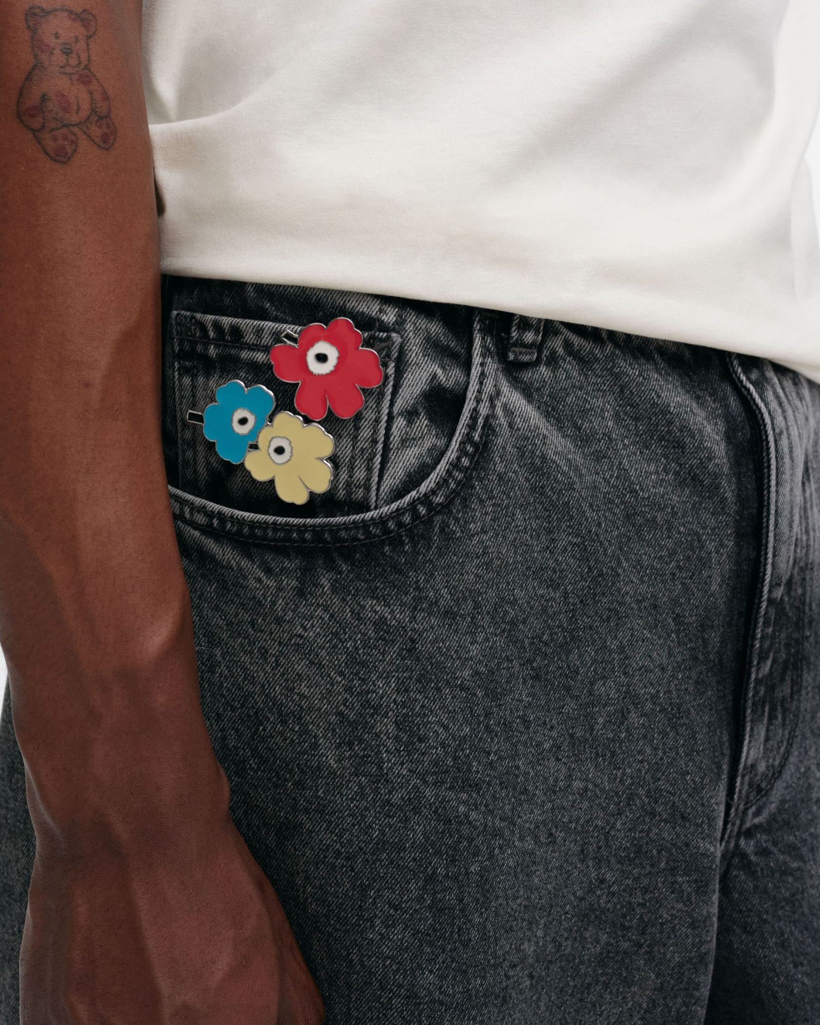 花モチーフのUnikko型のピンバッチ。手描き風のラフ感がナチュラルムードを引き上げます。デザインやカラーが異なる3点のセットで、組み合わせによりアレンジが広がるのも魅力です。トートバッグやキャップ、ウェアの胸元などに装着するのもおすすめの使い方。シンプルなデニムパンツのポケットを飾っても素敵です。