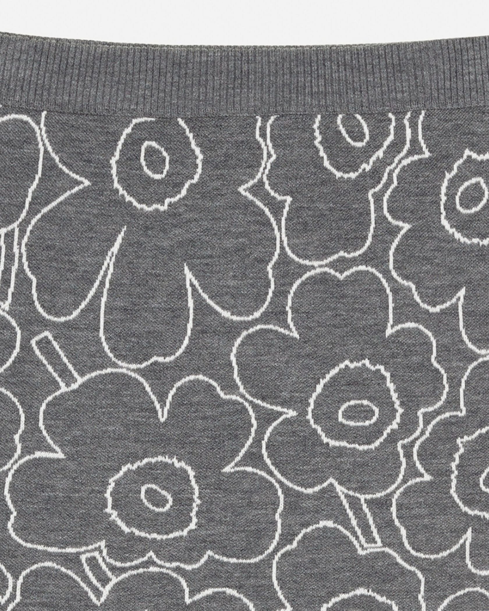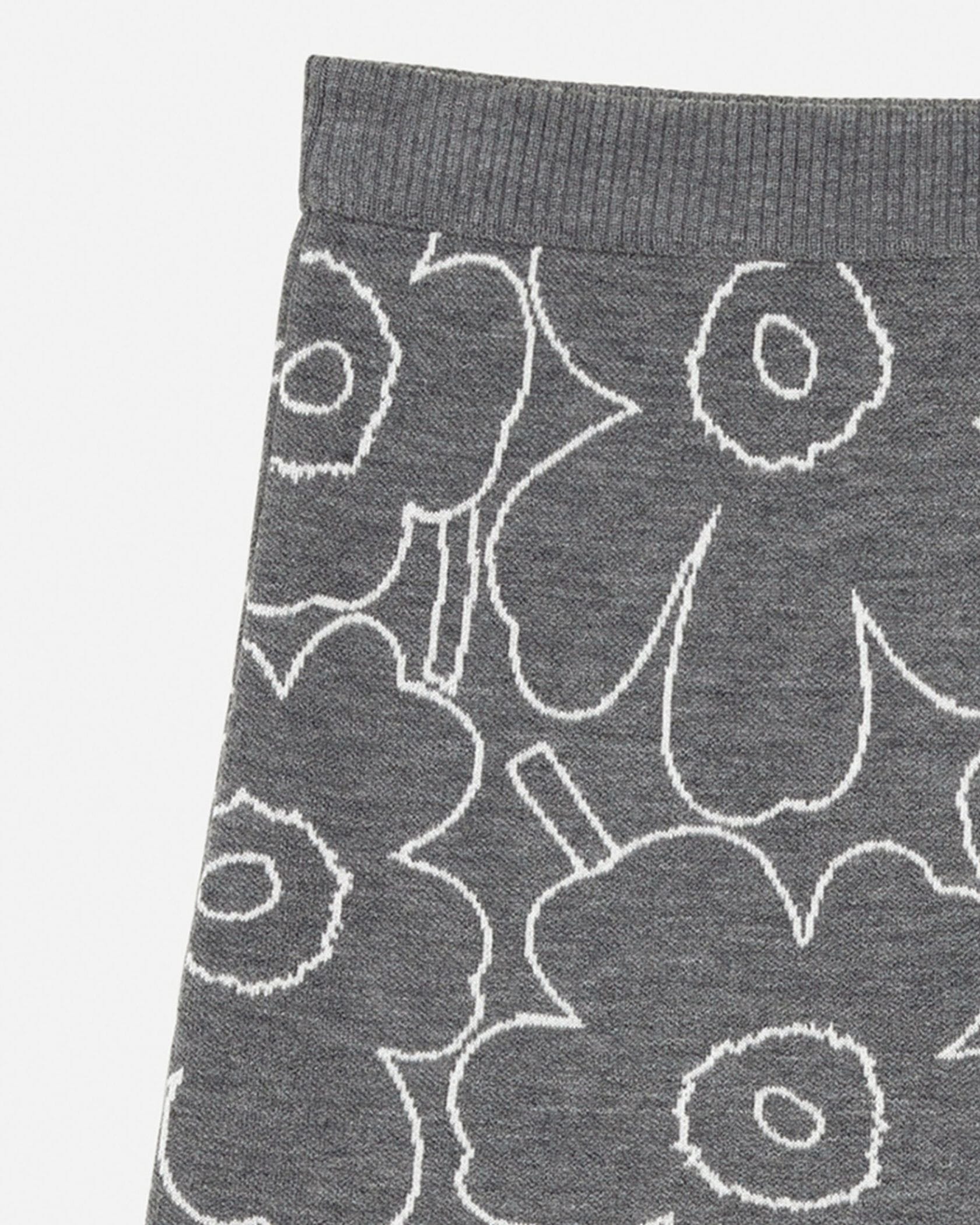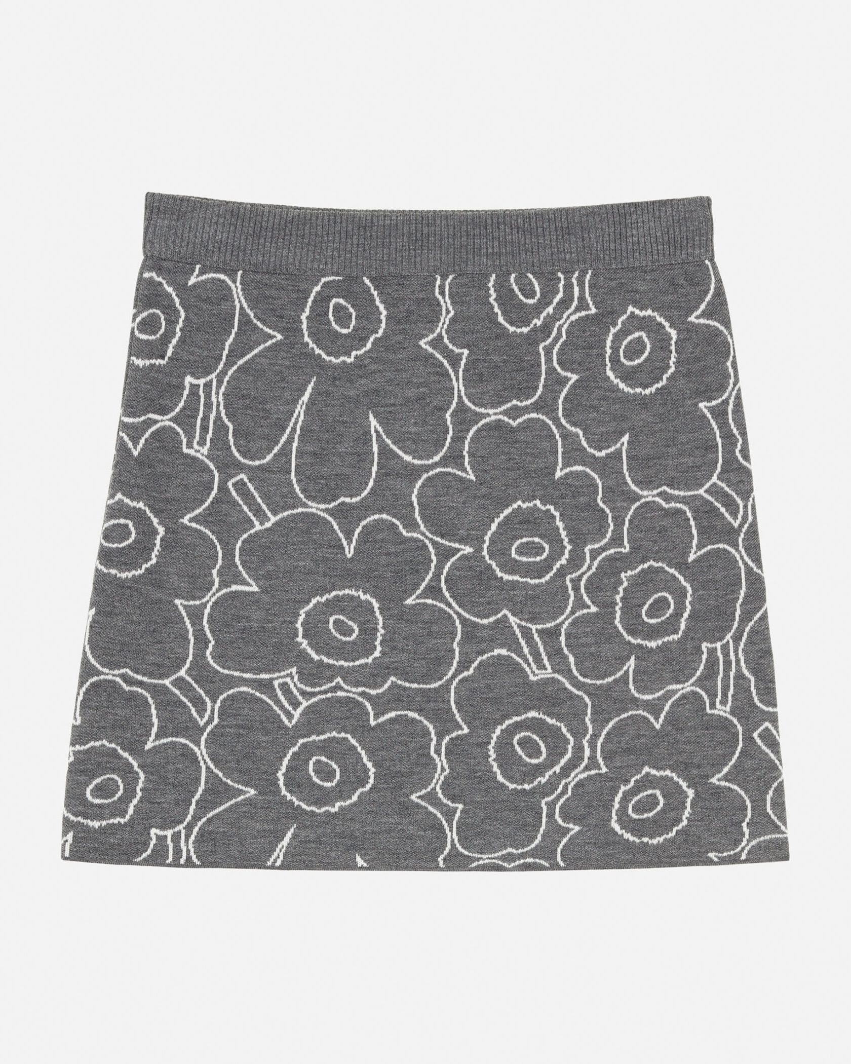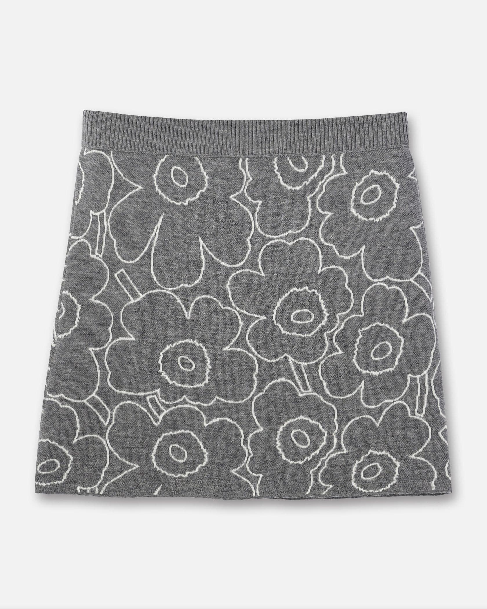 Marimekkoを代表するUnikko柄をラインで表現したスタイリッシュなデザインのミニスカート。あたたかな毛混合ニット素材で秋冬らしいスタイリングにぴったり。すっきりと着こなせるスリムストレートなシルエット。リブ編みのウエストがアクセント。お出かけコーディネートが完成する一枚です。