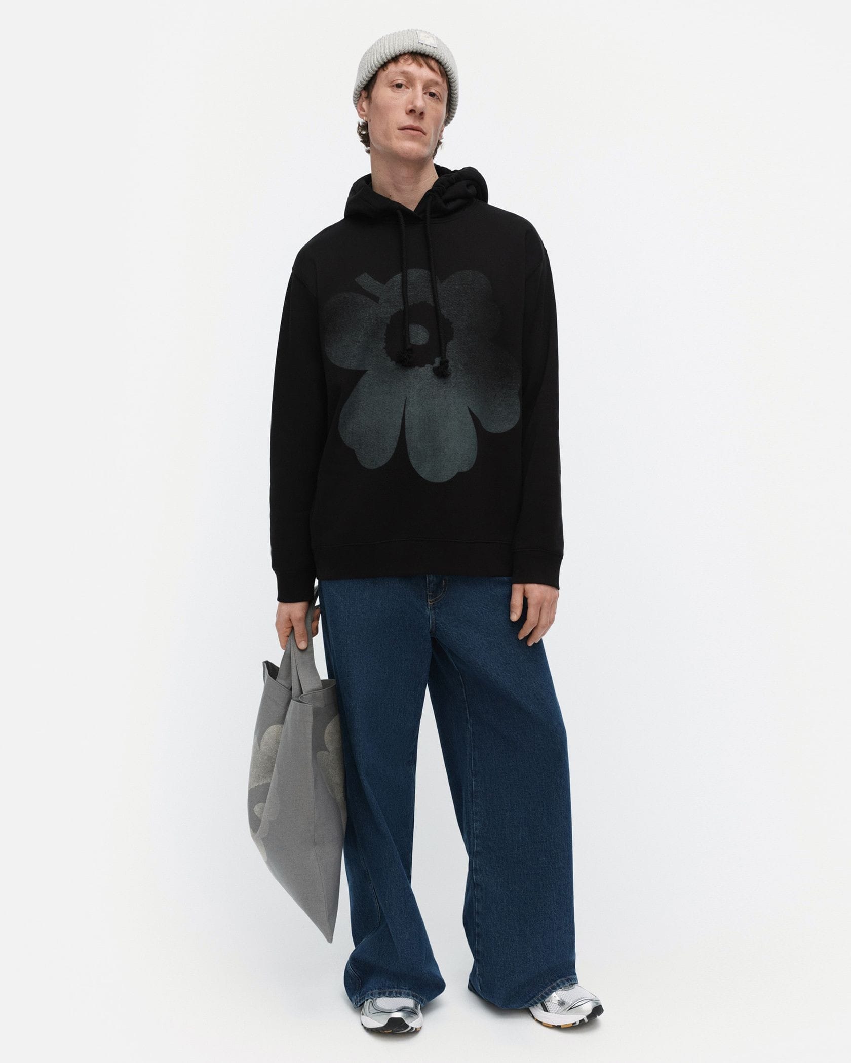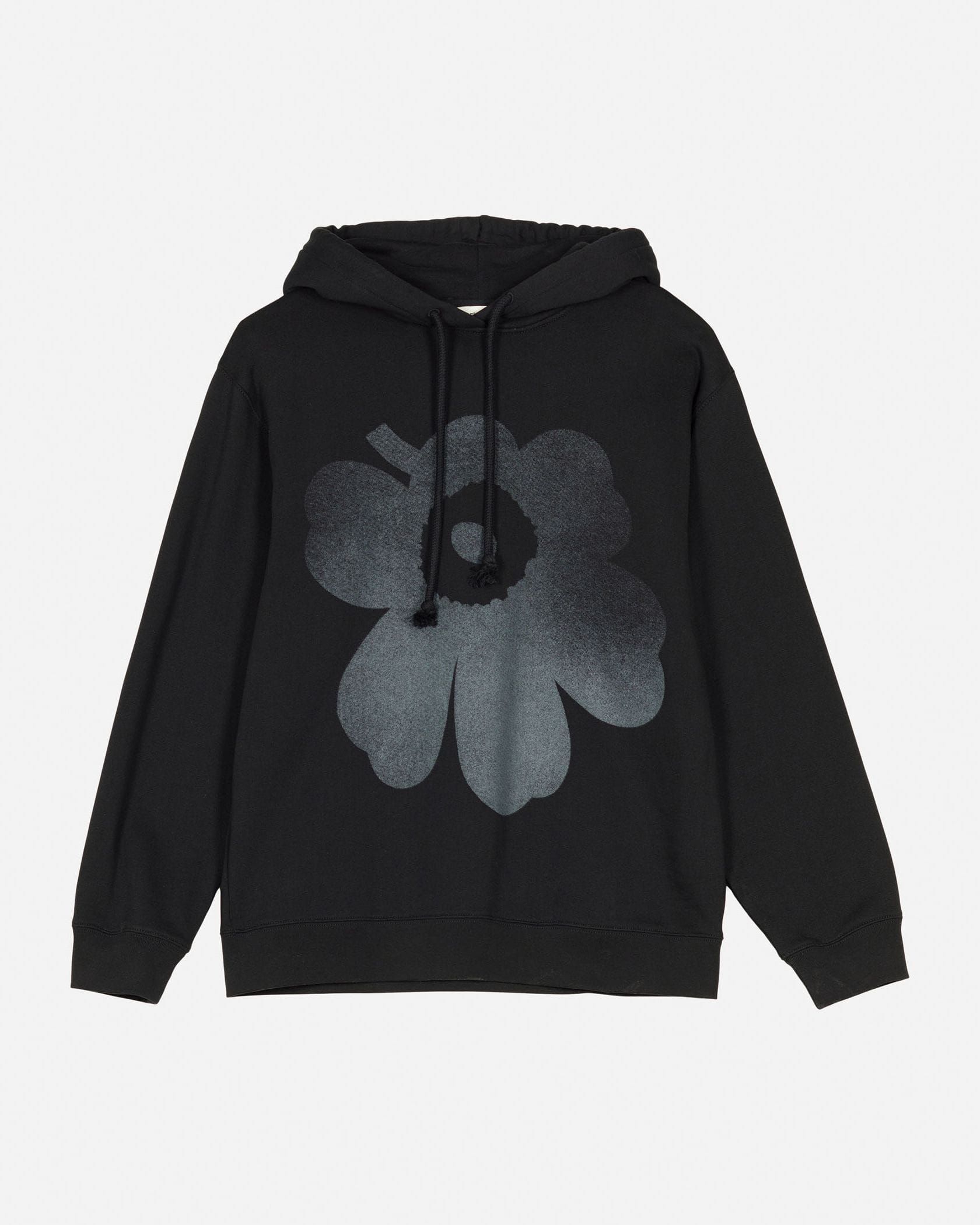 Unikko柄をビッグスケールで描いたフーディー。少しぼかしを加えたプリントがニュアンスのある表情を生み出します。リラックスムードを誘うオフボディのオーバーサイズシルエットはユニセックスで着用可能。カジュアルな装いはもちろん、ドレスアイテムと組み合わせたテイストミックスにも対応します。裏起毛素材を使用しており、柔らかく暖かな着心地です。