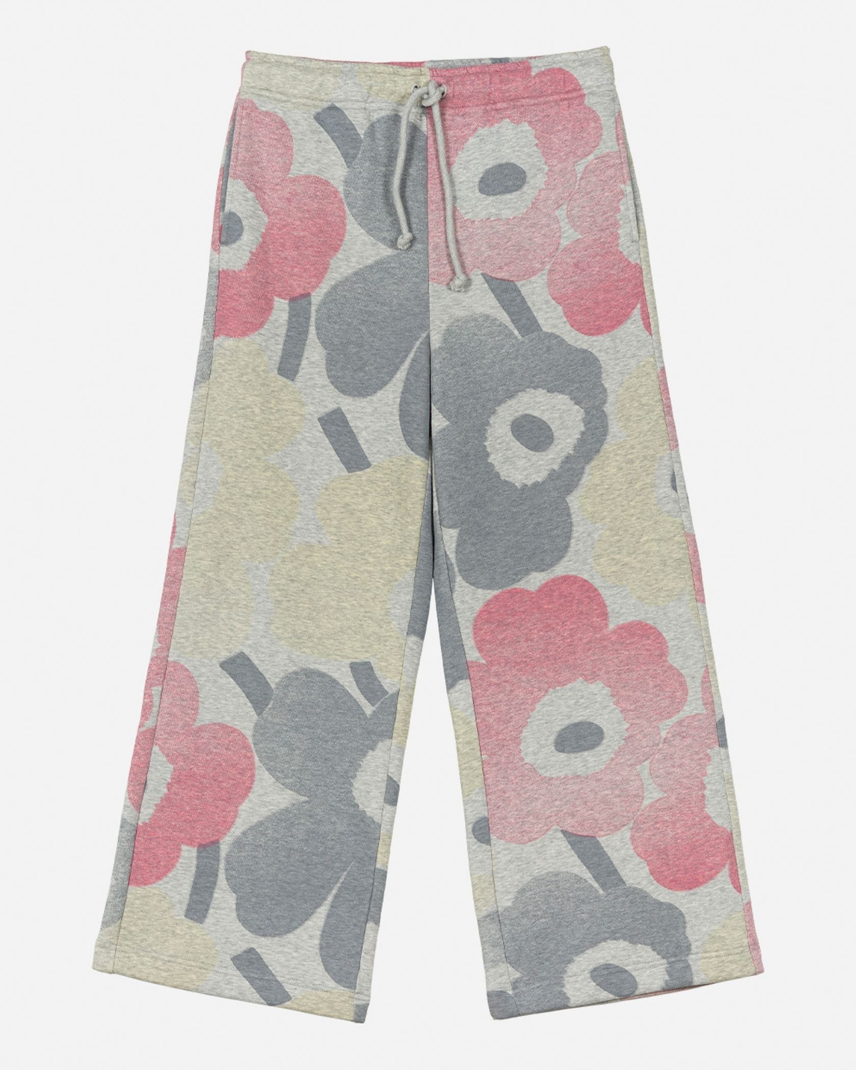 全面にUnikko柄をプリントしたスウェットパンツ。裾までまっすぐ続くルーズストレートシルエットはレッグラインが響きにくく、体型も選びません。ウエストはドローストリングでお好みのフィット感の調節が可能。柔らかな裏起毛仕上げで、着用した瞬間もヒヤッとせず、暖かなはき心地が持続します。
