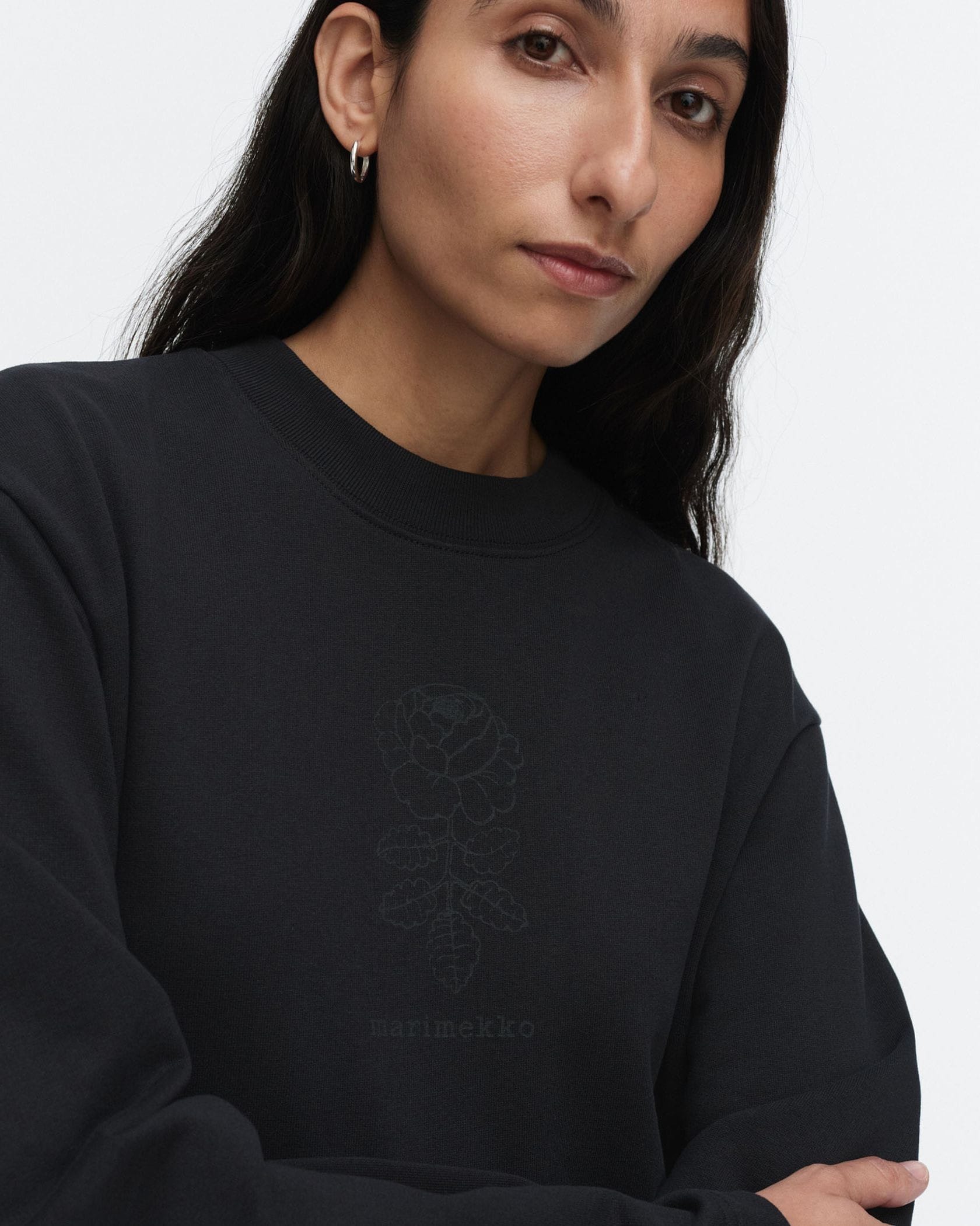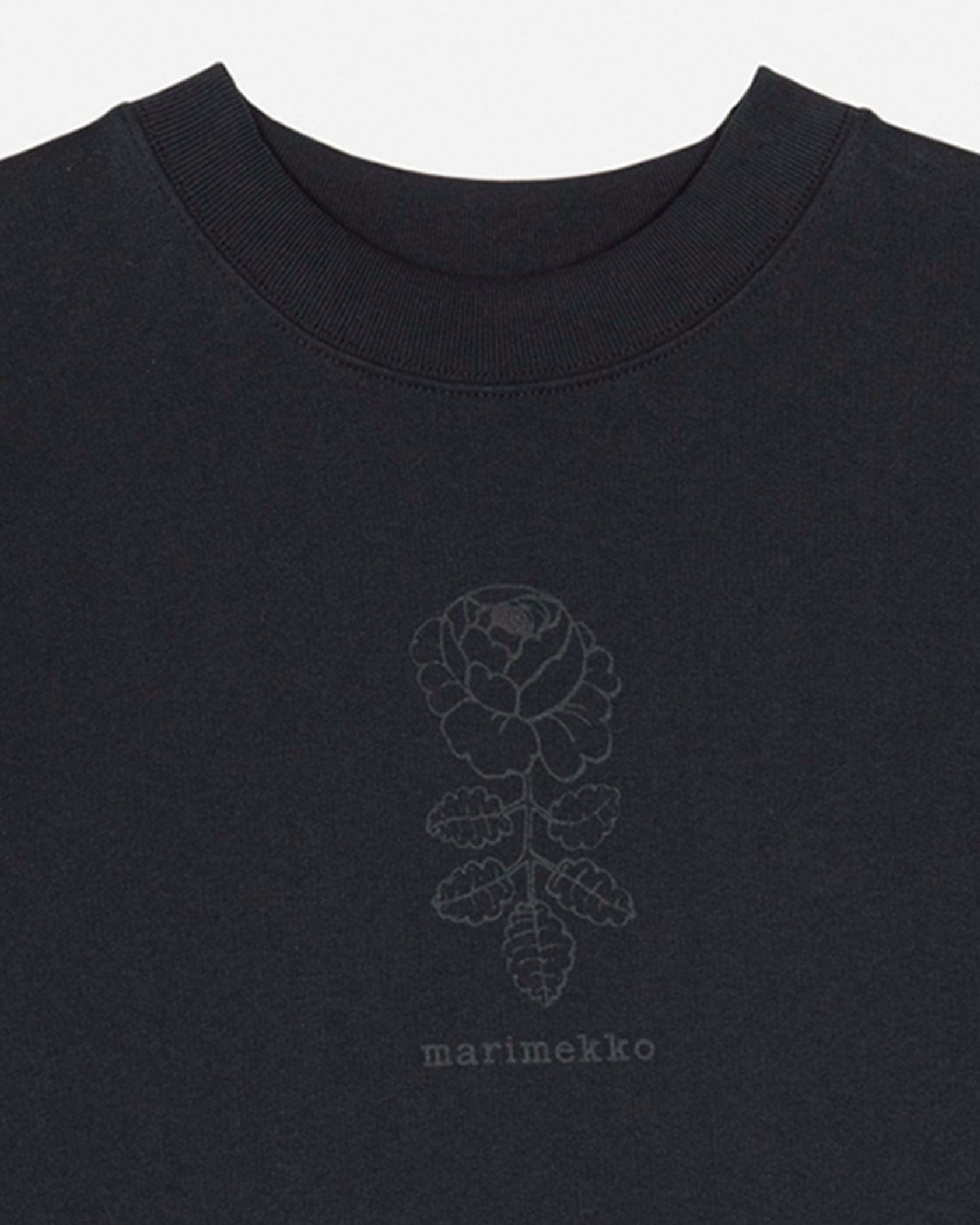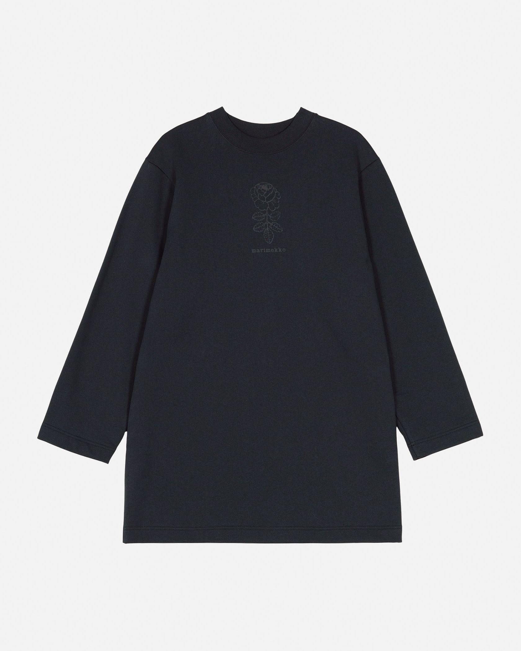 ほんのりフェミニンなムードで着こなせるカットソーチュニック。胸元の花とロゴが、さりげないアクセントに。どんなボトムにも合わせやすく、幅広いコーディネートを楽しめます。