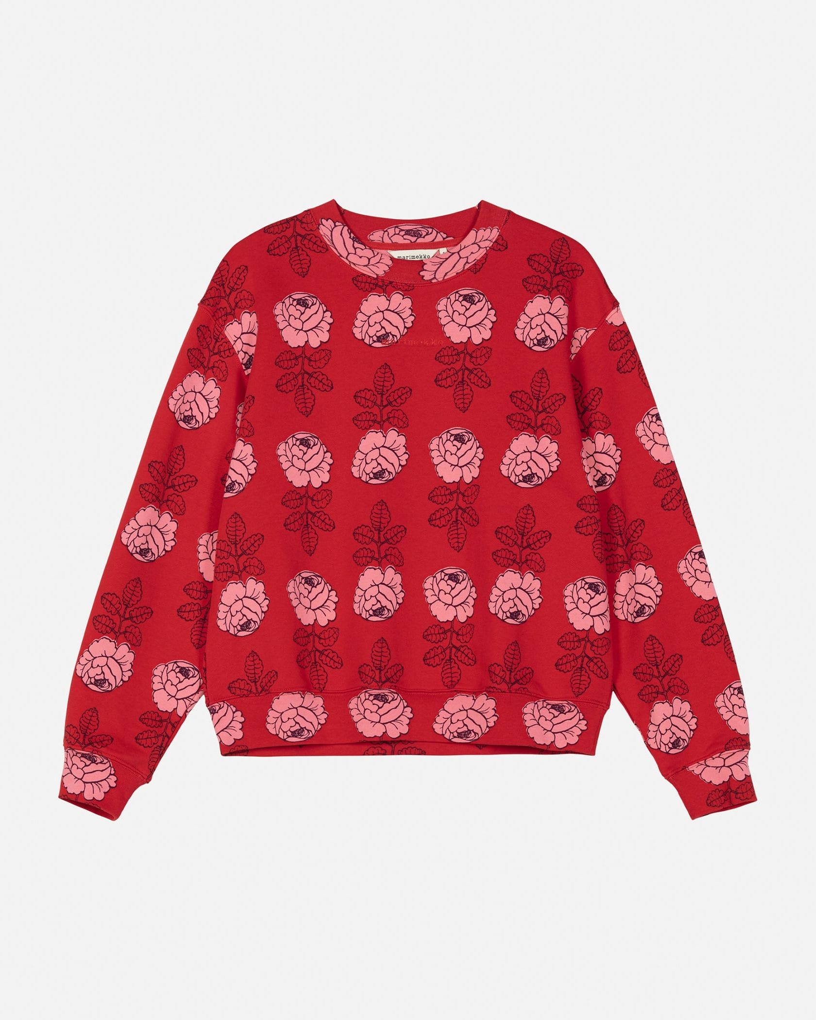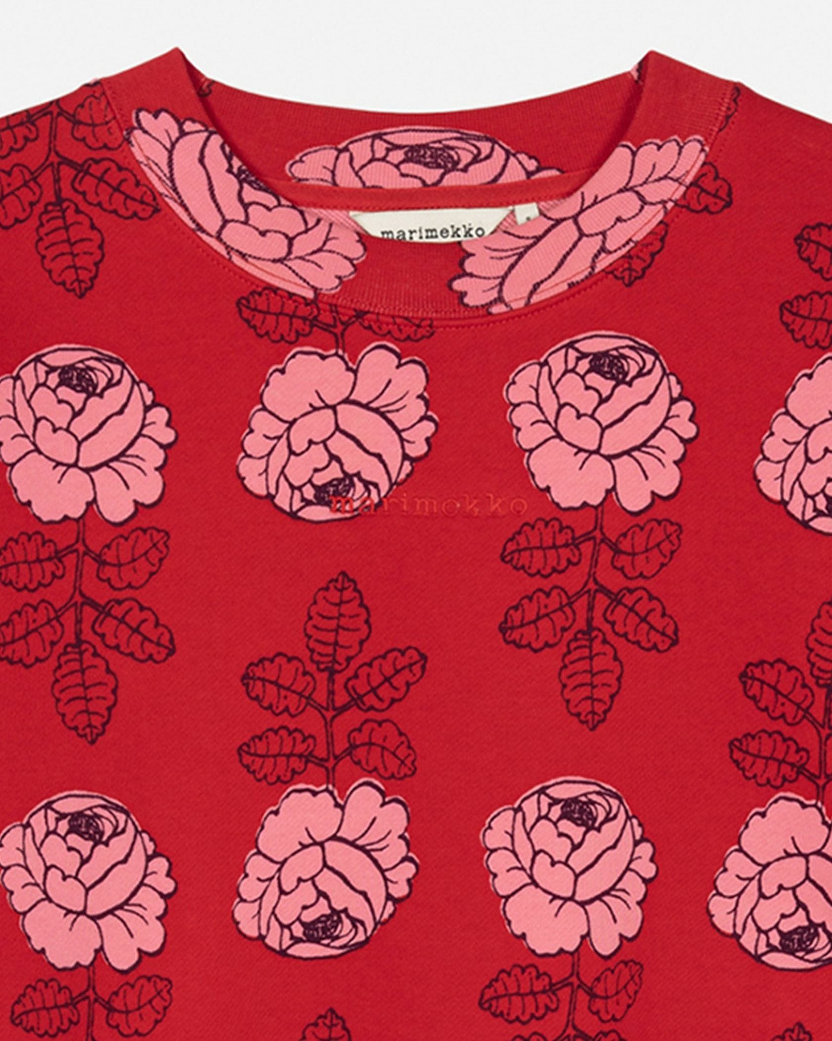 バラの総柄がユニークで愛らしいスウェットトップス。ベーシックなシルエットは、ボトムを選ばずにスタイリングできます。気負わずさらりと着こなせてモードにきまる一枚です。