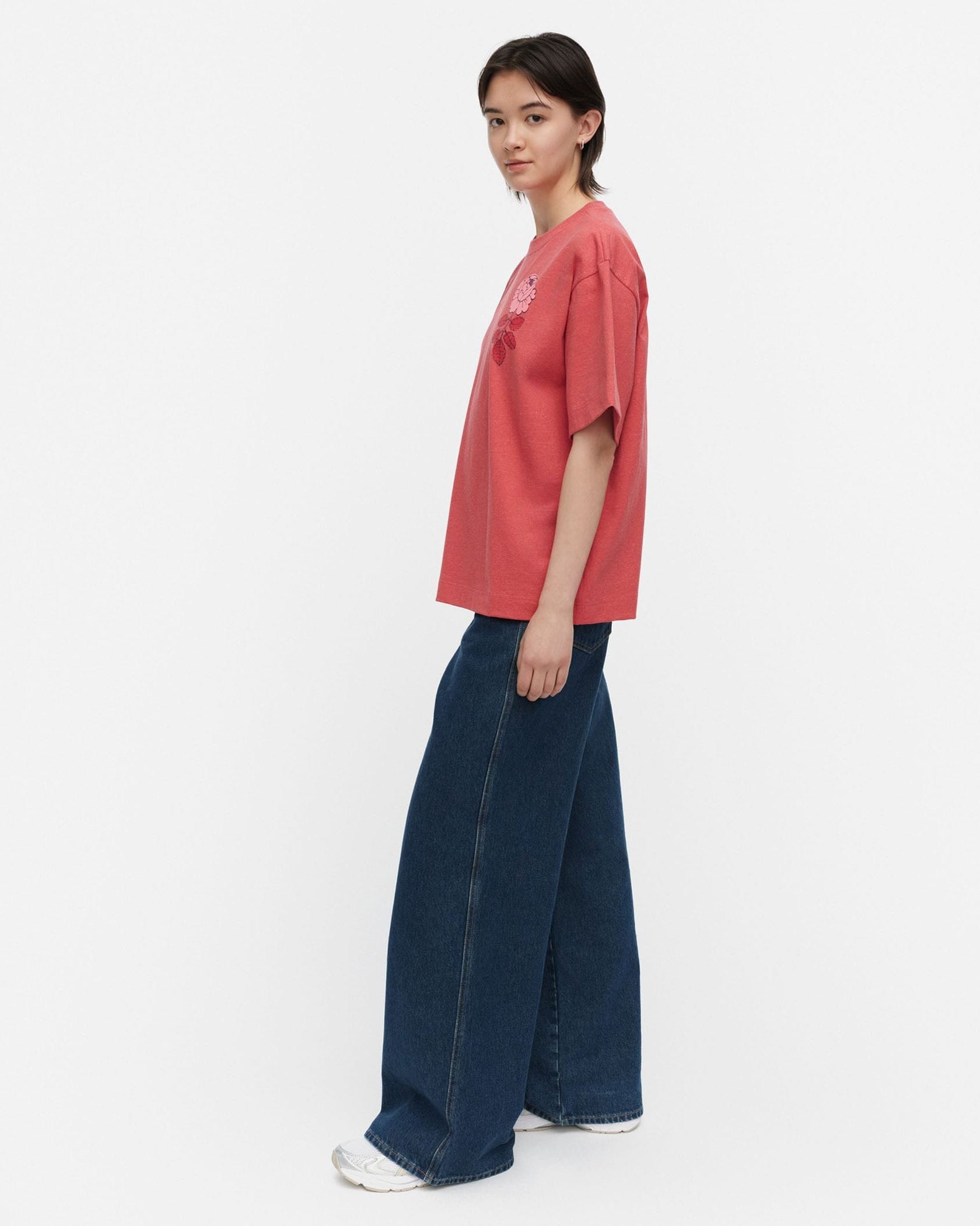 ワンポイントのバラ柄が着こなしを引き立たせるTシャツ。シンプルなようで存在感のある装いを楽しみたい日に重宝しそう。すっきりした着丈は、タックインしなくてもスマートに着こなせます。