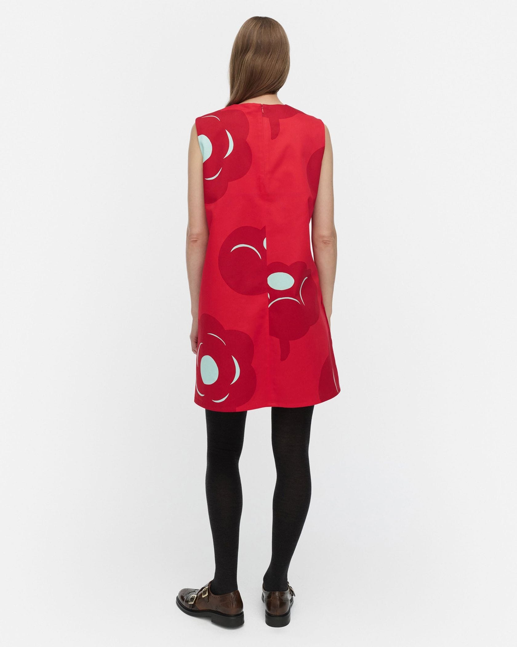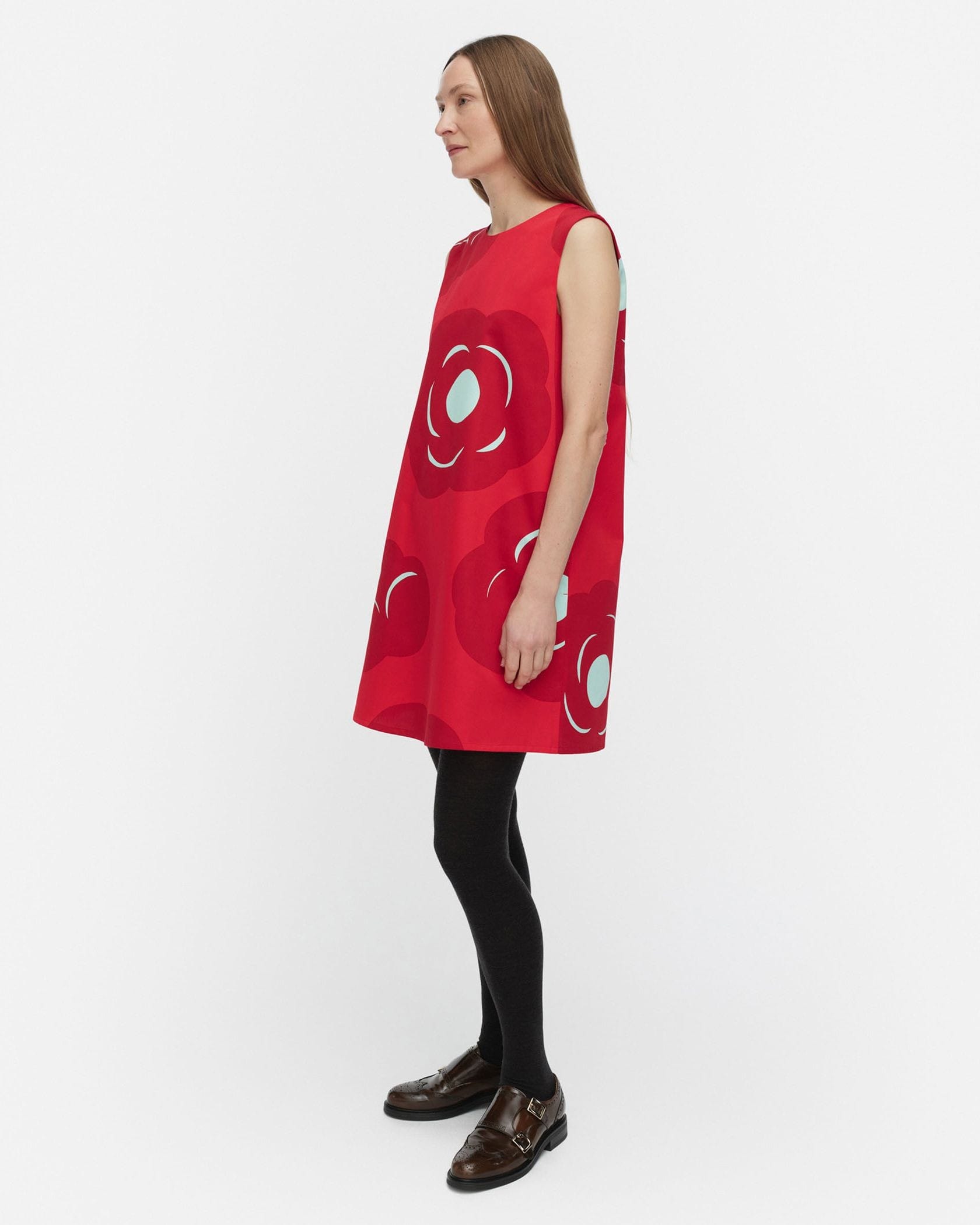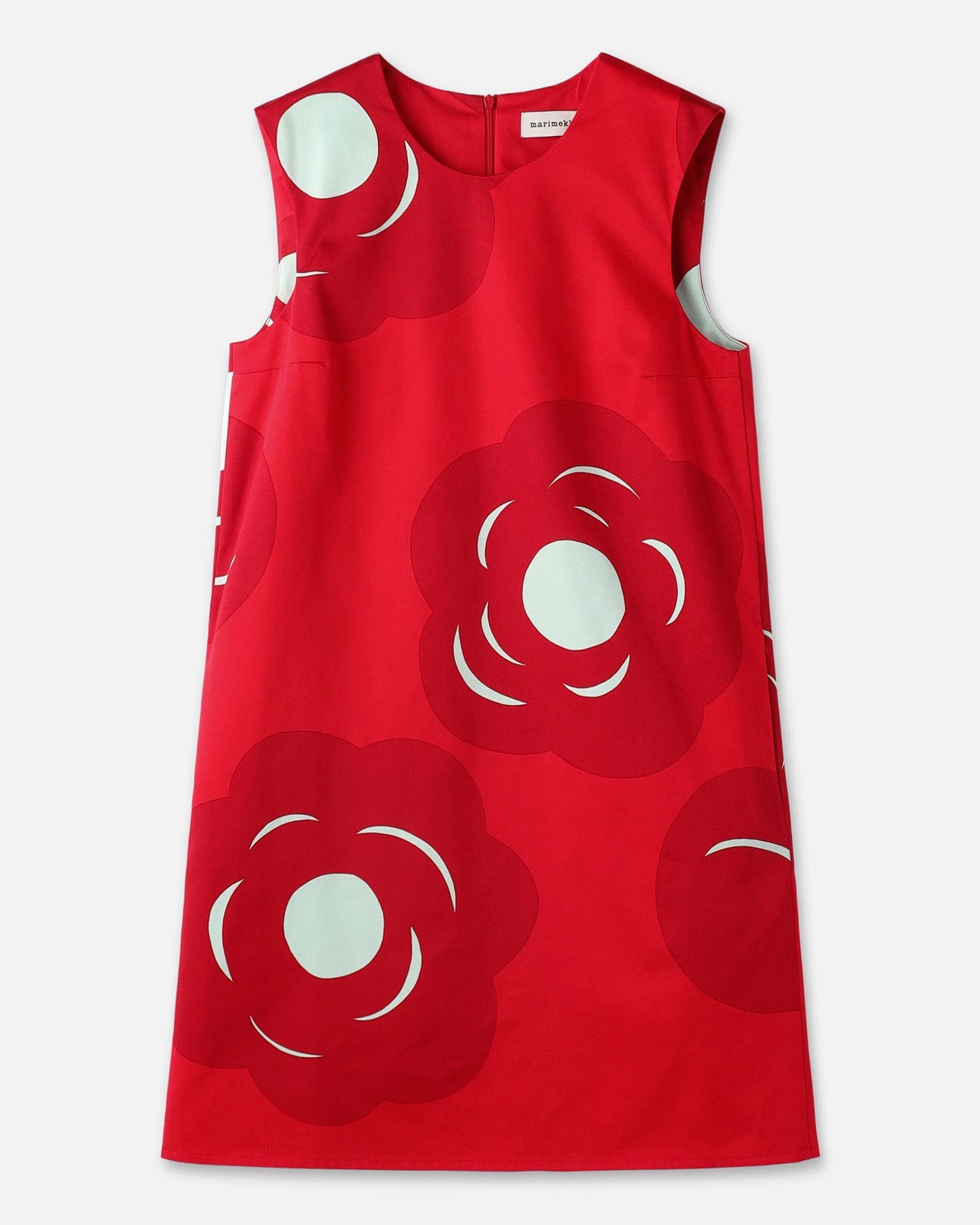 大ぶりの花柄にモード感のあるワンピース。甘くなりすぎずに大人っぽく着こなせるのがうれしい。さらりとしたコットンの肌ざわりも心地良さのポイントです。