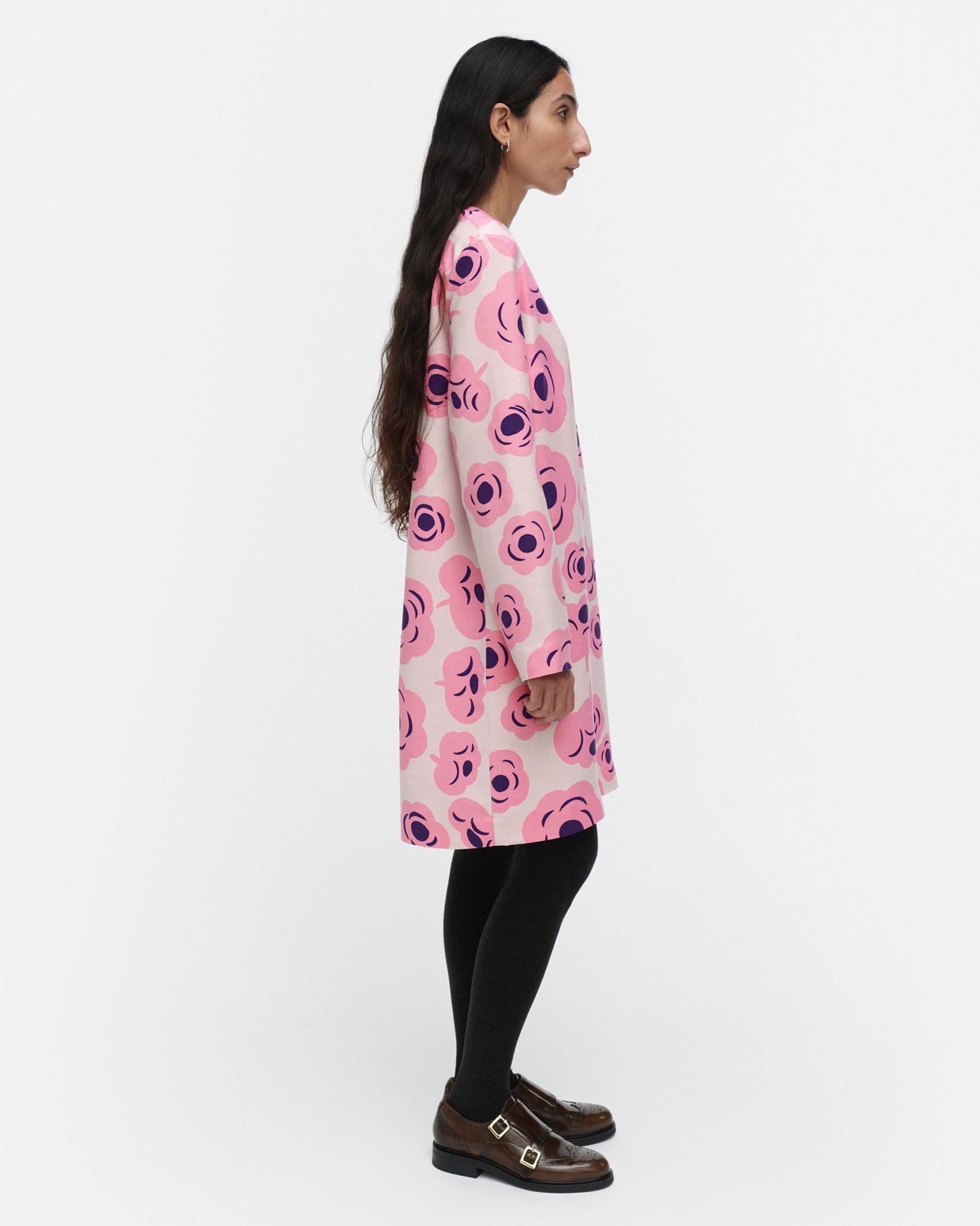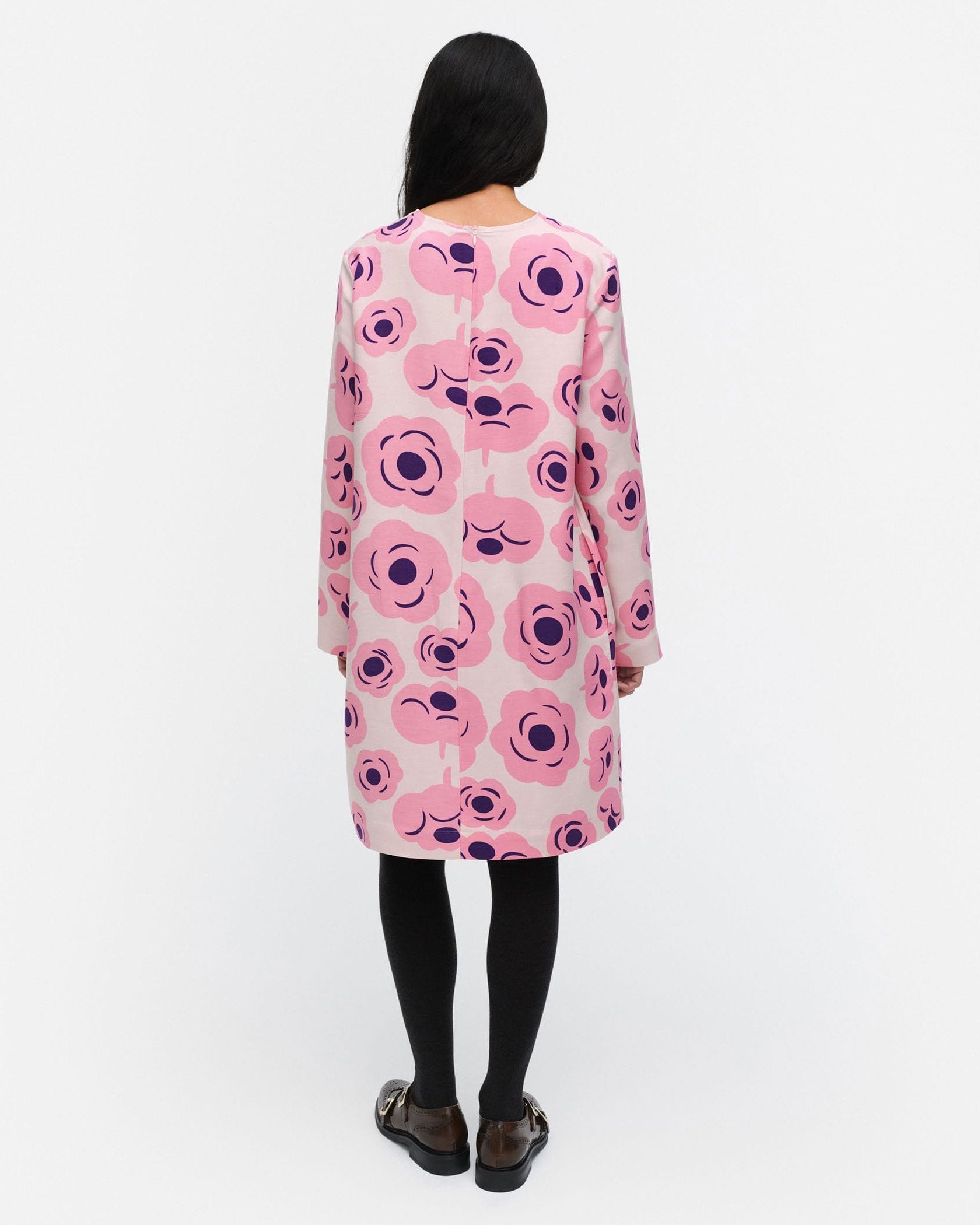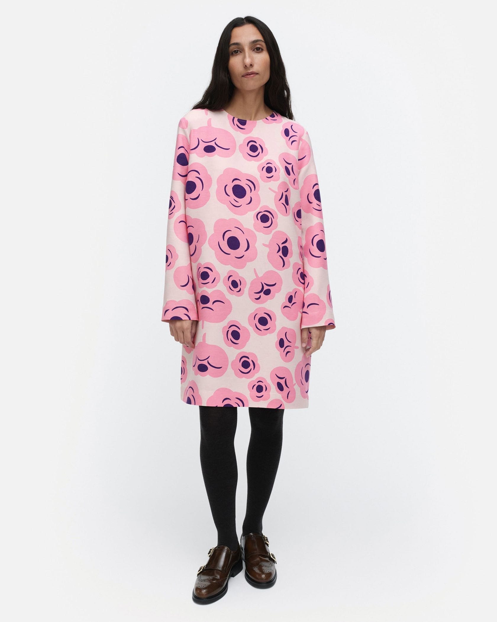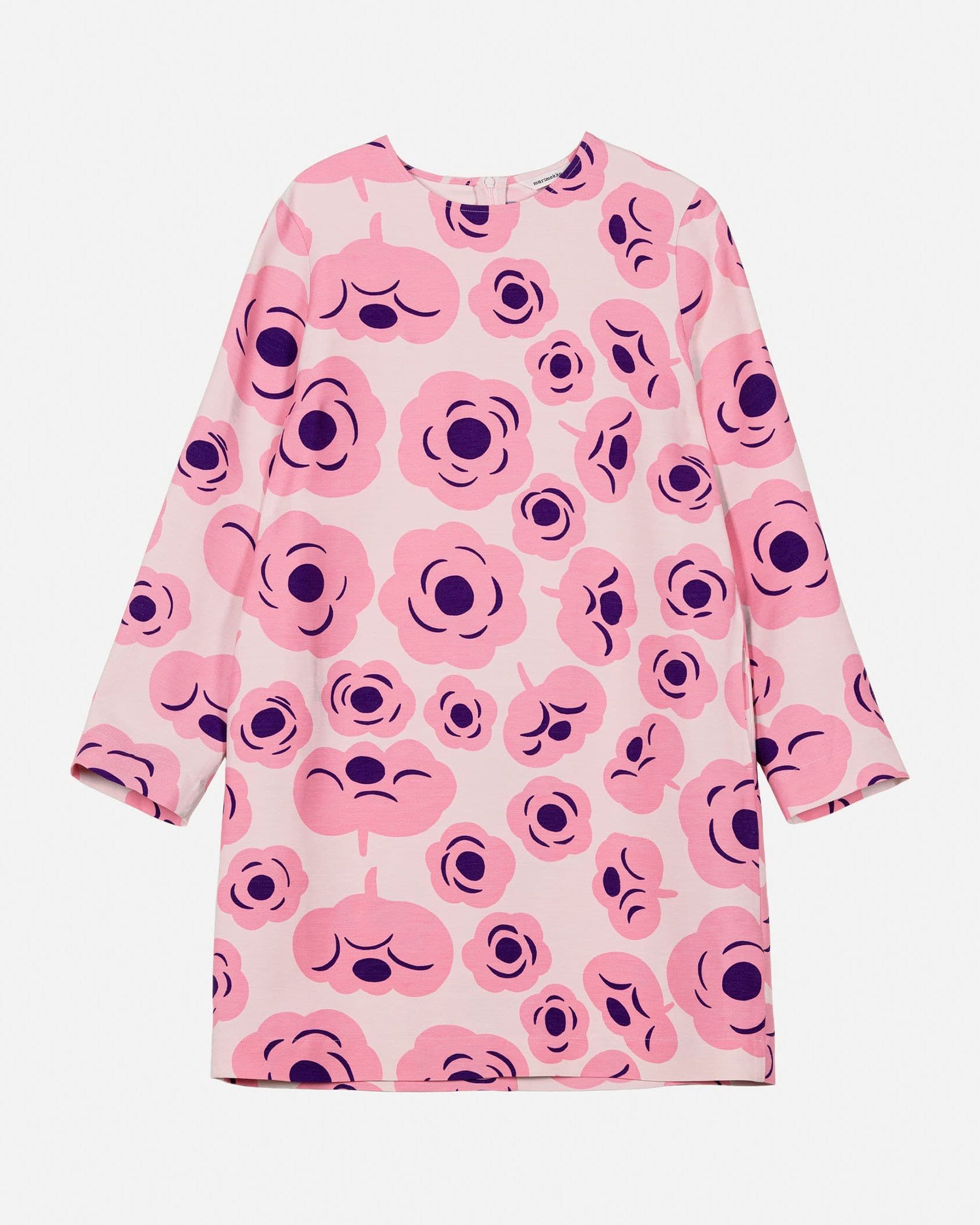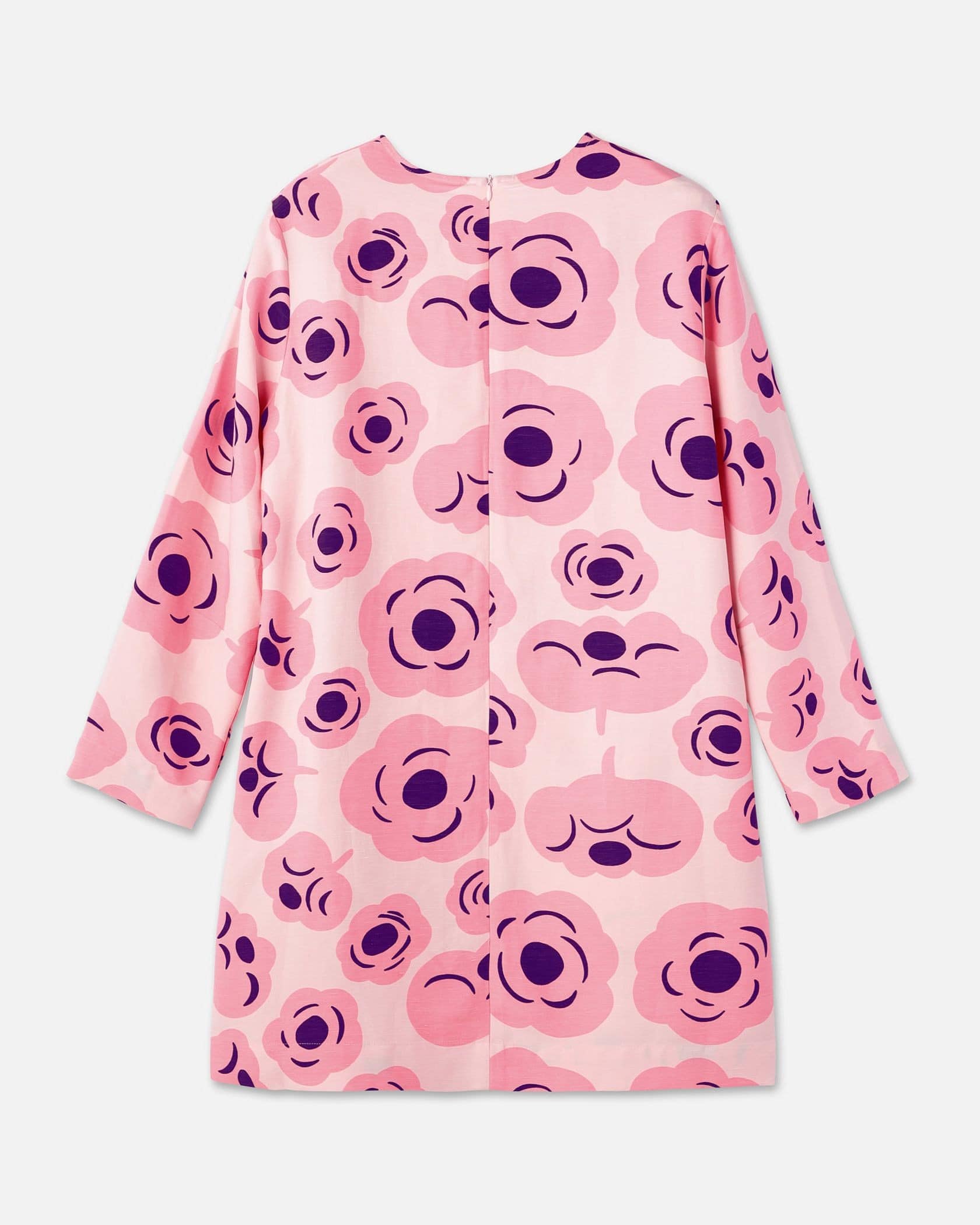 身体に付かず離れずの、程よい軽やかさを持つ素材で仕立てたワンピース。ポップながらも普遍的な美を持つフラワーモチーフが、着こなしを華やかに盛り立てます。シンプルなAラインシルエットは、飽きが来ず、長く愛用できるシルエット。パンツやレギンスなどを合わせてもお楽しみいただけます。