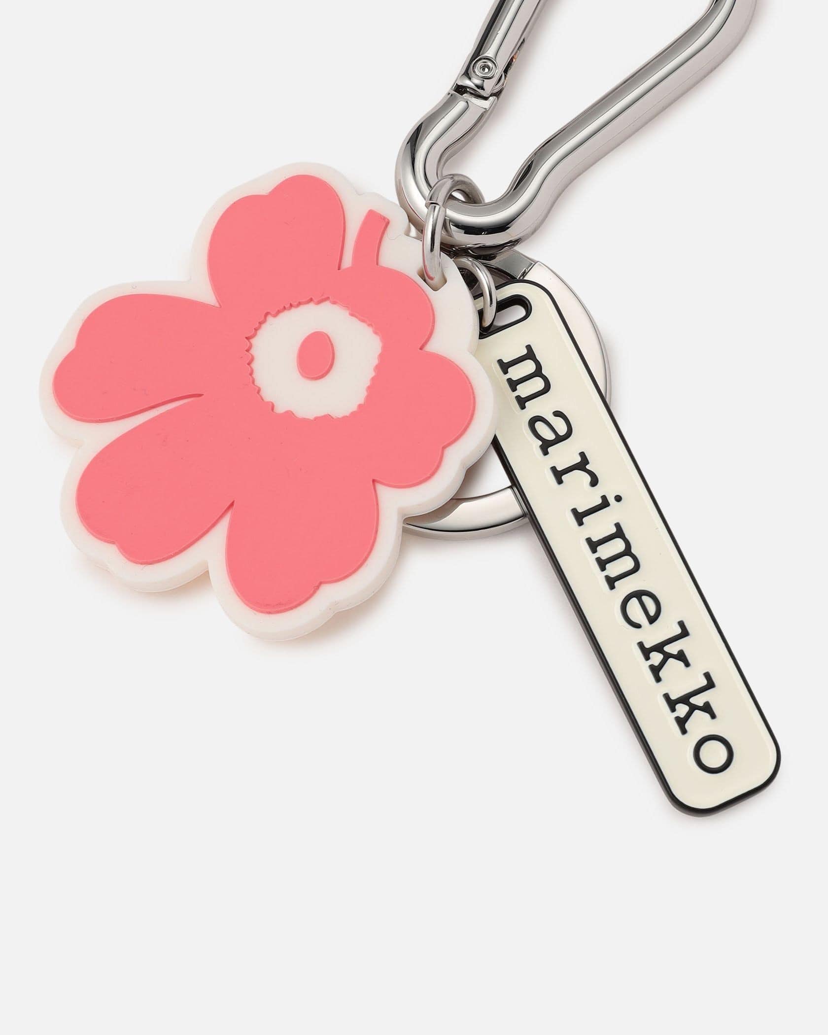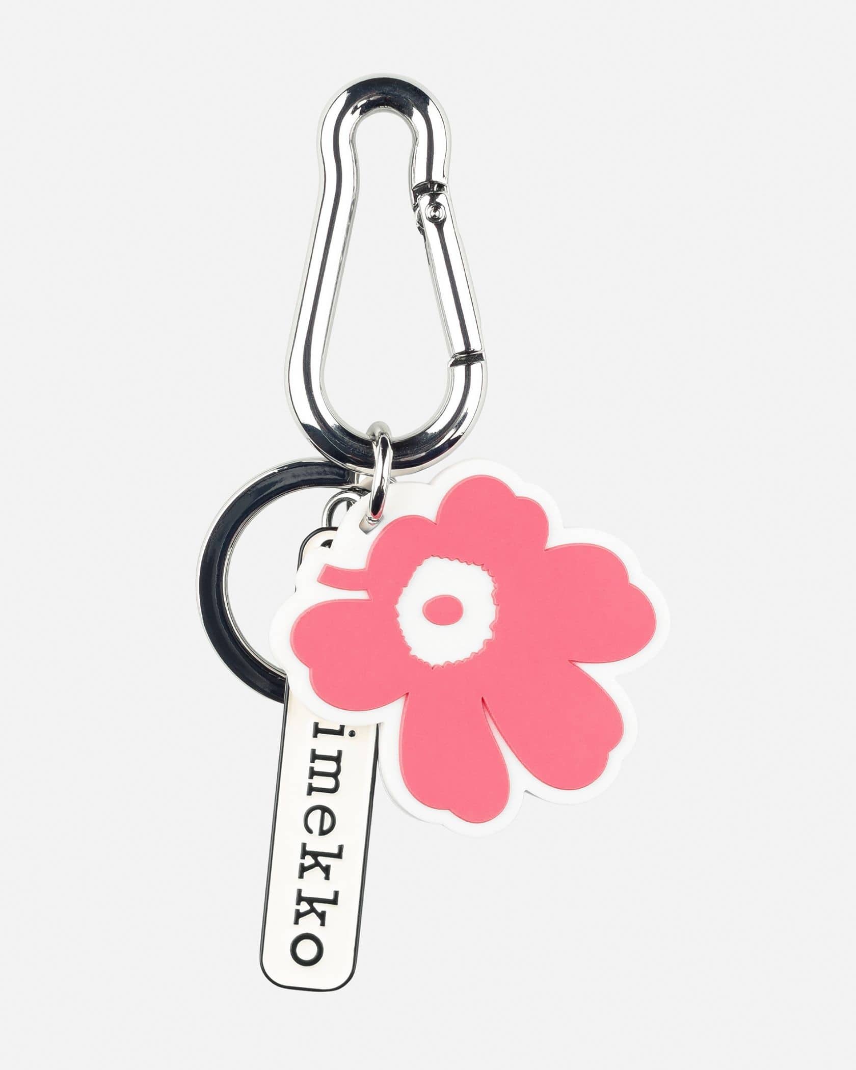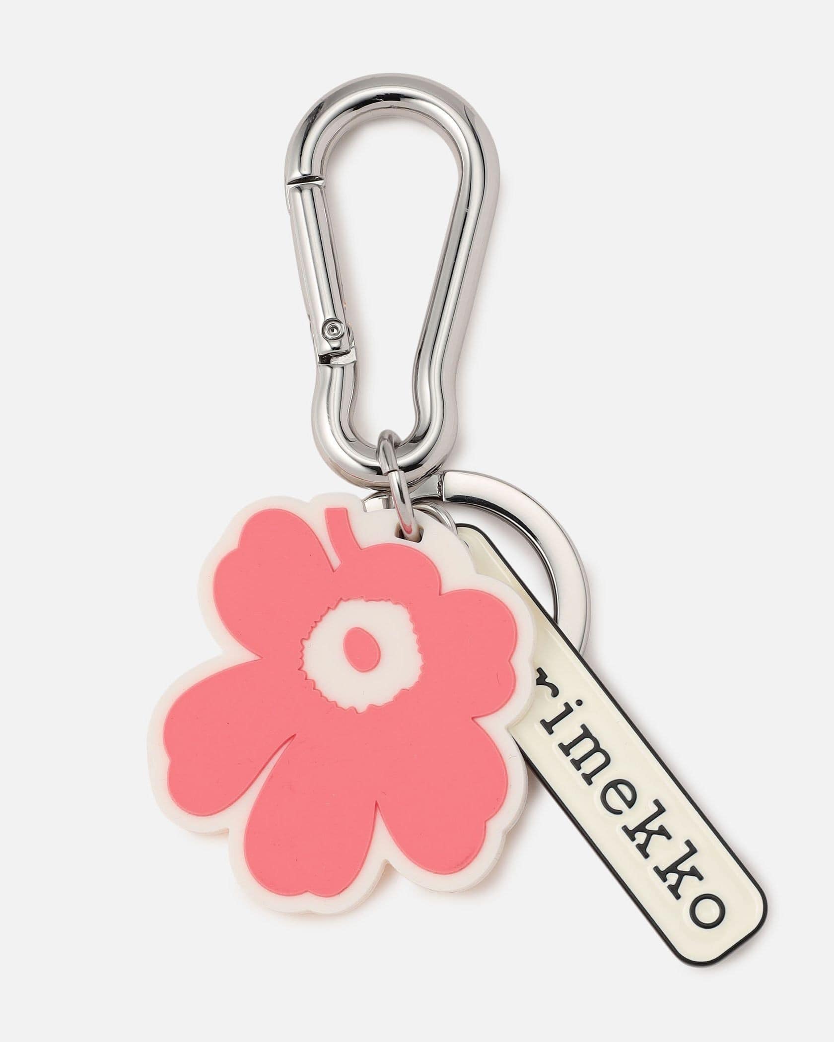 Unikkoのフラワーモチーフとmarimekkoのロゴチャームが揺れるキーチェーン。鍵を取り付けるだけでなく、アクセサリーとしてバッグやポーチ、ベルトループなどにもつけることができます。フックはカラビナ型で着脱も簡単。ご自分用としてはもちろん、プレゼントとしても喜ばれるアイテムです。