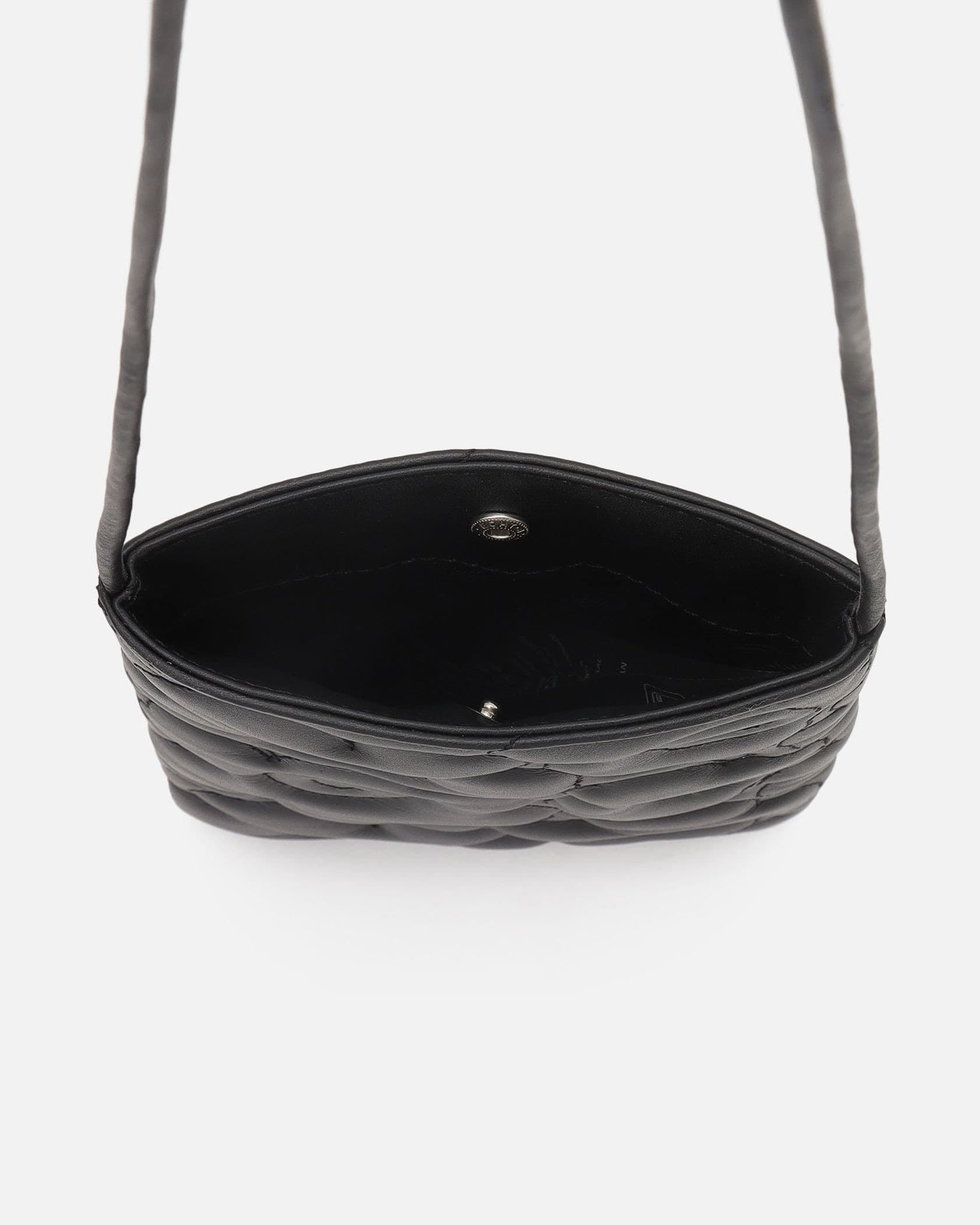 凹凸のあるUnikko柄のレザーがエレガントなショルダーバッグ。軽やかに斜め掛けすれば、瞬時にスタイリッシュな装いに。縦長のスクエア型は、スマートな表情を演出するのも魅力です。