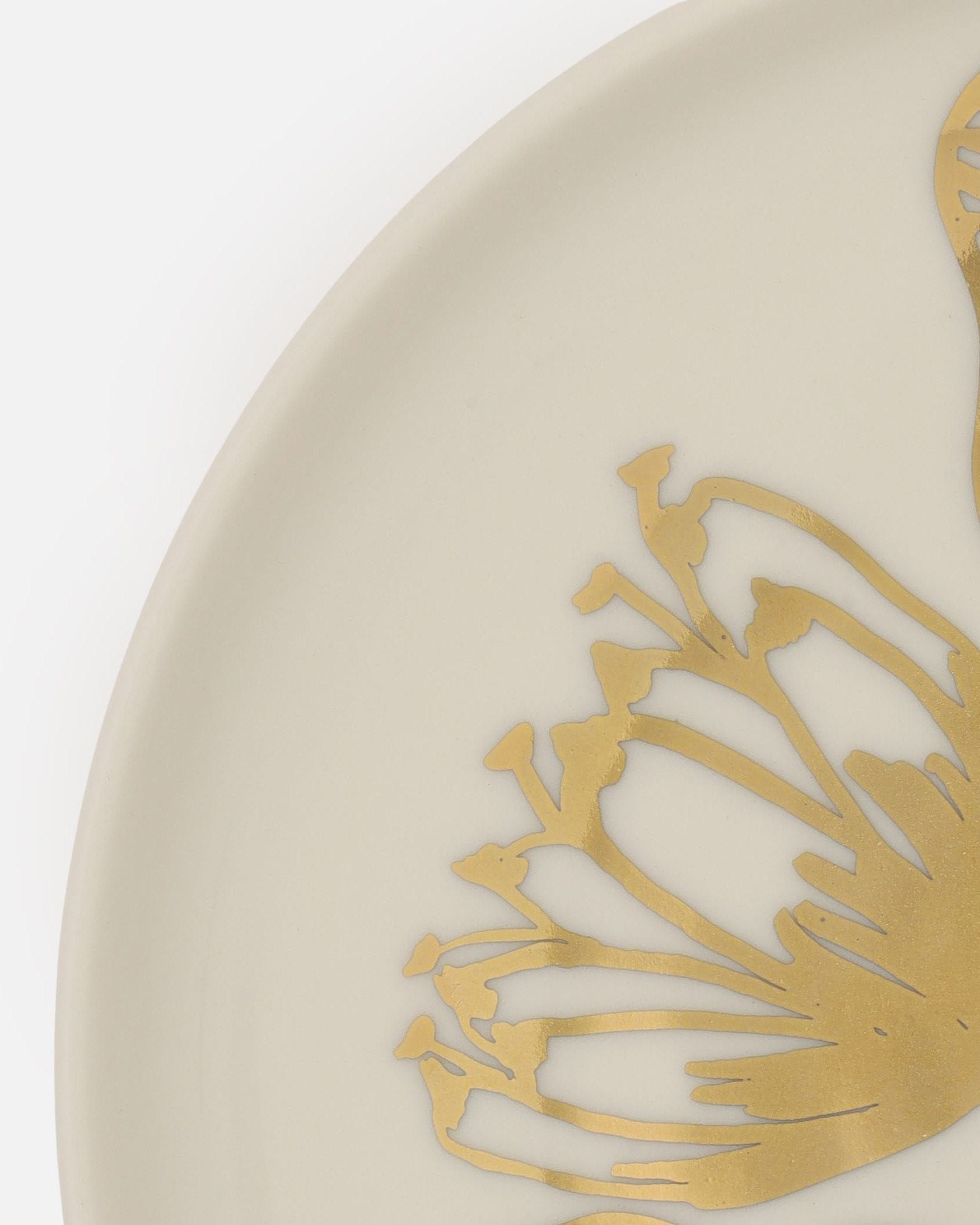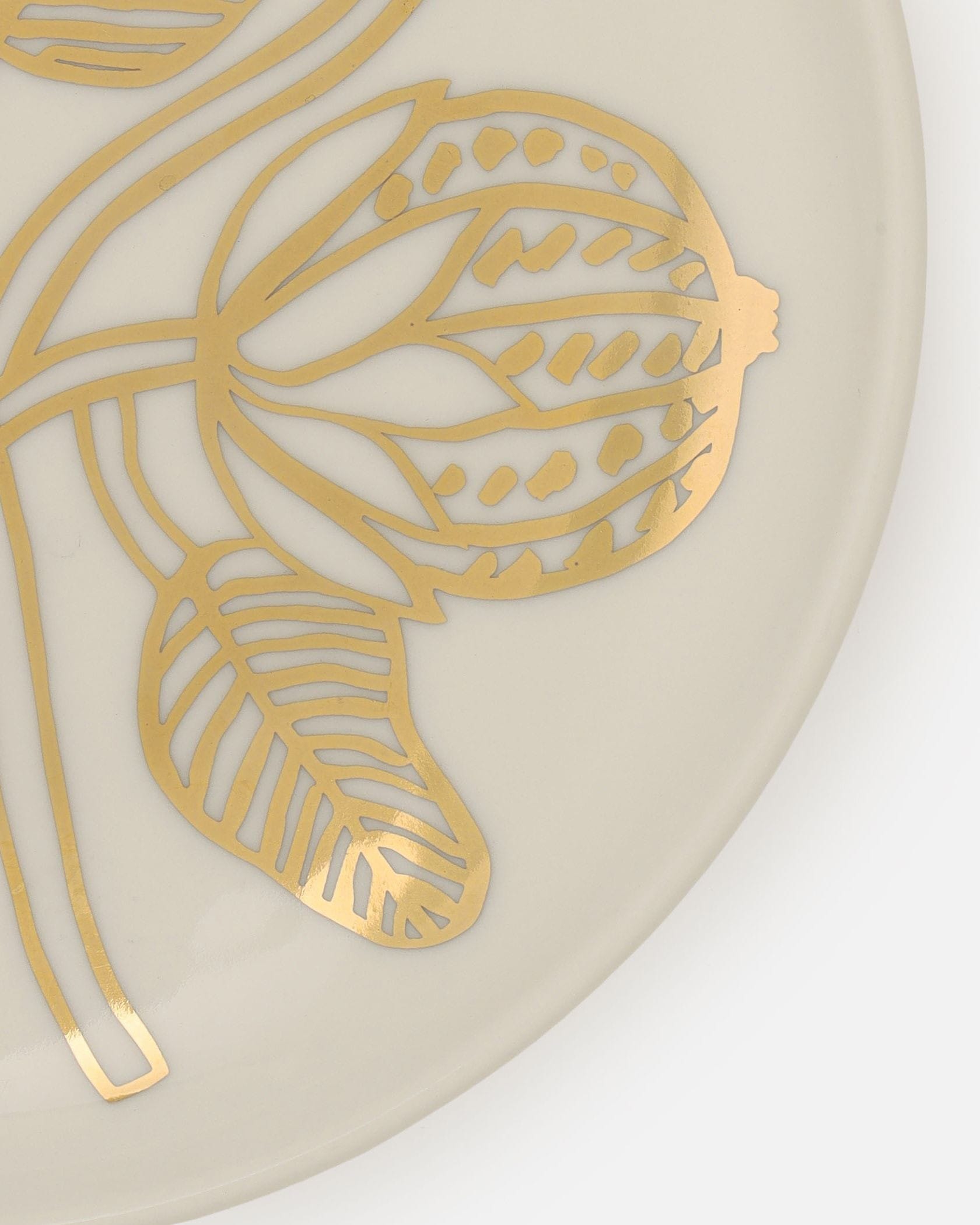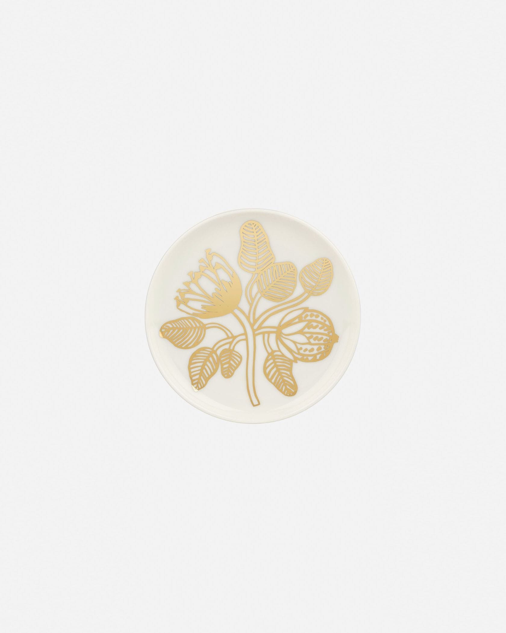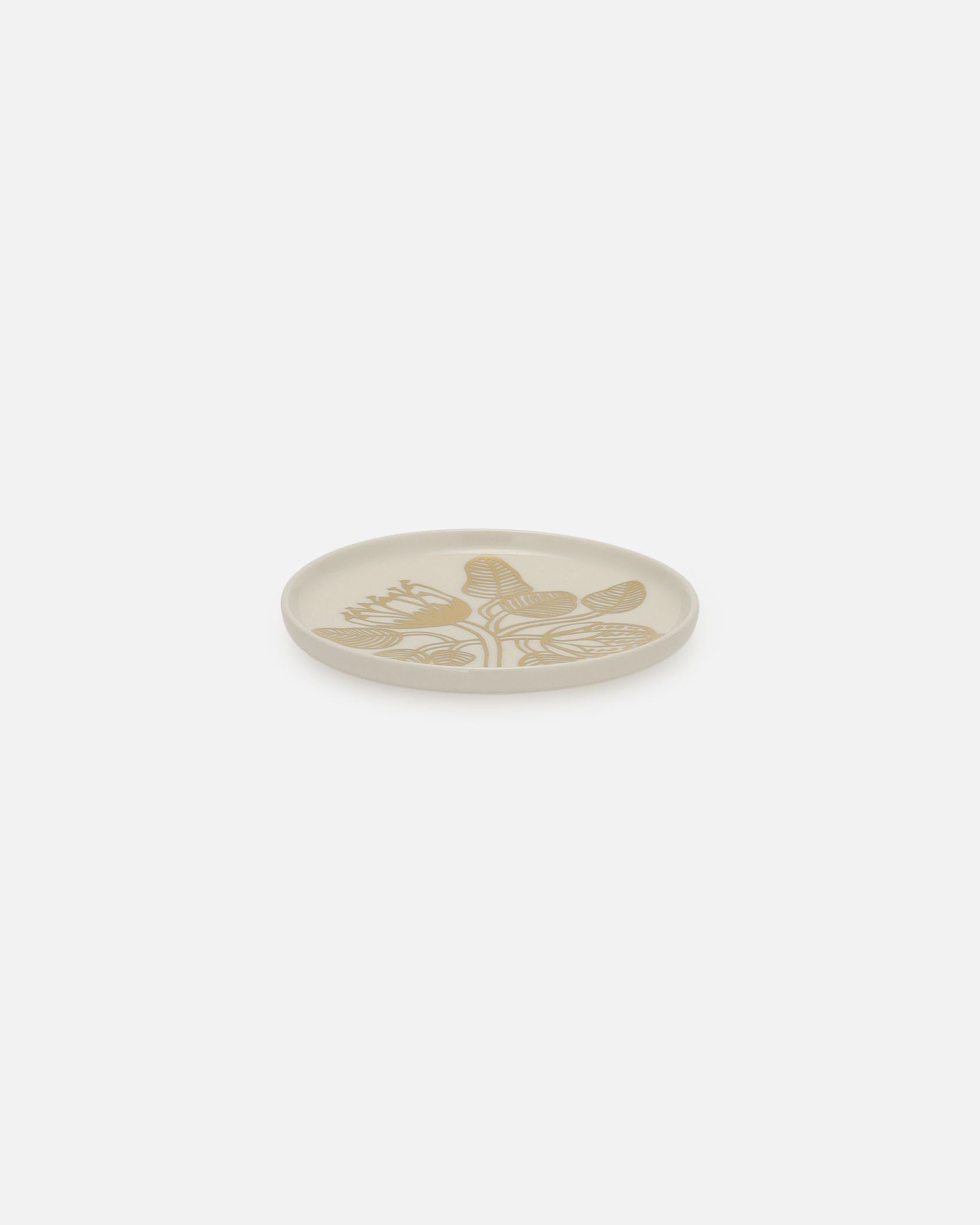 ボタニカルモチーフが大きく描かれたTiara柄が印象的なデザインのプレート(13.5cm)。美しいゴールドメタリックの顔料を使用した、エレガントで華やかなカラーも魅力。ふちが少し高くなった使い勝手の良いフォルム。特別感のあるスタイリッシュなテーブルコーディネートが実現するアイテムです。