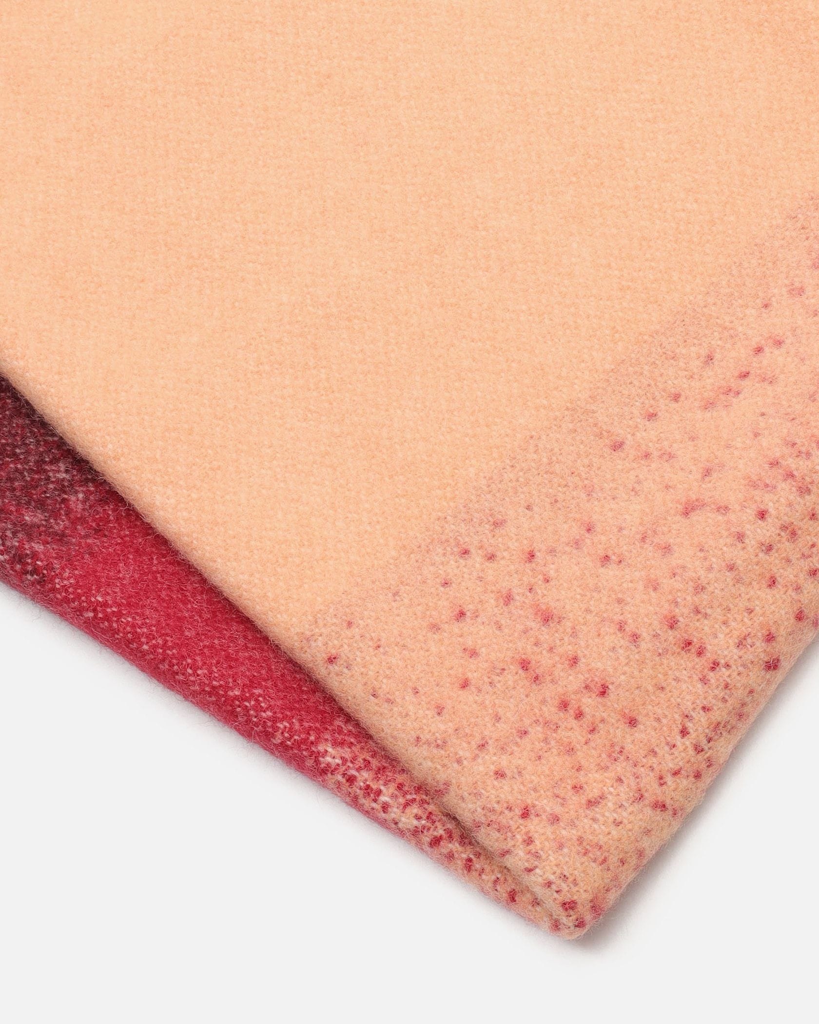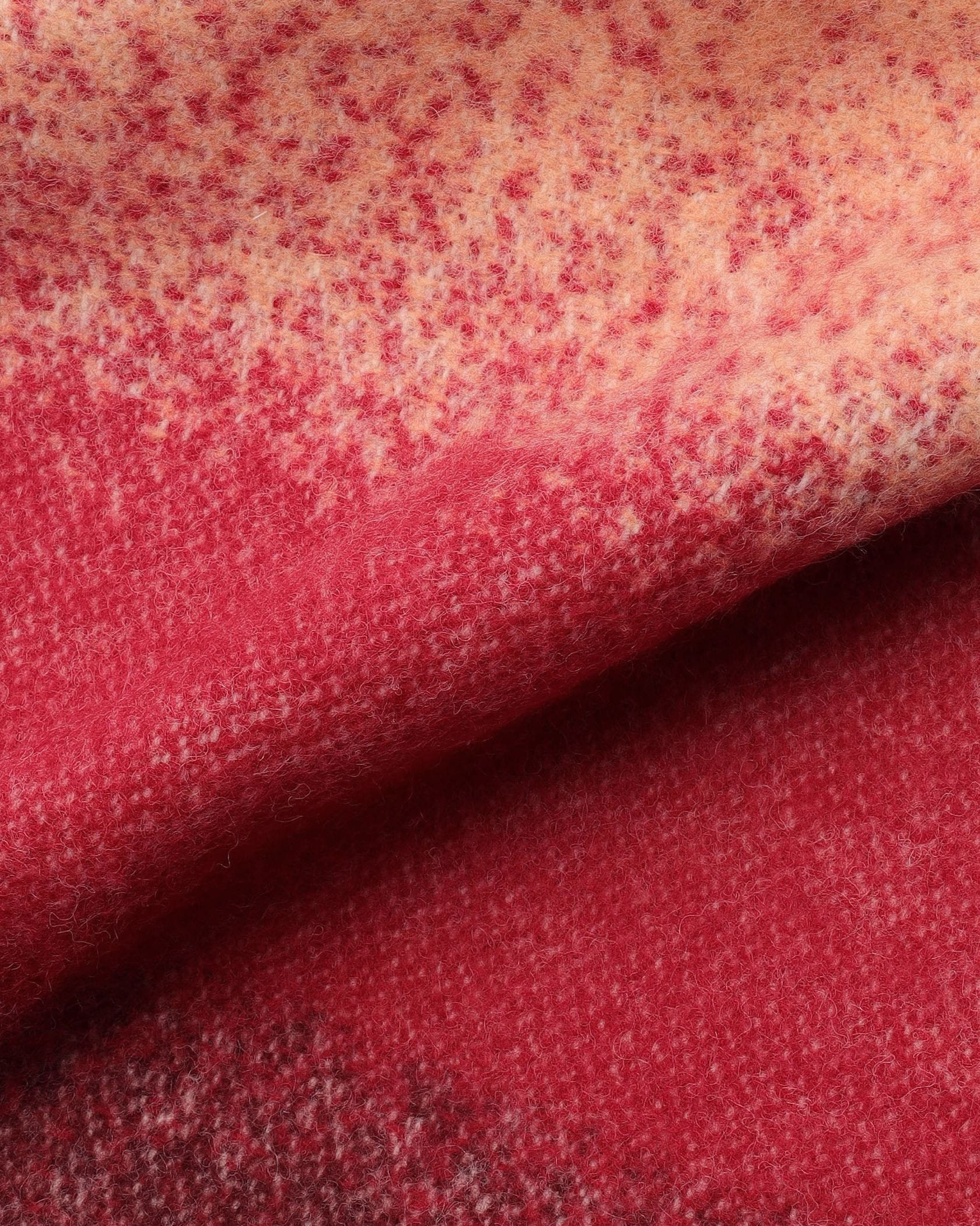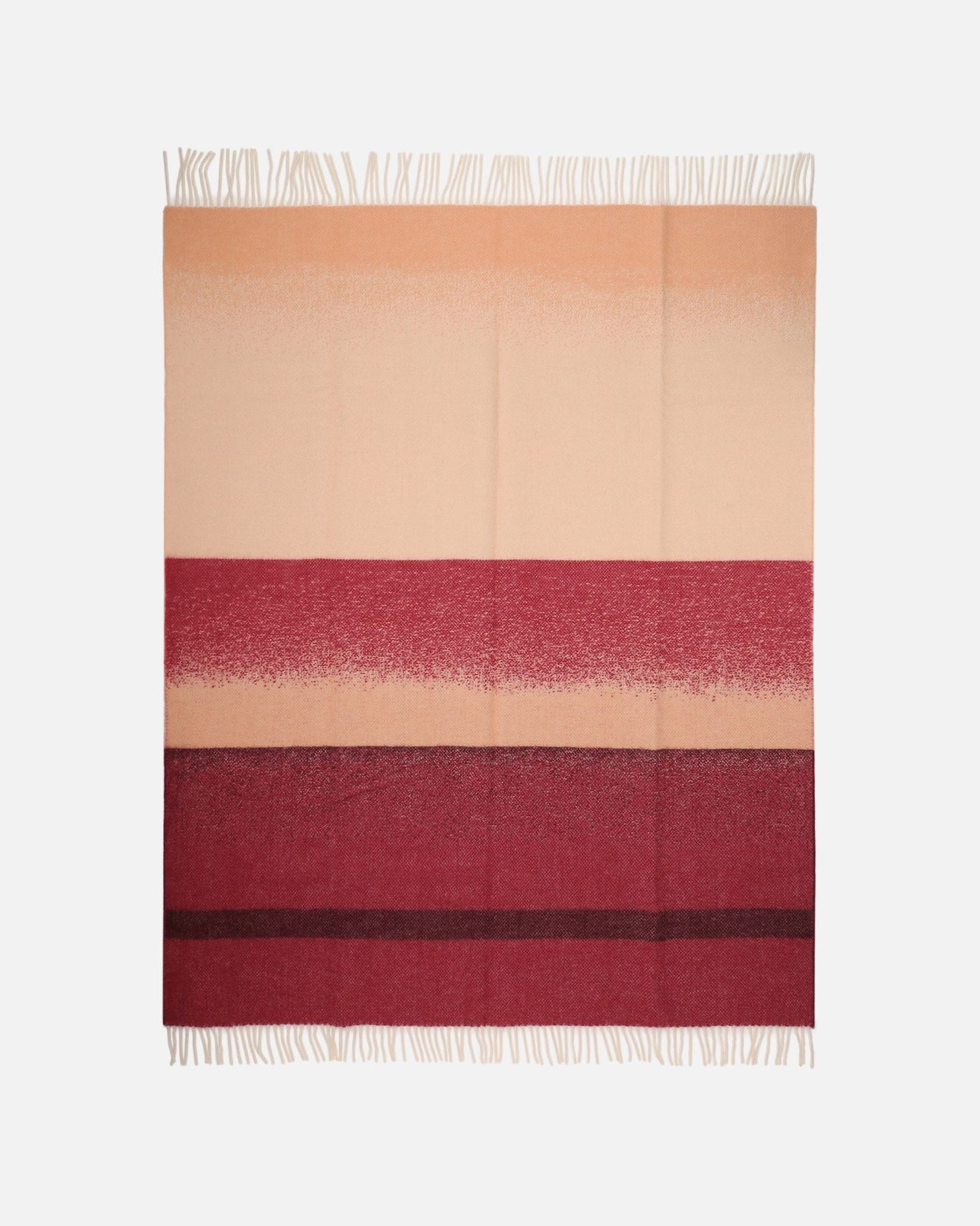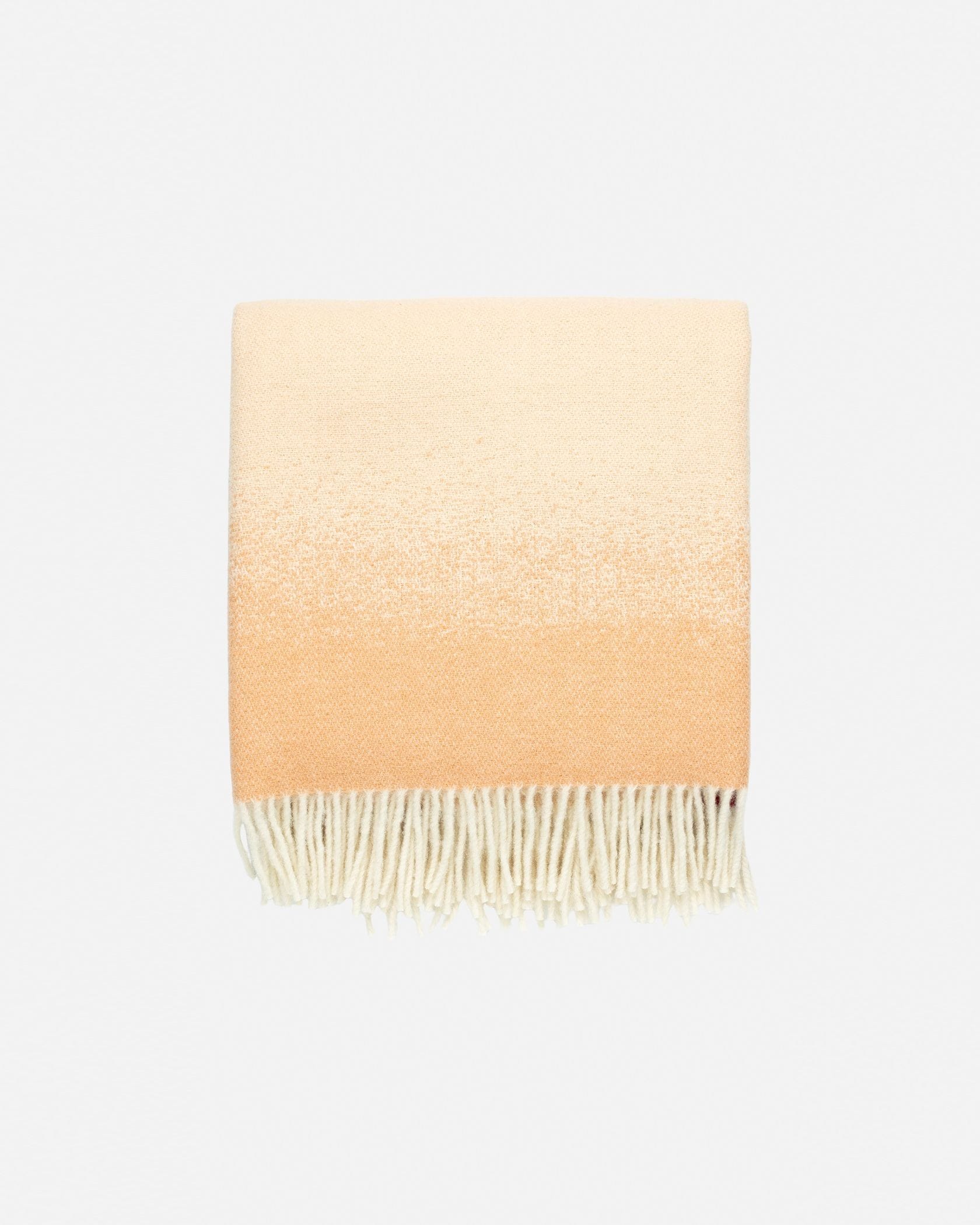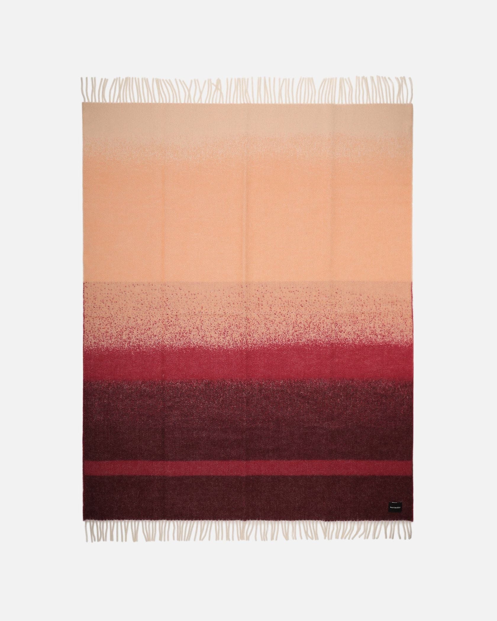 グラデーションカラーが美しいブランケット (140×180cm)。時間によって変化する自然の風景からインスピレーションを受けてデザインされたSelanne柄が印象的なデザイン。毛100%のあたたかな生地感で秋冬シーズンにぴったり。裾のフリンジも華やかなデザインアクセント。インテリアが明るくなるアイテムです。