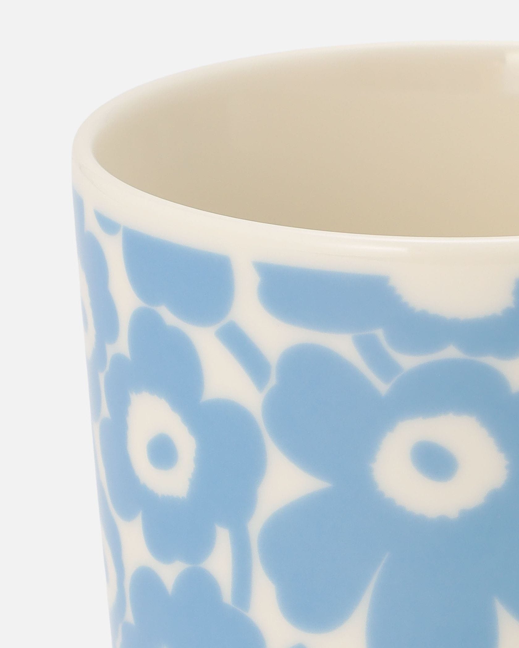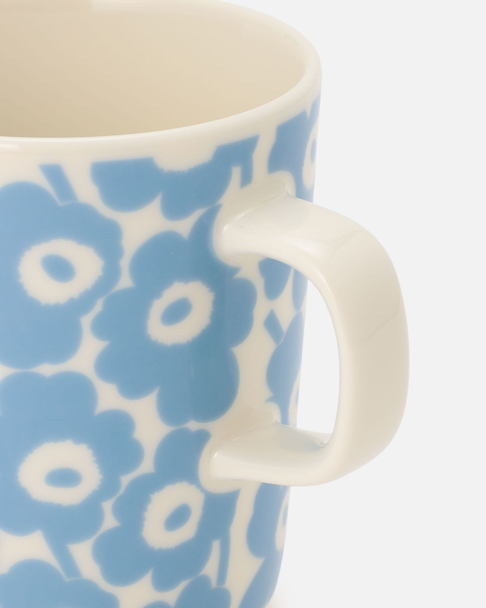 爽やかなライトブルーカラーのUnikko柄をあしらったマグカップ(250ml)。食洗機、電子レンジ、冷凍庫で使用可能な便利な仕様です。使いやすいシンプルなフォルムと小ぶりな持ち手も洗練された印象。毎日の食卓はもちろん、デスクワークや読書のおとも、テーブルコーディネートのアクセントにも最適です。