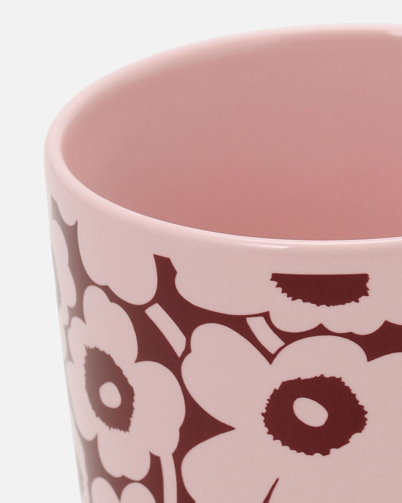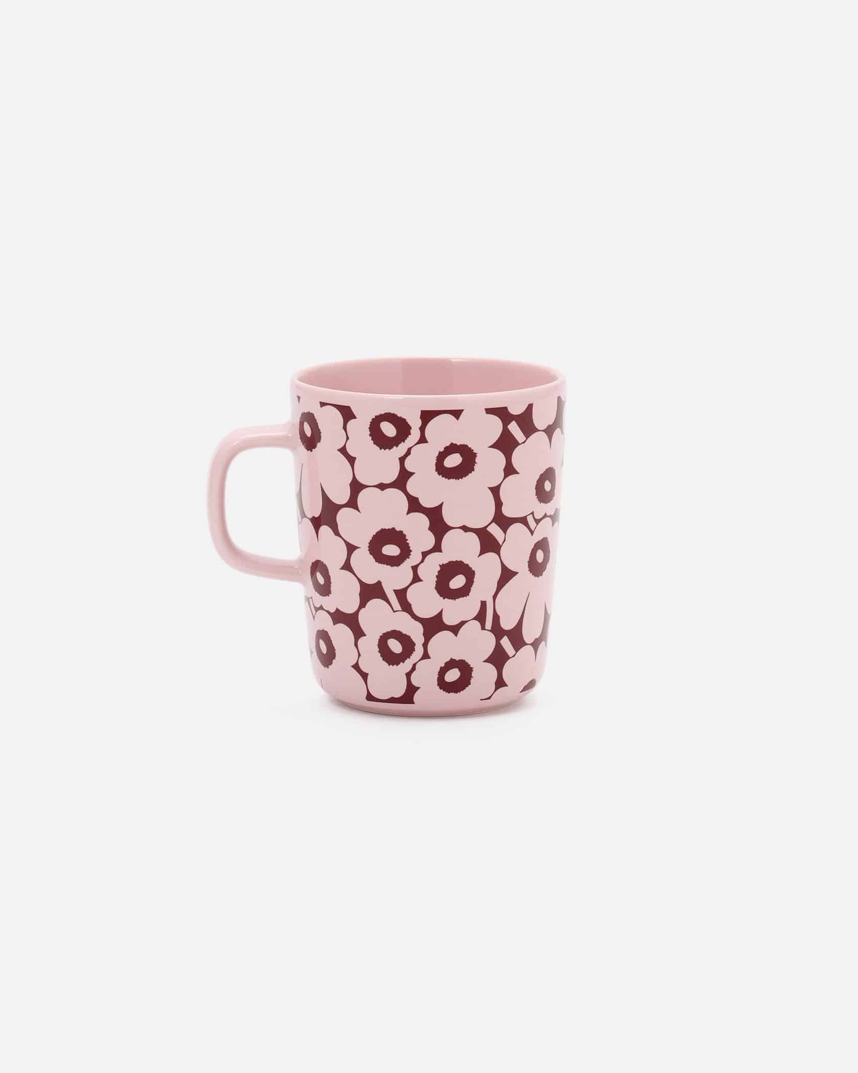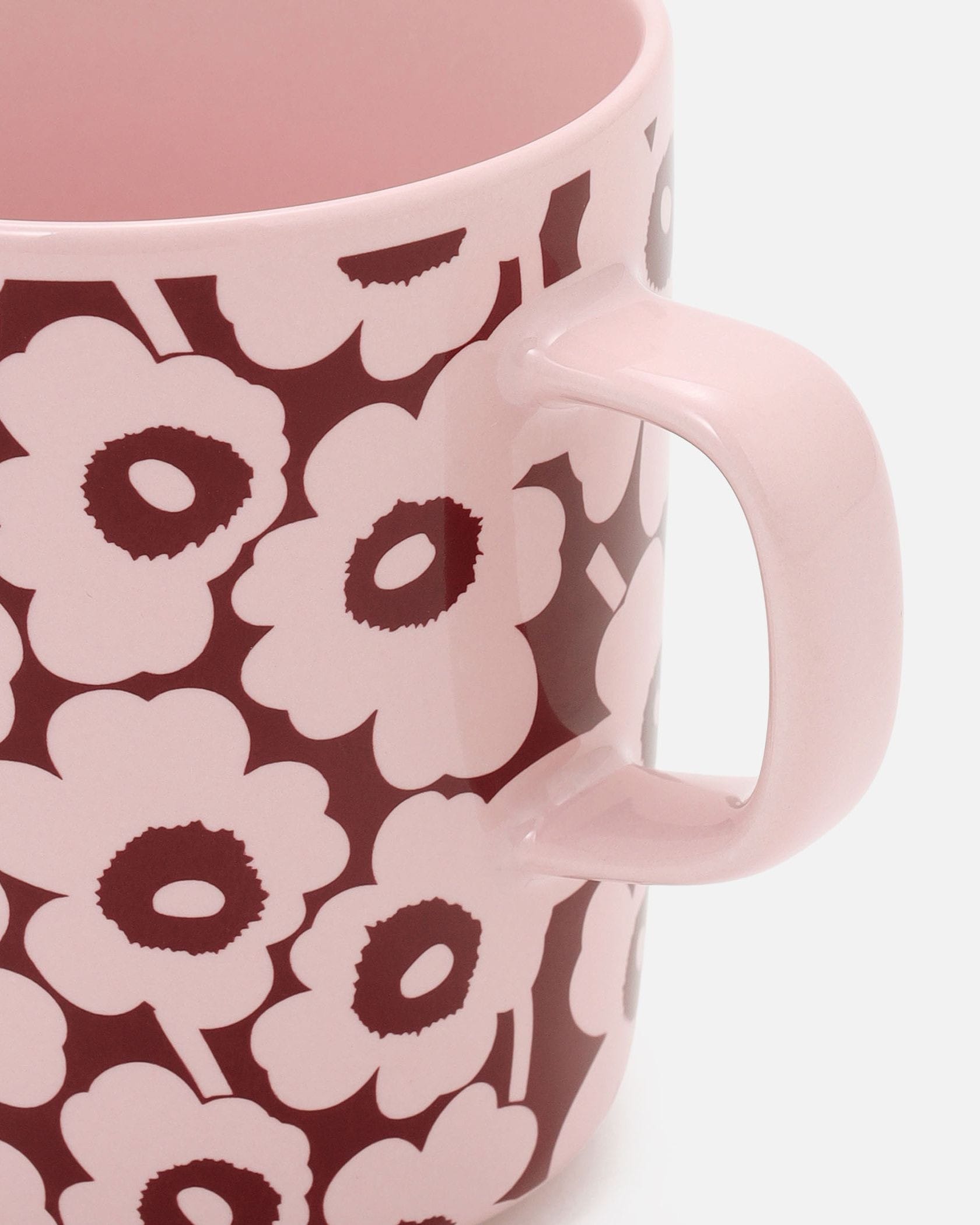 250nlサイズのUnikko柄のマグカップ。愛らしいピンクとワインのツートンカラーが、ハッピー気分を呼び込んでくれそう。大きすぎず小さすぎないサイズは、シーンを選ばずに活躍します。