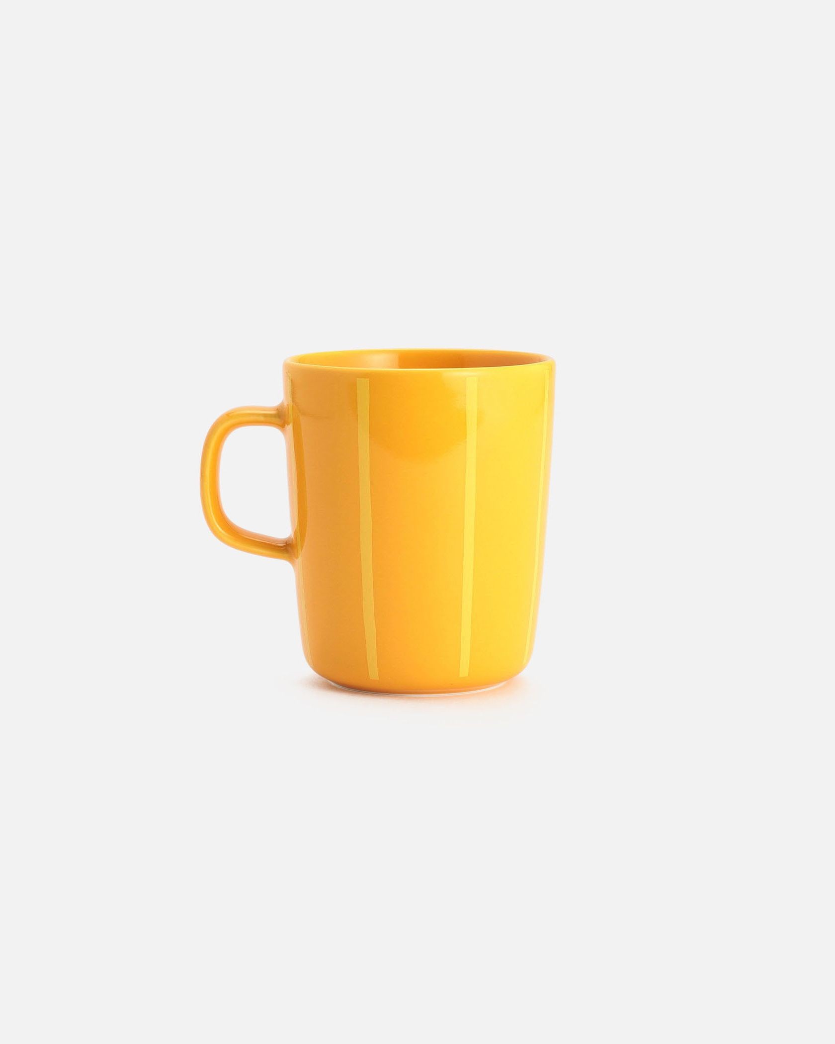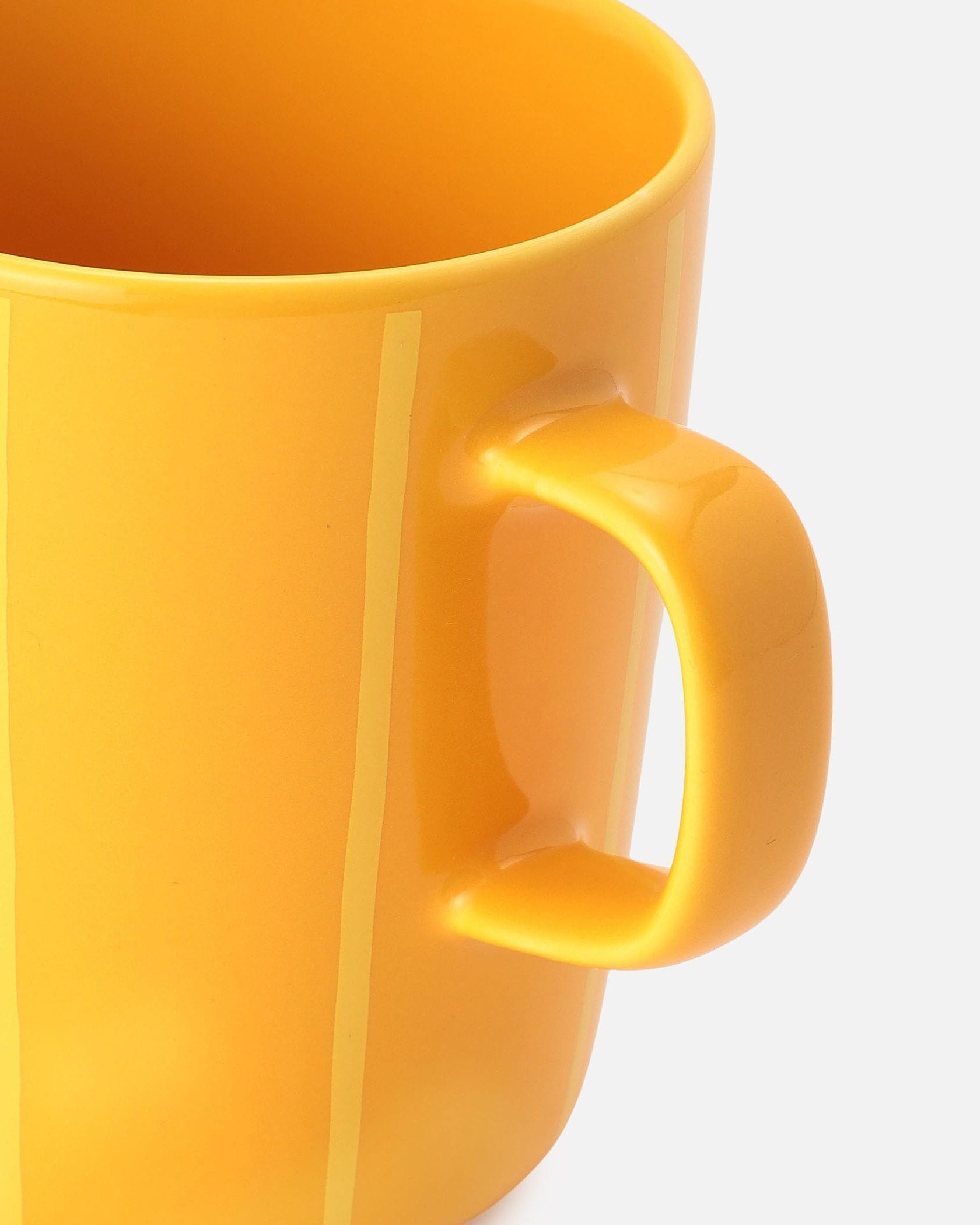 鮮やかなイエローにさりげないストライプの入ったマグカップ。大きすぎず小さすぎない250mlサイズで、一日中活躍するアイテムに。テーブルコーディネートのアクセントにもおすすめです。
