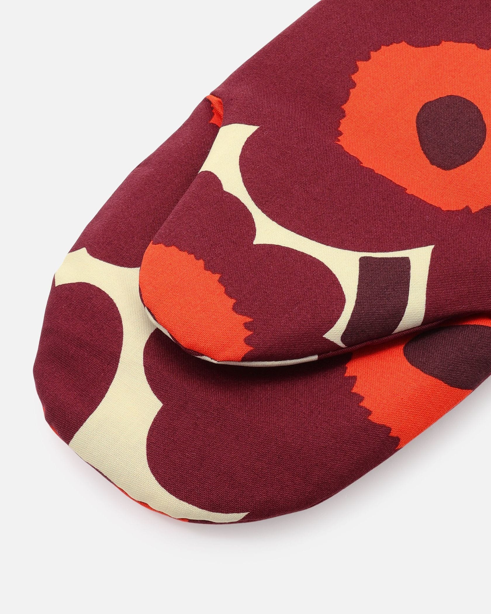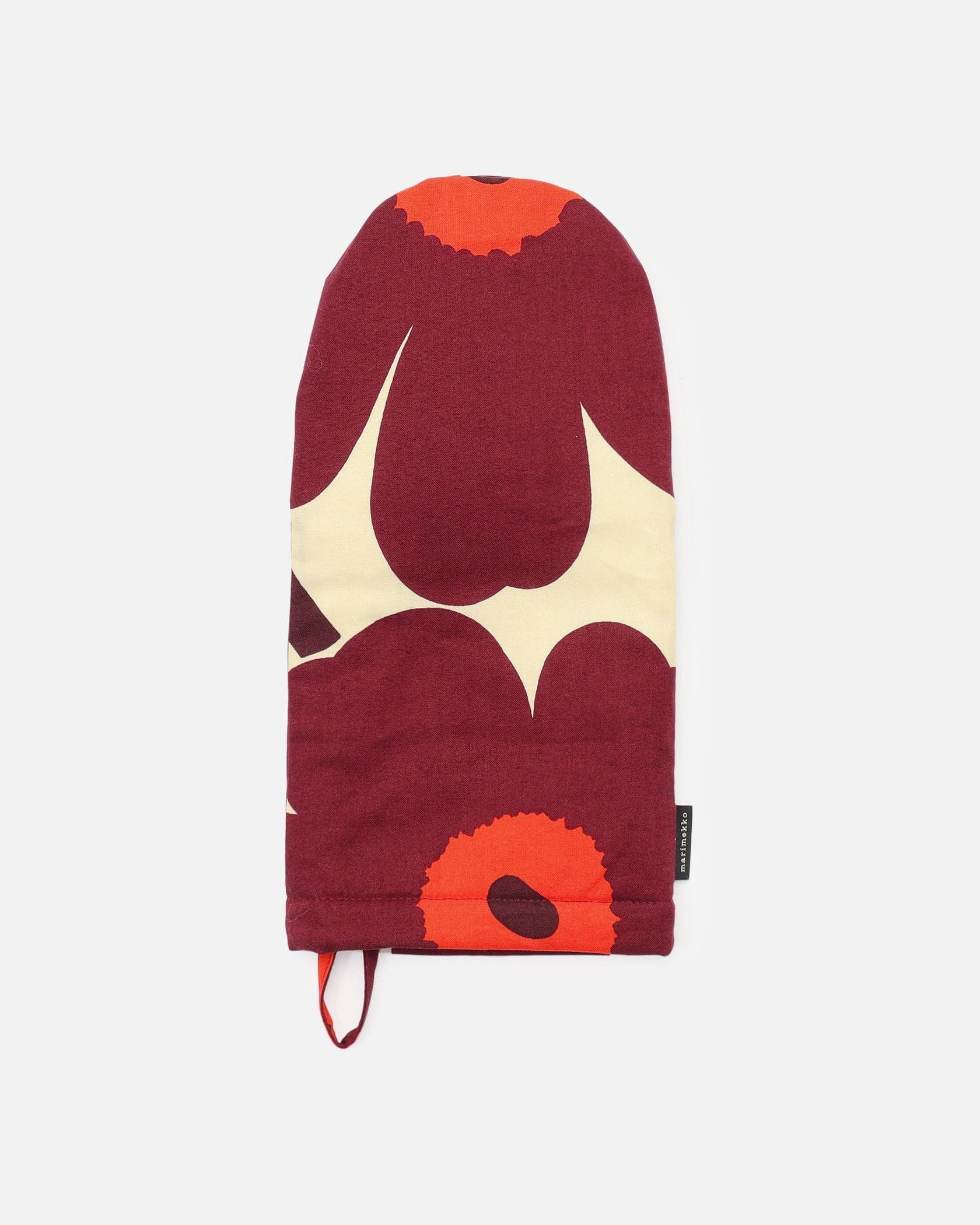 Marimekkoを代表するUnikko柄のミトン。キッチンのインテリアが華やぐ大きなフラワーモチーフが魅力。サイドにはブランドタグのアクセントがさりげなくスタイリッシュなポイント。吊り下げに便利なループ付き、しっかりと熱を防ぐ中綿入りで実用面も抜群。デイリーに活躍するアイテムです。
