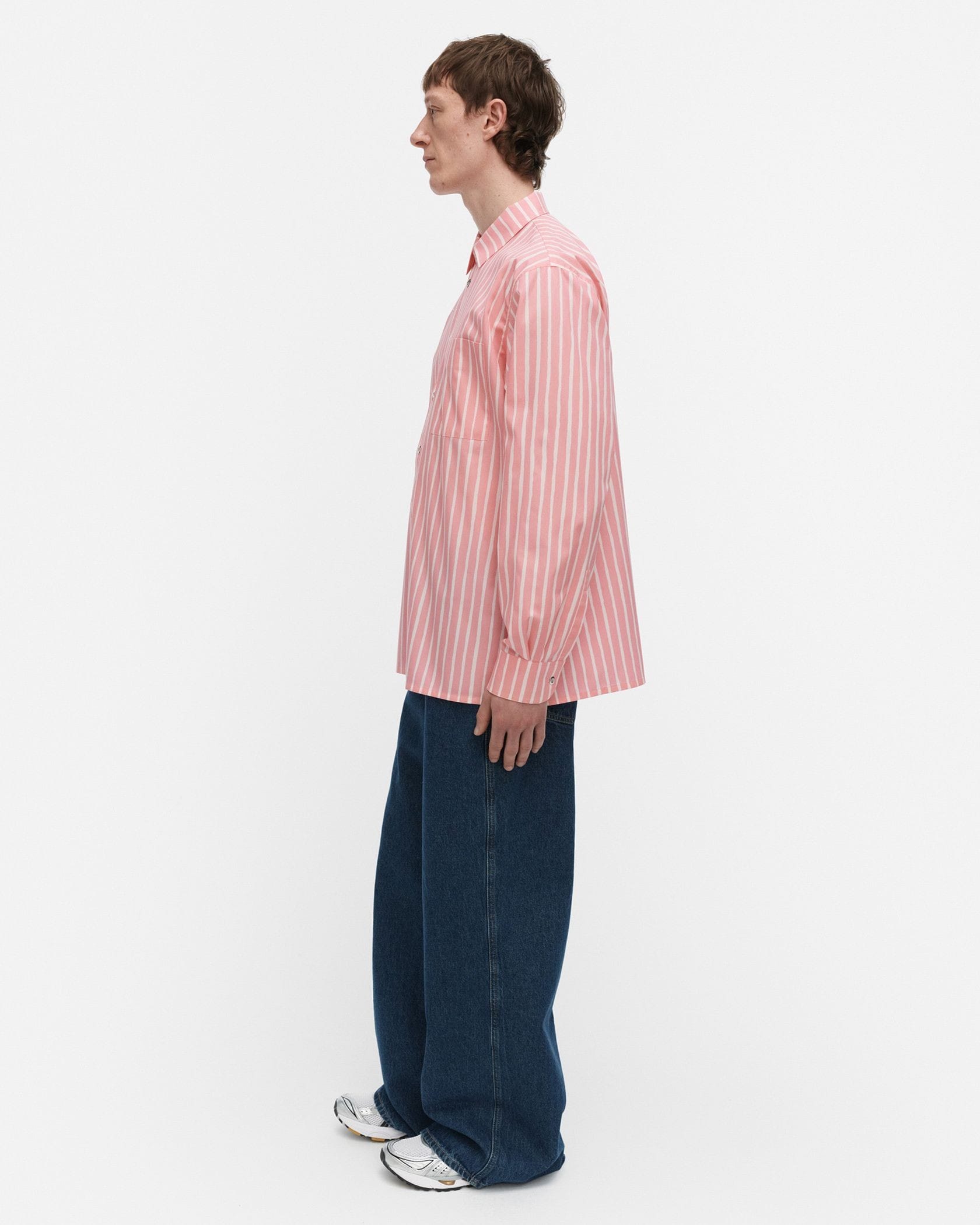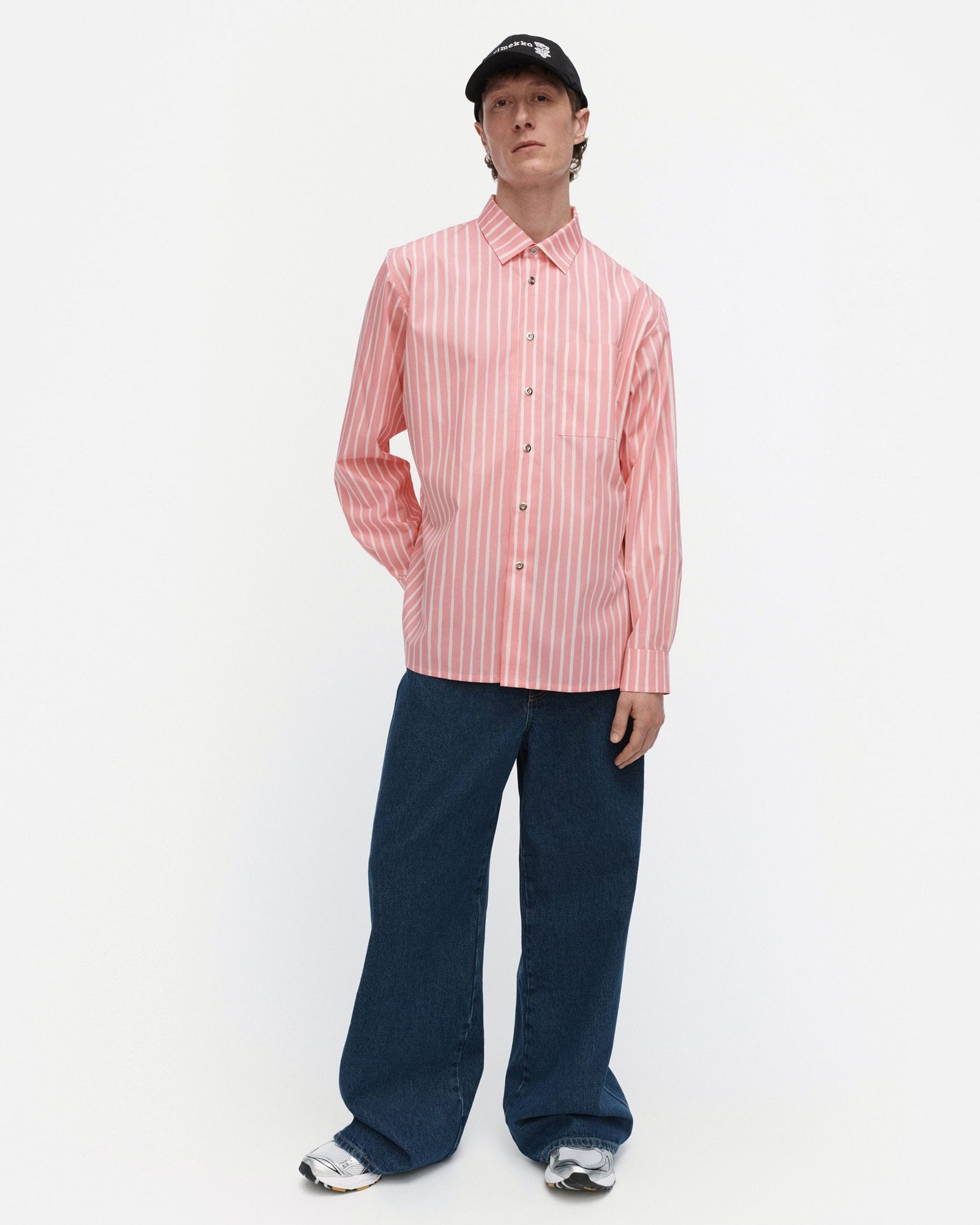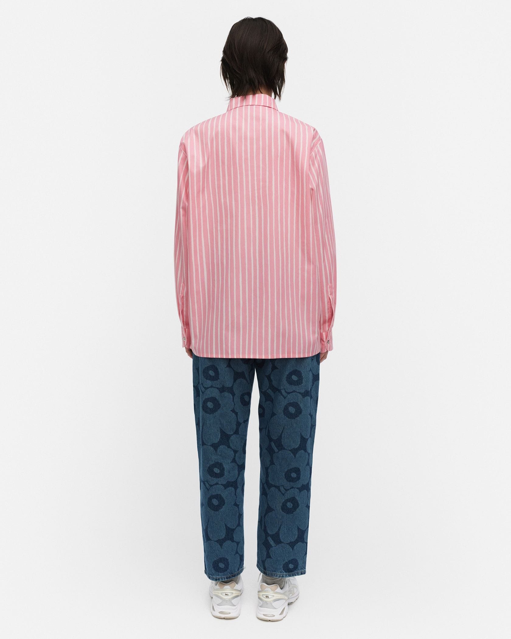 フリーハンドタッチのPiccolo柄が装いに遊び心をもたらすJokapoikaシャツ。印象的な配色に加え、シルバーのメタルボタンでスタイリッシュなアクセントをつけています。左胸にポケットを備え、ストレートカットの裾はサイドスリットをプラス。シルエットはユニセックス仕様で、羽織りとしても使えます。