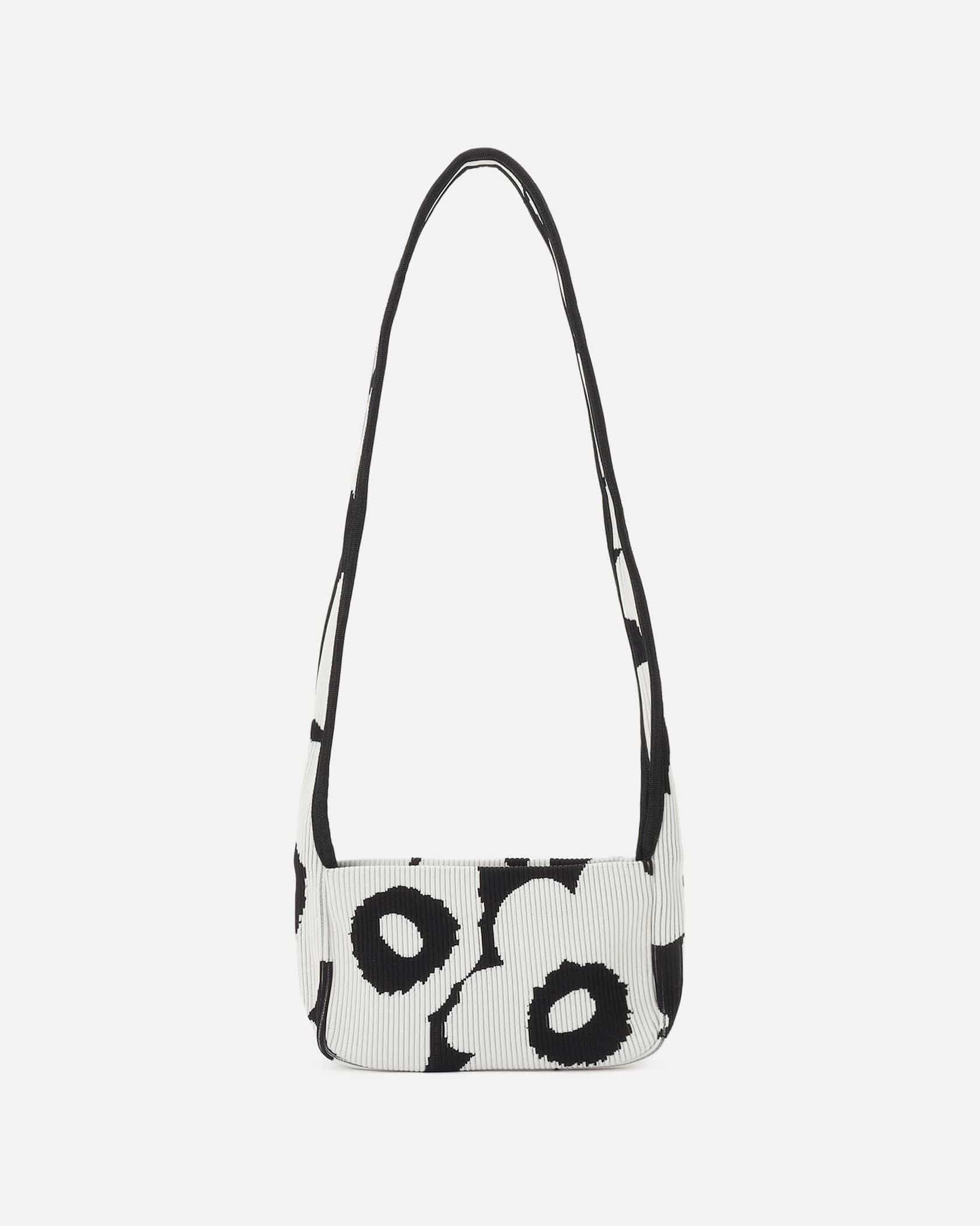 リブのような畝と厚みのあるニット地で、立体感のあるフォルムに仕上げたショルダーバッグ。斜め掛けするのにちょうどよい長さのストラップを備えています。ブランドを象徴するUnikko柄は、コーディネートのアクセントとしても活躍。スマートフォンやお財布など、必要な小物がすっきり収まるサイズ感です。