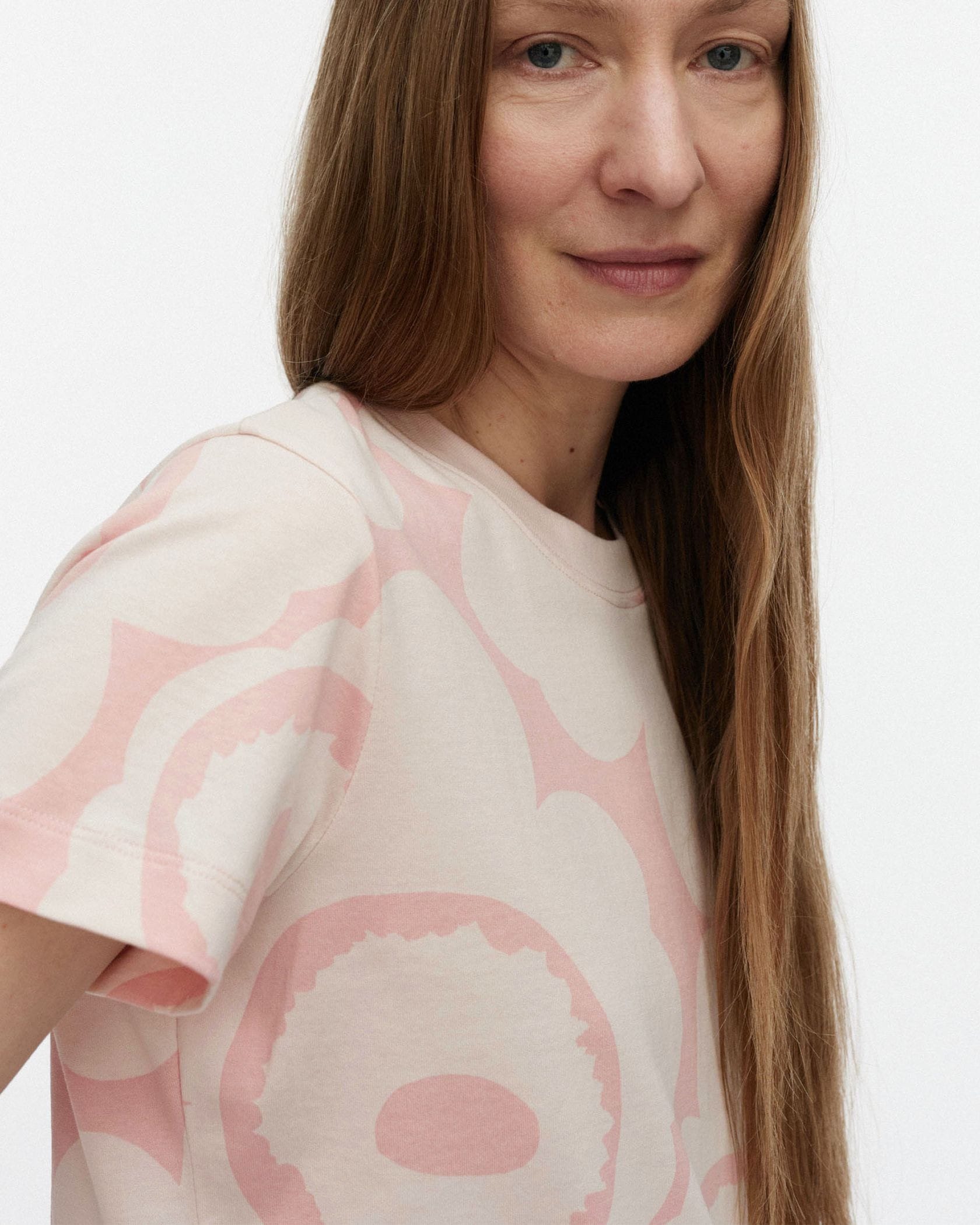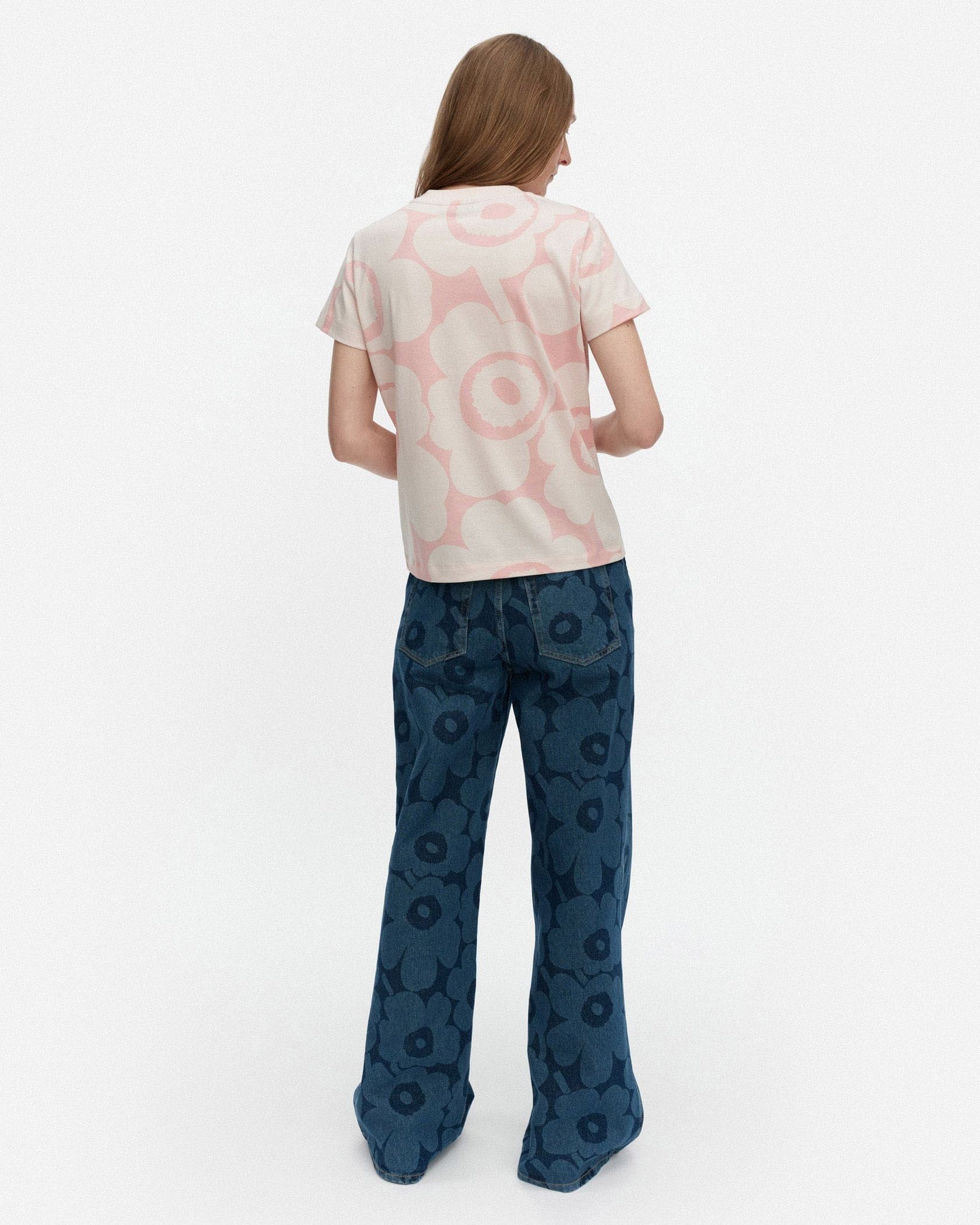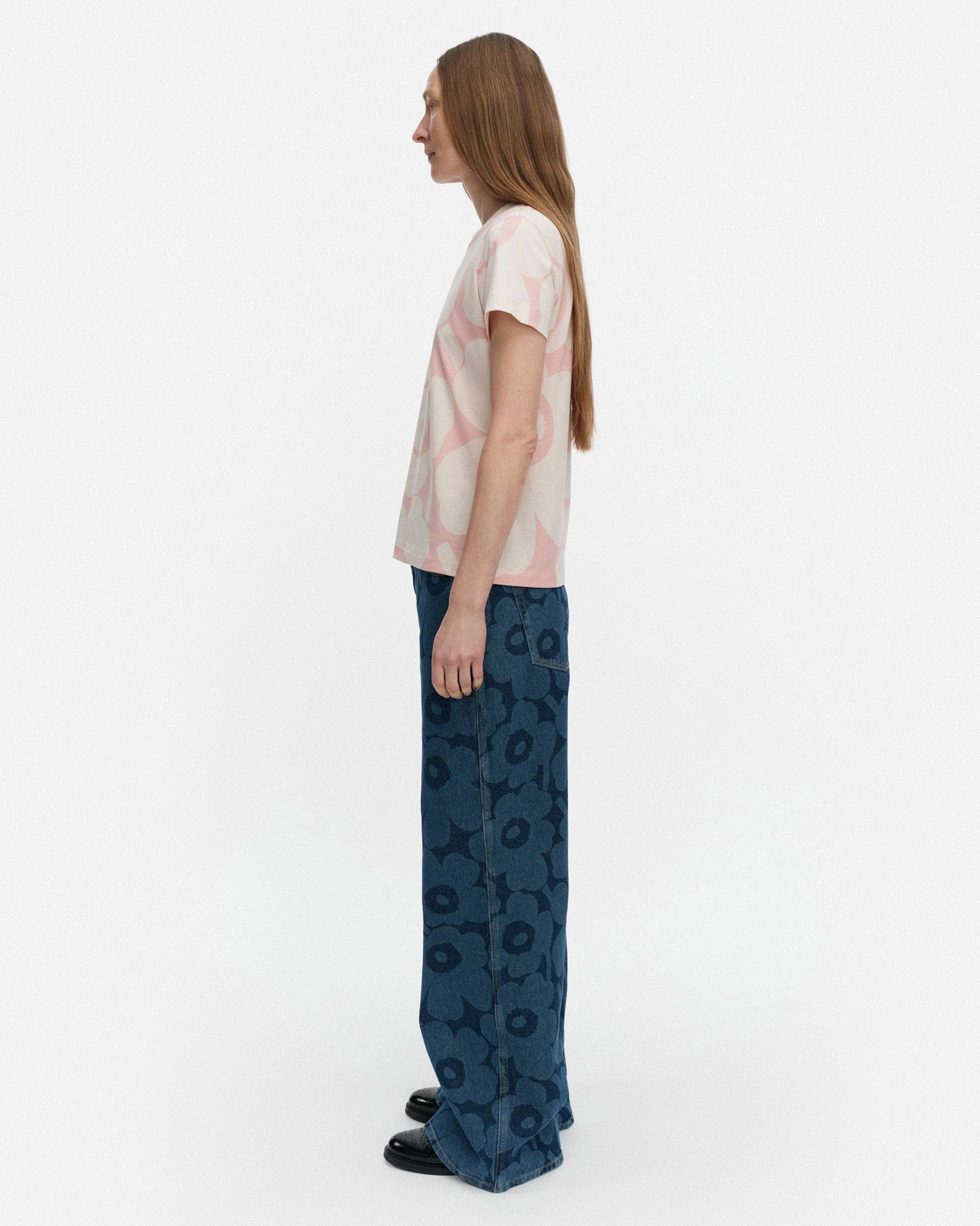 いつもの着こなしに明るさを加味してくれるUnikko柄Tシャツ。コーディネートの主役に、レイヤードのインナーにと幅広く活躍します。すっきりとしたシルエットも、着回しやすさのポイントに。