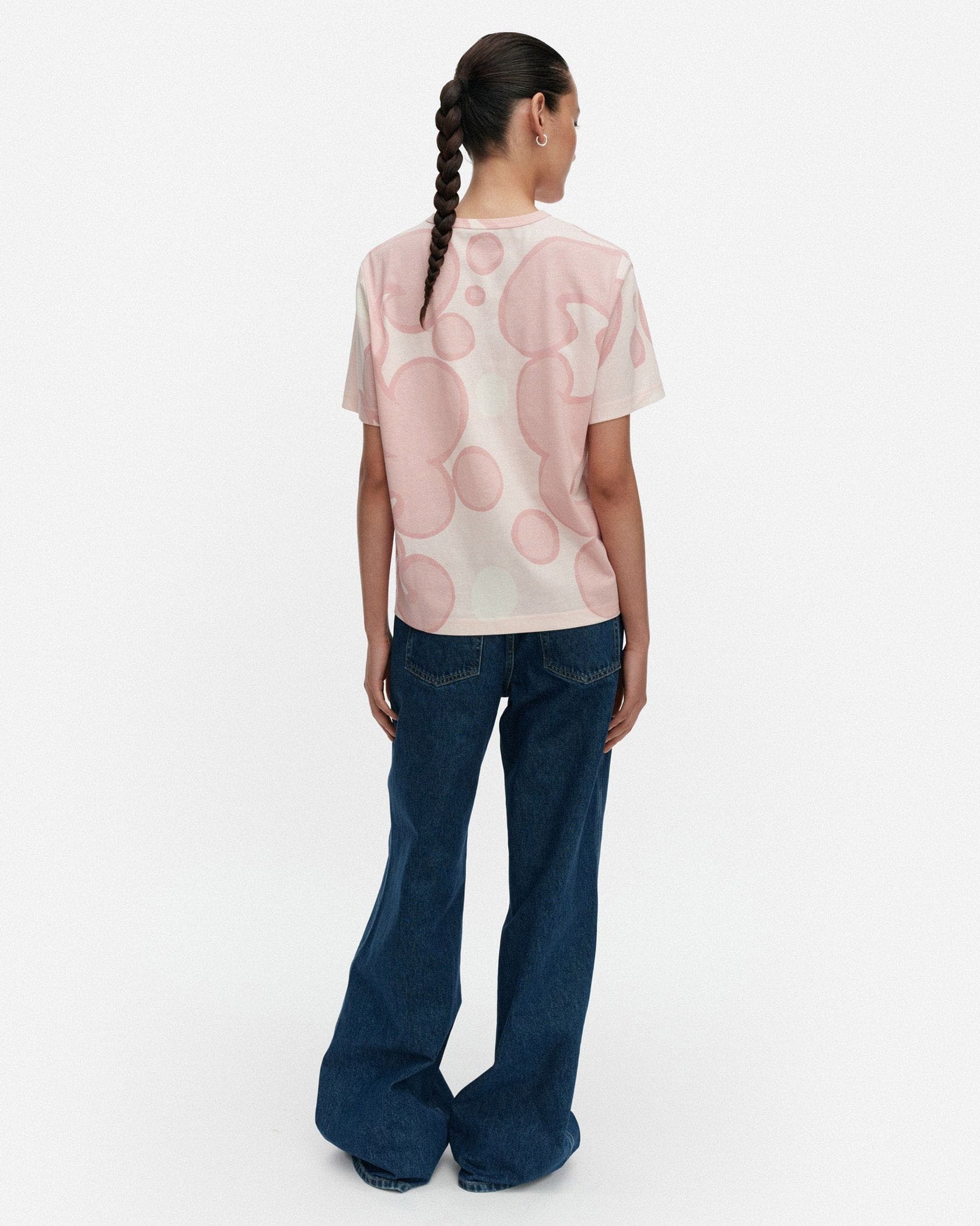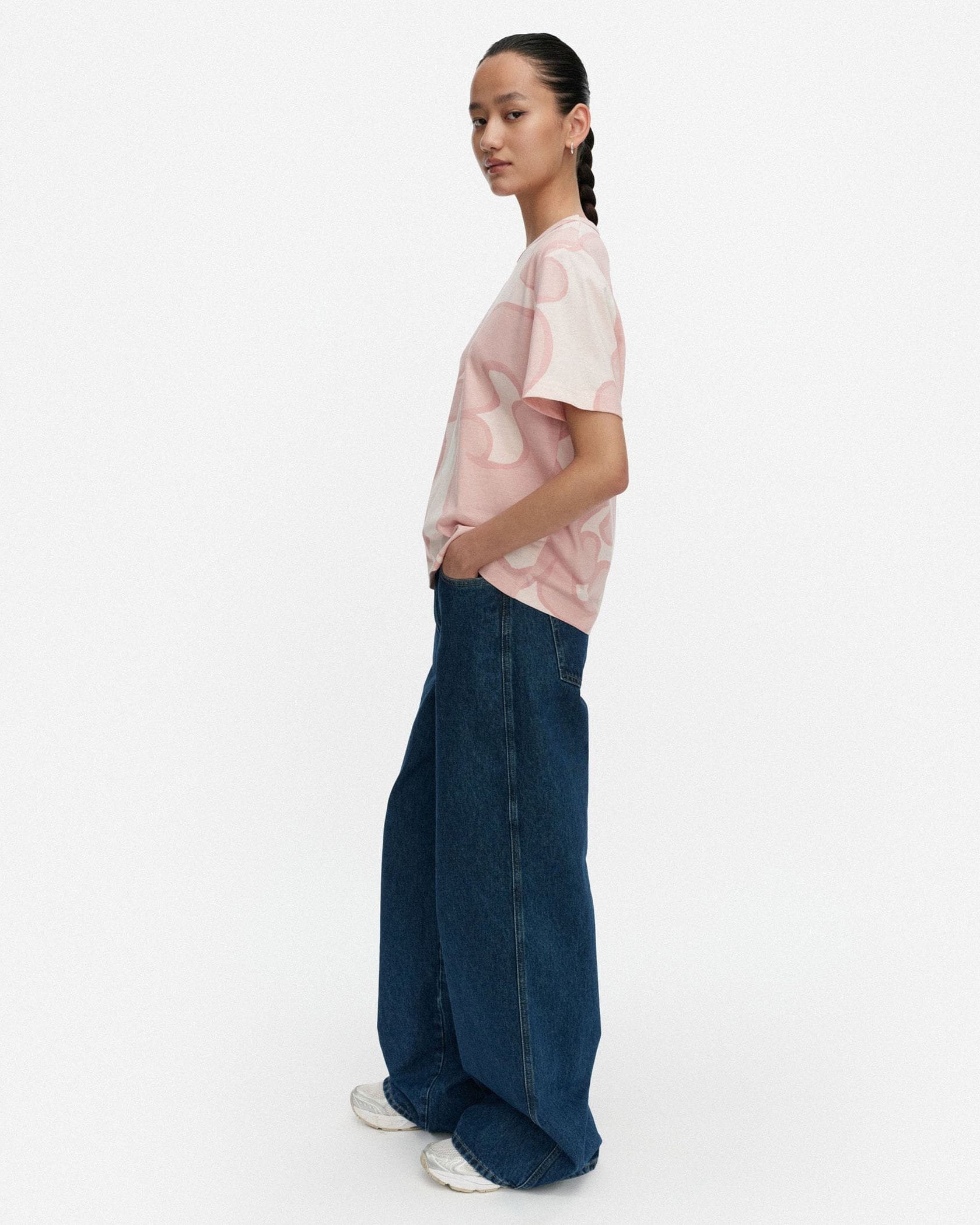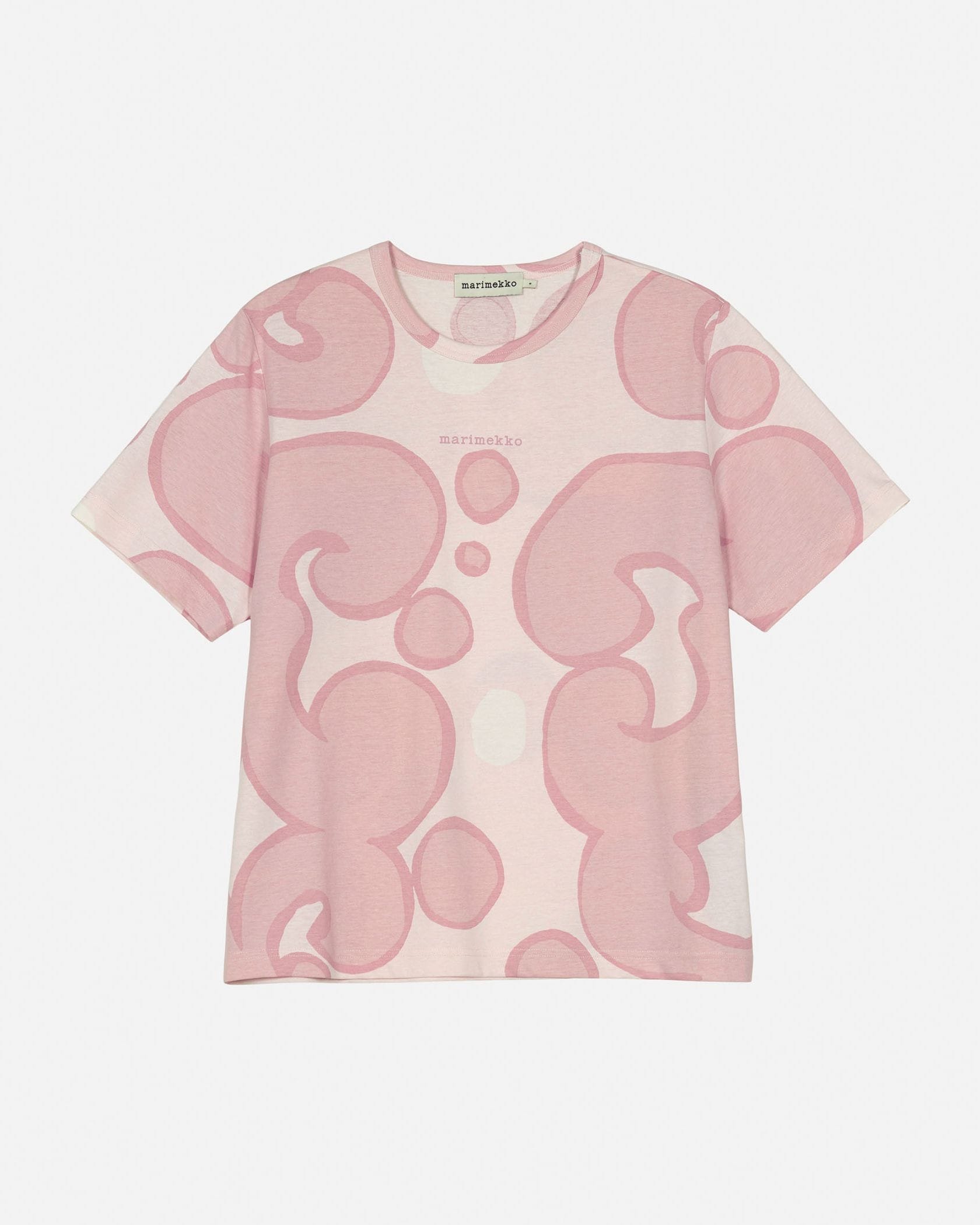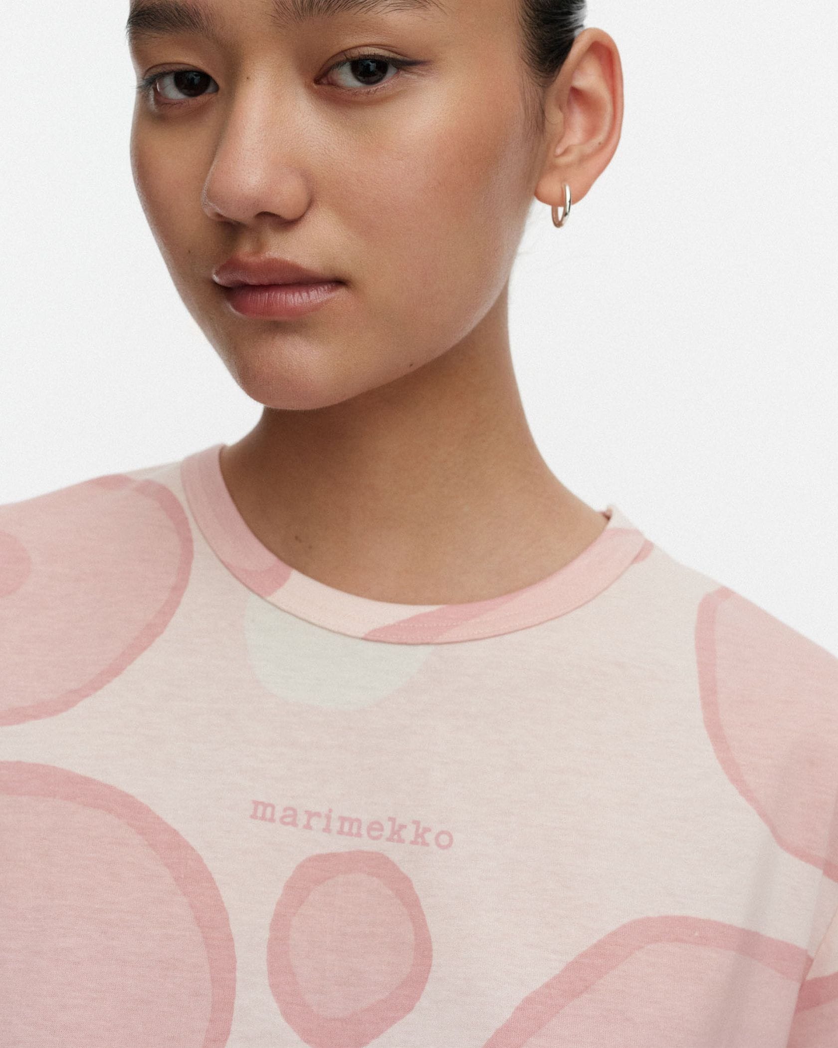 Marimekkoからオアシスを意味するKeidas(ケイダス)柄のTシャツが登場です。遠目にもインパクト抜群なプリント柄で、1枚着はもちろんインナーとしても存在感たっぷりにお使いいただけます。毎日のカジュアルシーンから、アクティブに動きたい日まで幅広いシーンで活躍するアイテムです。