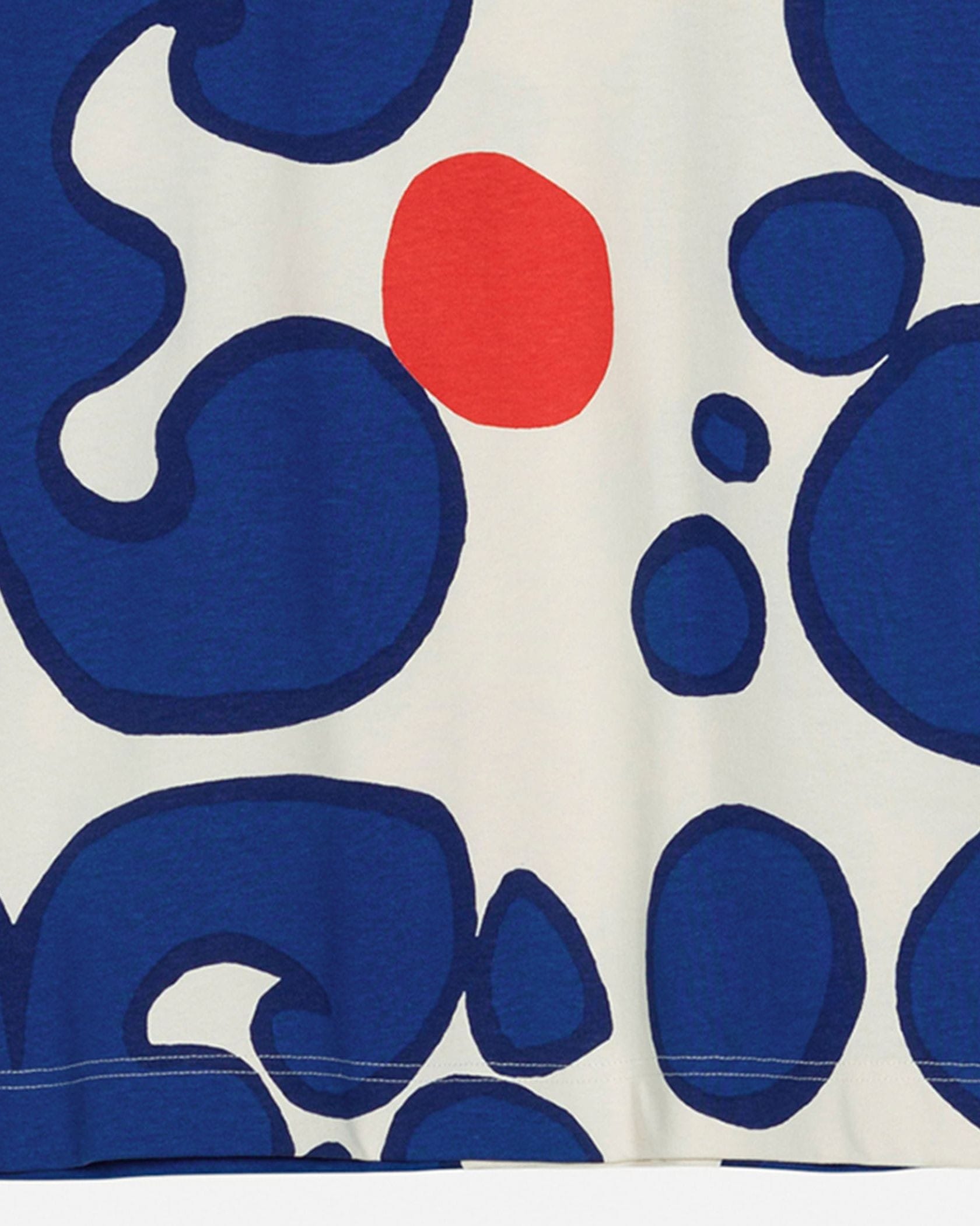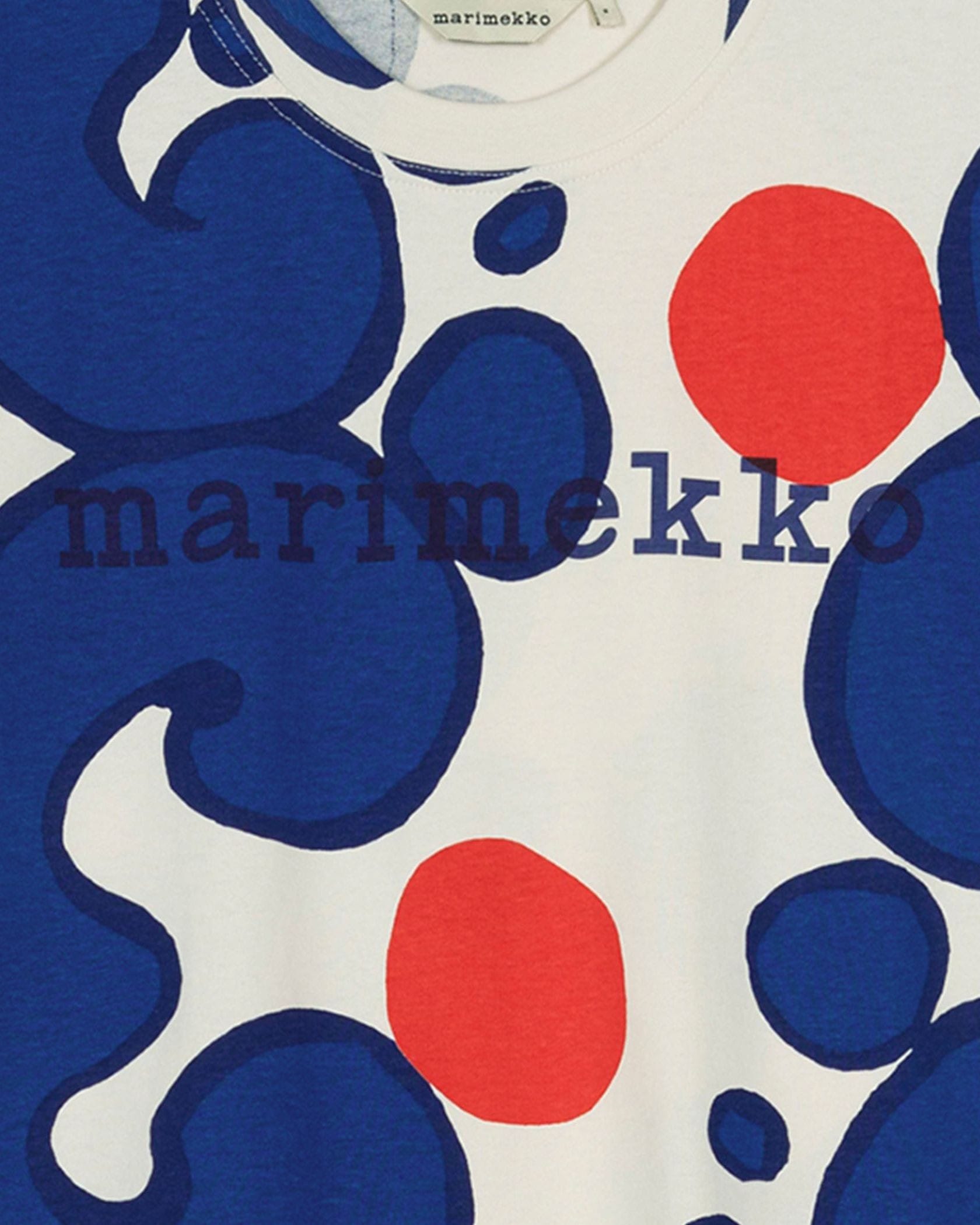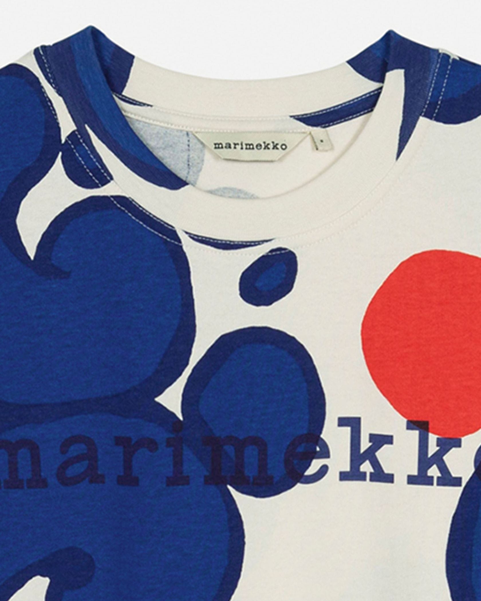Marimekkoからオアシスを意味するKeidas(ケイダス)柄のTシャツが登場です。遠目にもインパクト抜群な配色プリント柄で、1枚着はもちろんインナーとしても存在感たっぷりにお使いいただけます。ゆったり着られるオーバーサイズのシルエットで、長袖をINしたレイヤードスタイルもおすすめです。