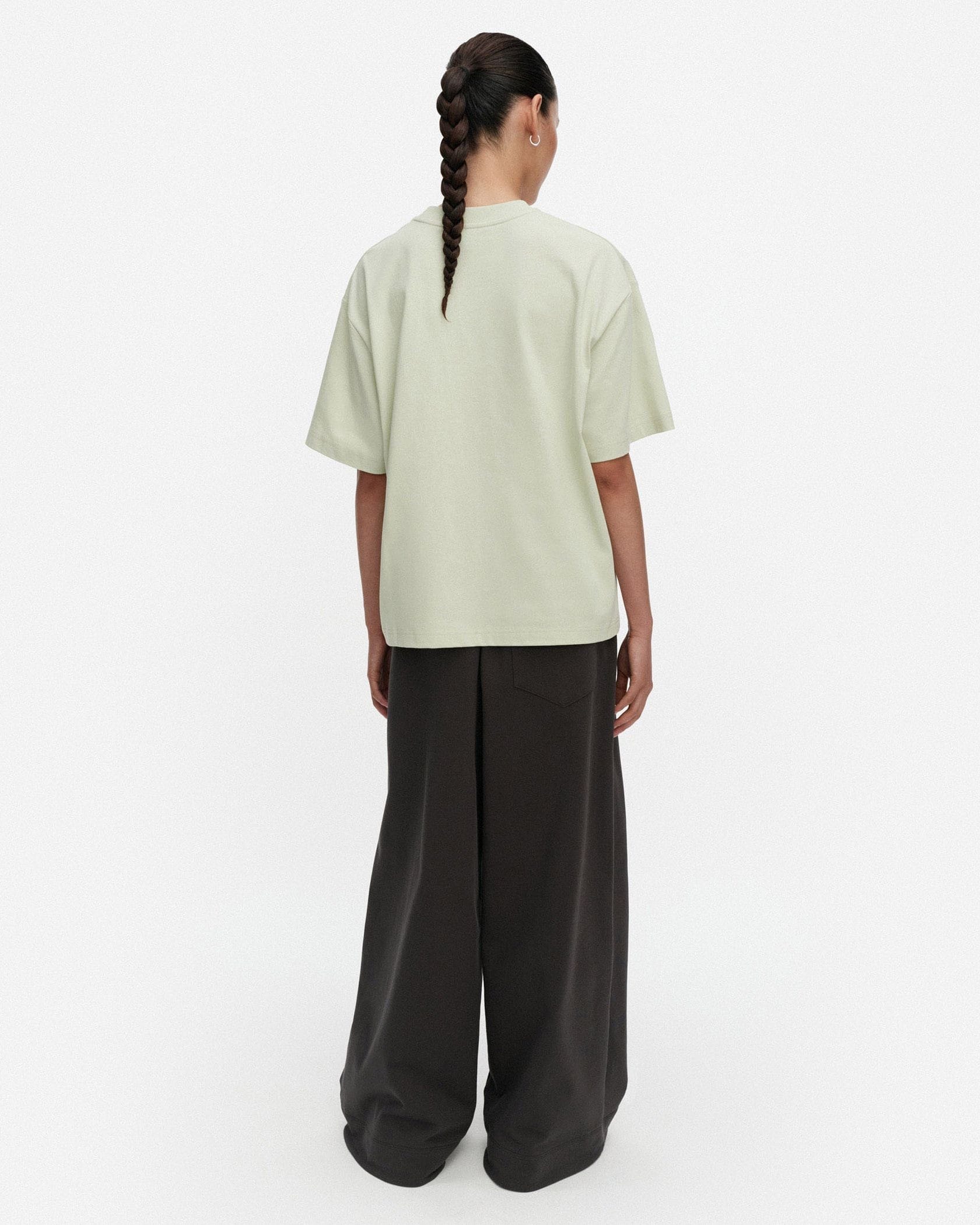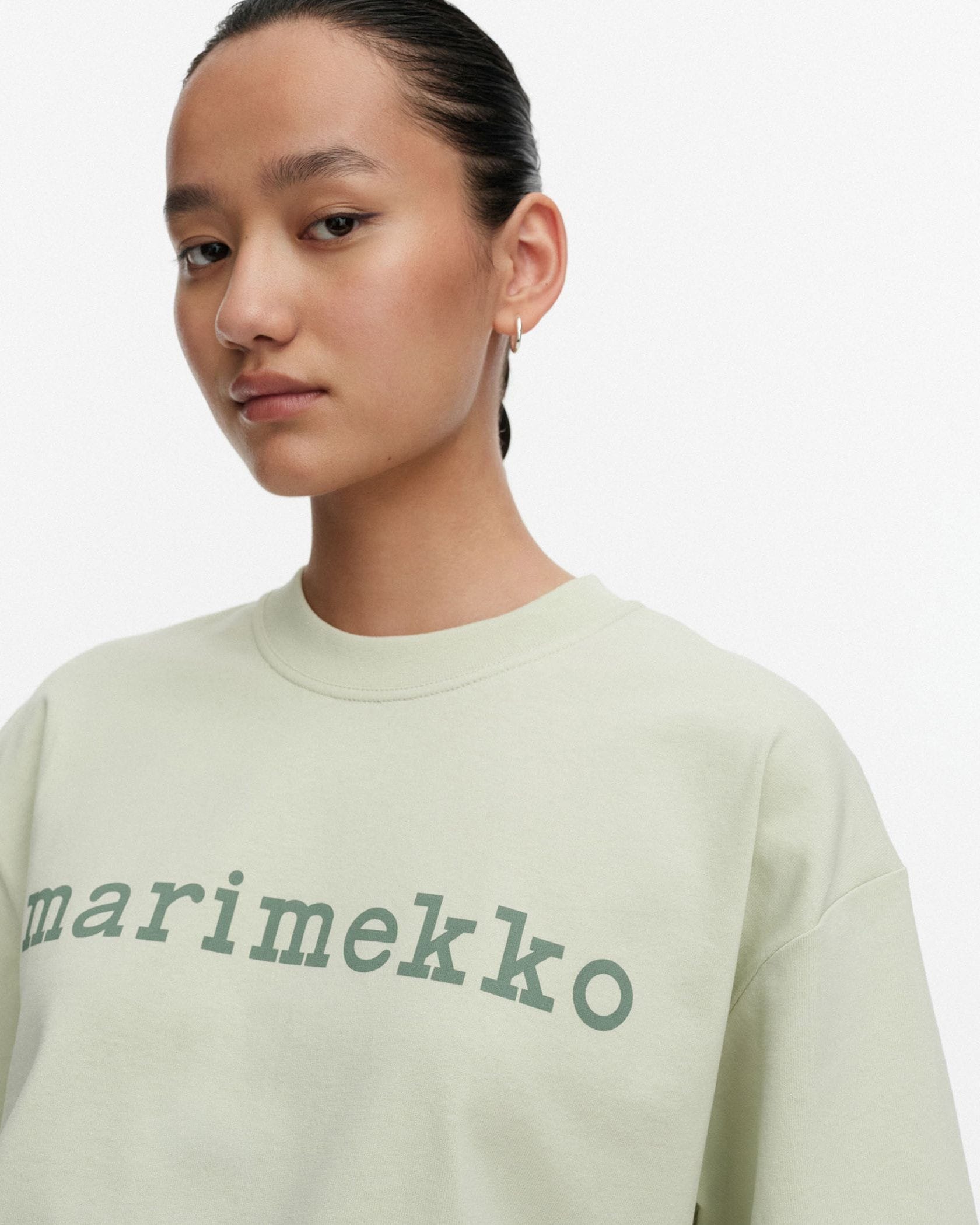 Marimekkoのロゴをあしらった、Veisto Logo PlacementのTシャツです。あわせるコーデを選ばないシンプルなロゴプリント柄で、1枚着はもちろんインナーとしてもお使いいただけます。トレンド感のあるオーバーサイズ仕様、ほど良くハリ感のあるコットン100%素材でシルエットもきれいです。