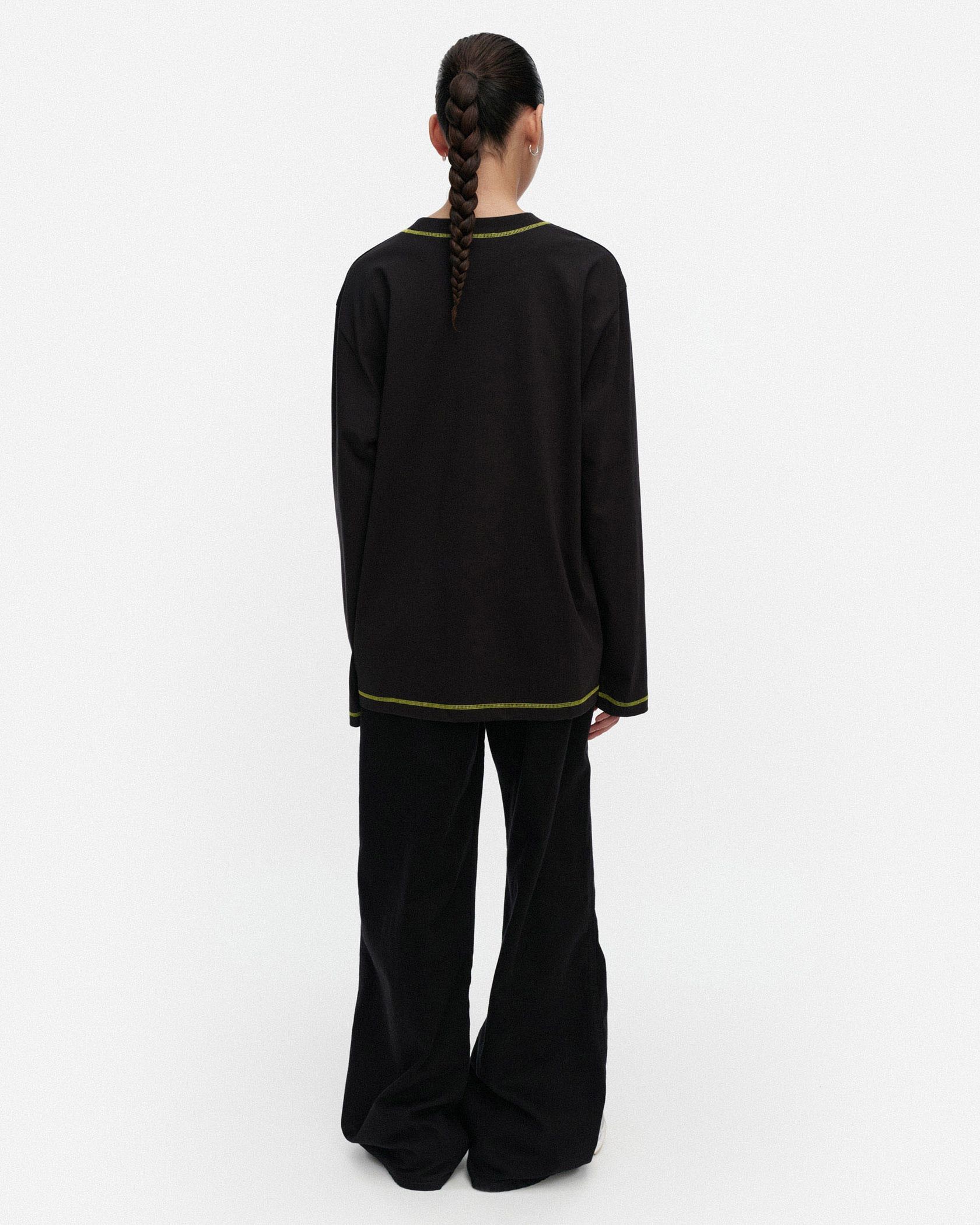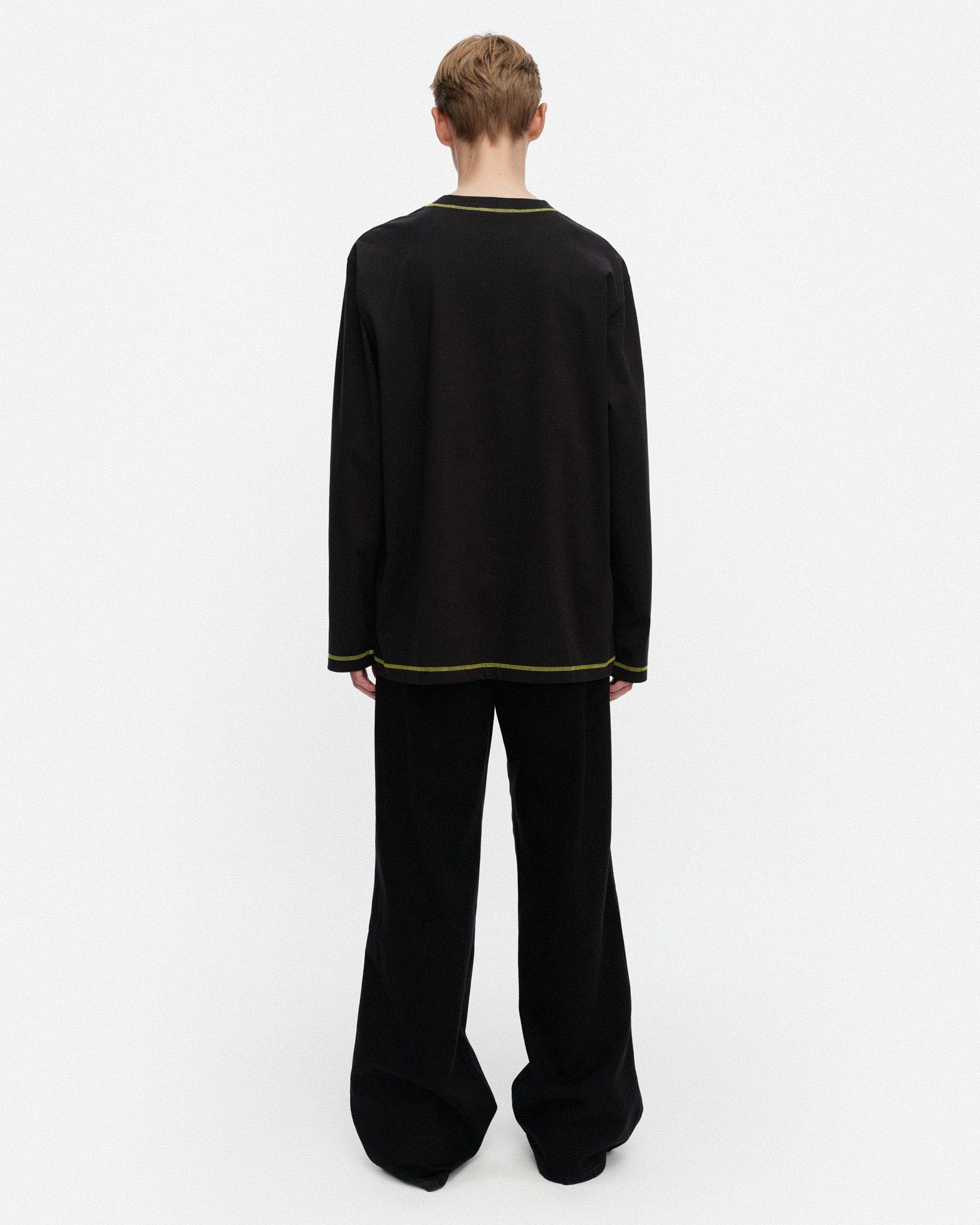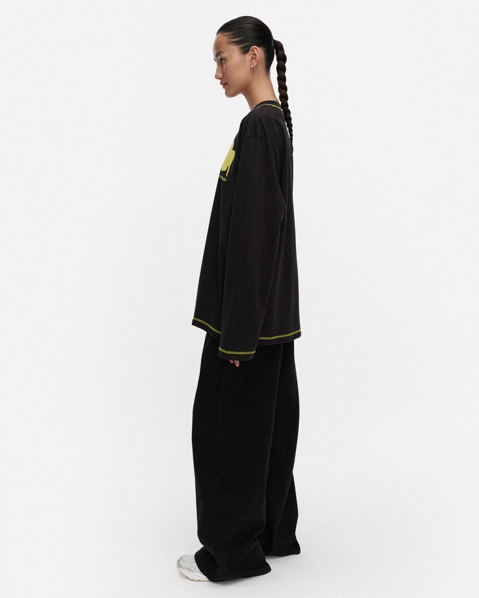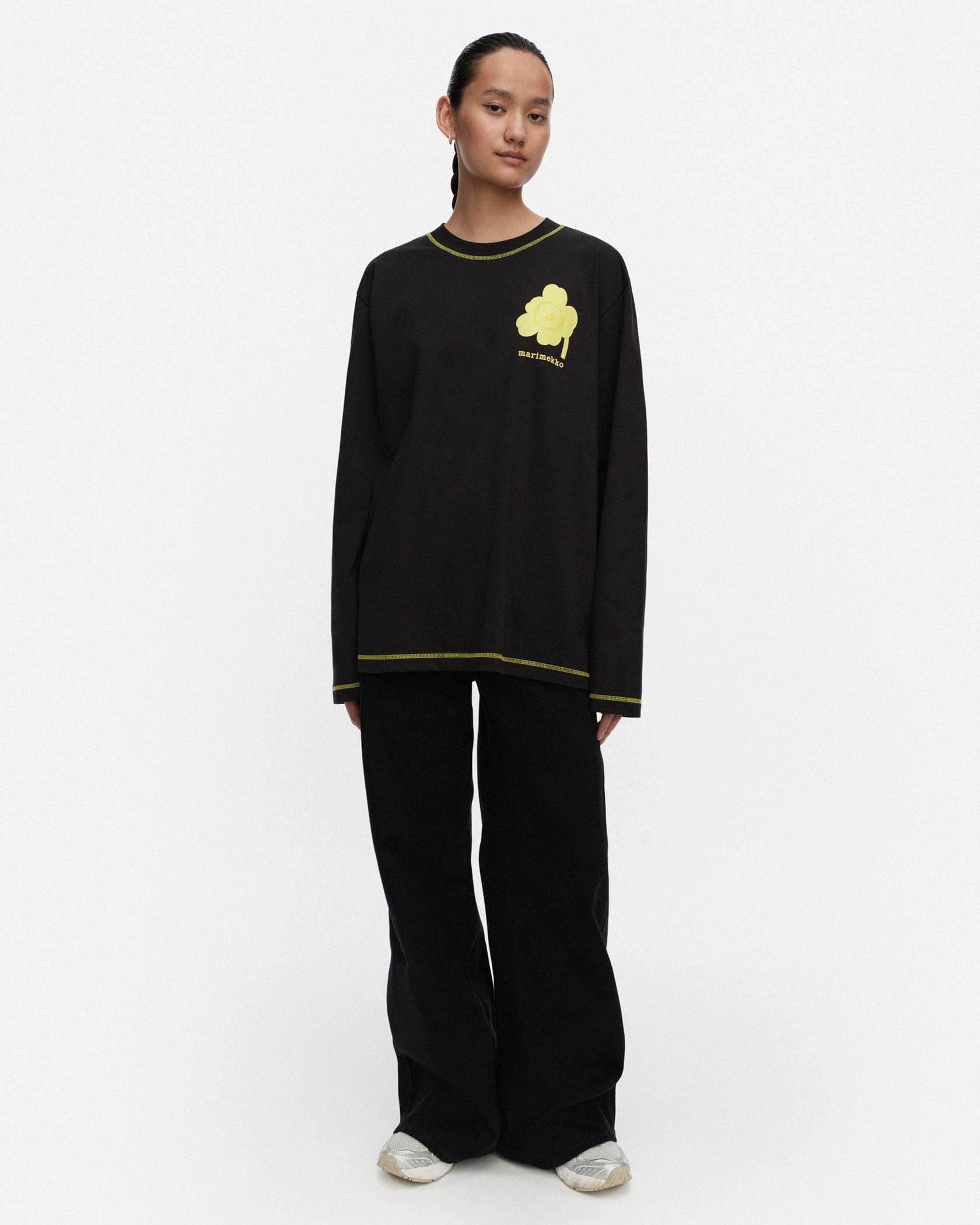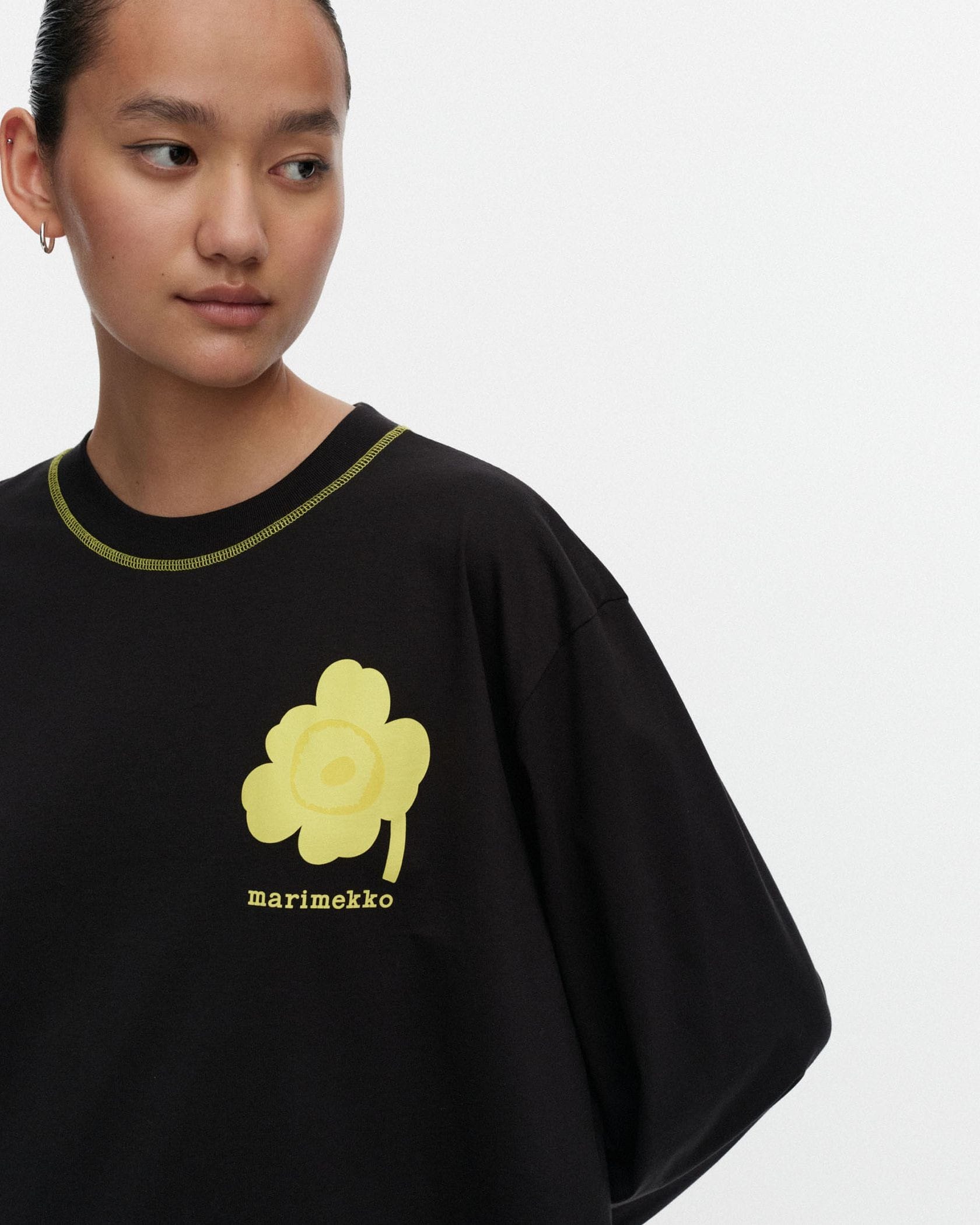 ビビッドなUnikko柄をアクセントに添えたカットソー。適度なゆとりのあるシルエットで、リラックスした着心地に。シンプルなようでしっかり存在感を演出できる一枚です。