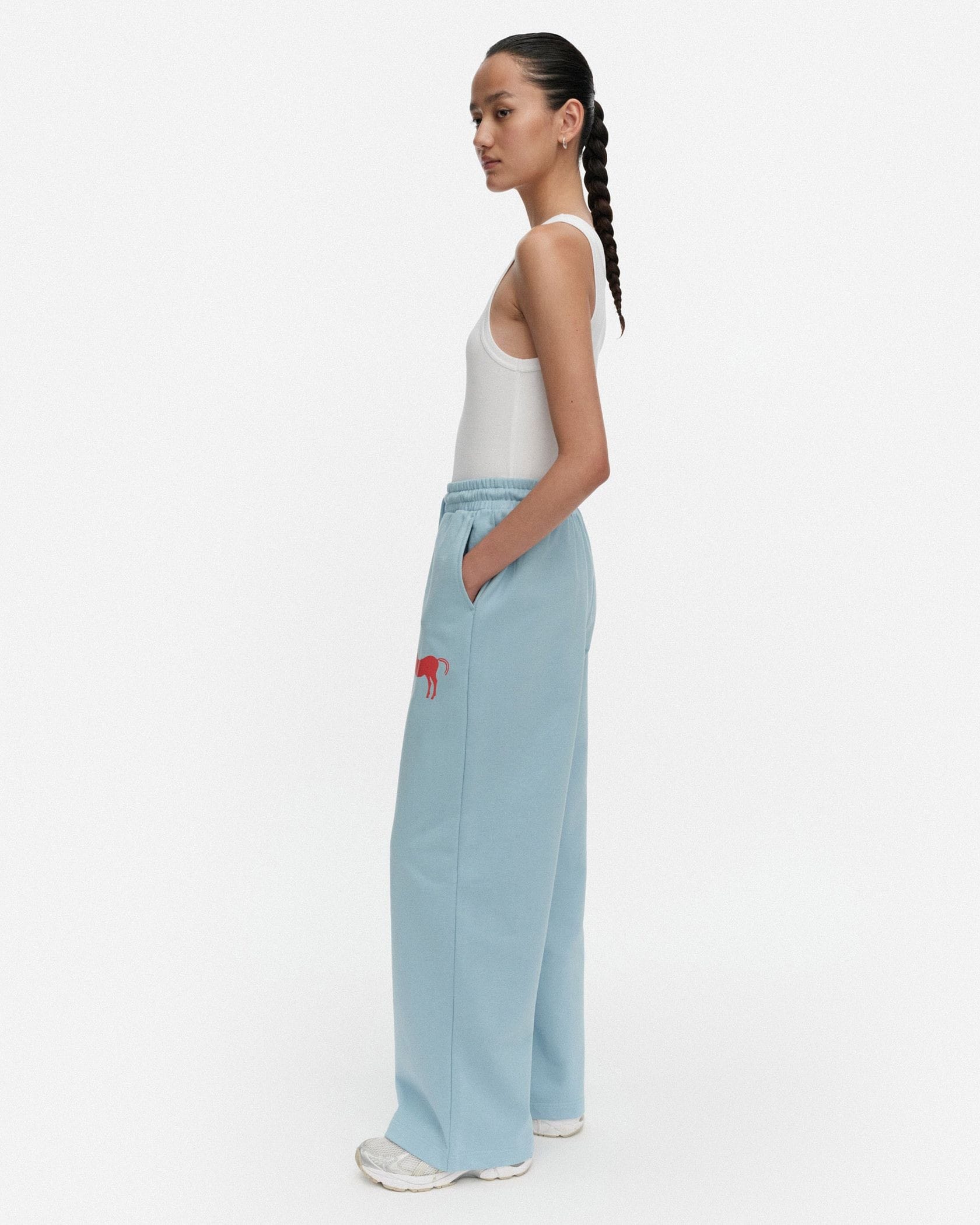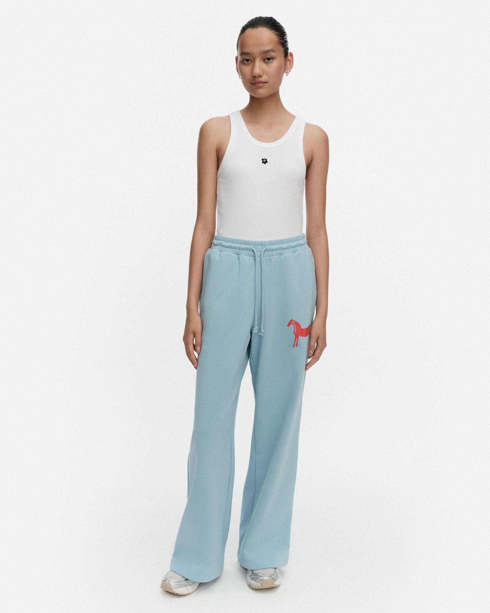 馬のワンポイントや後ろのロゴでエッジを効かせたスウェットパンツ。きれいなカラーも相まって、とびきりチャーミングなカジュアルスタイルを楽しめます。ゆとりのあるシルエットで穿き心地が良いのも魅力的。