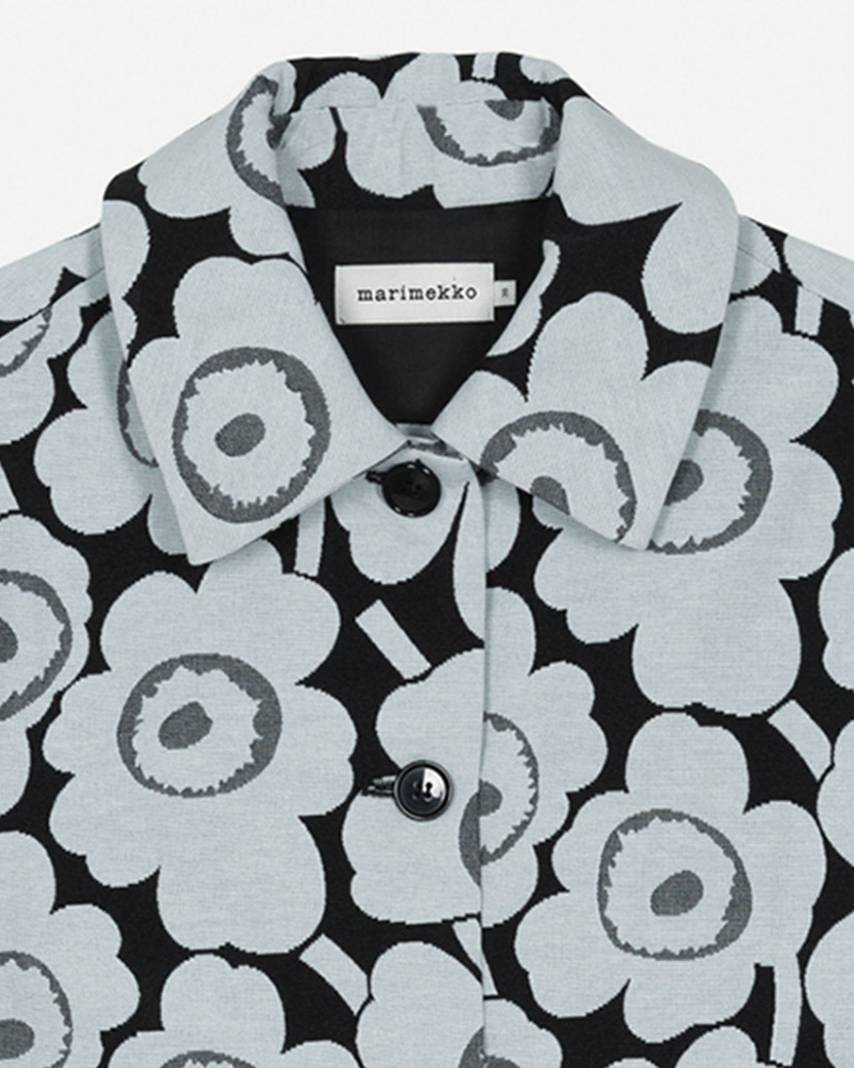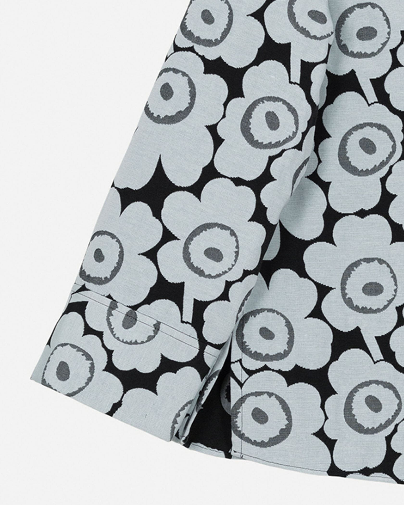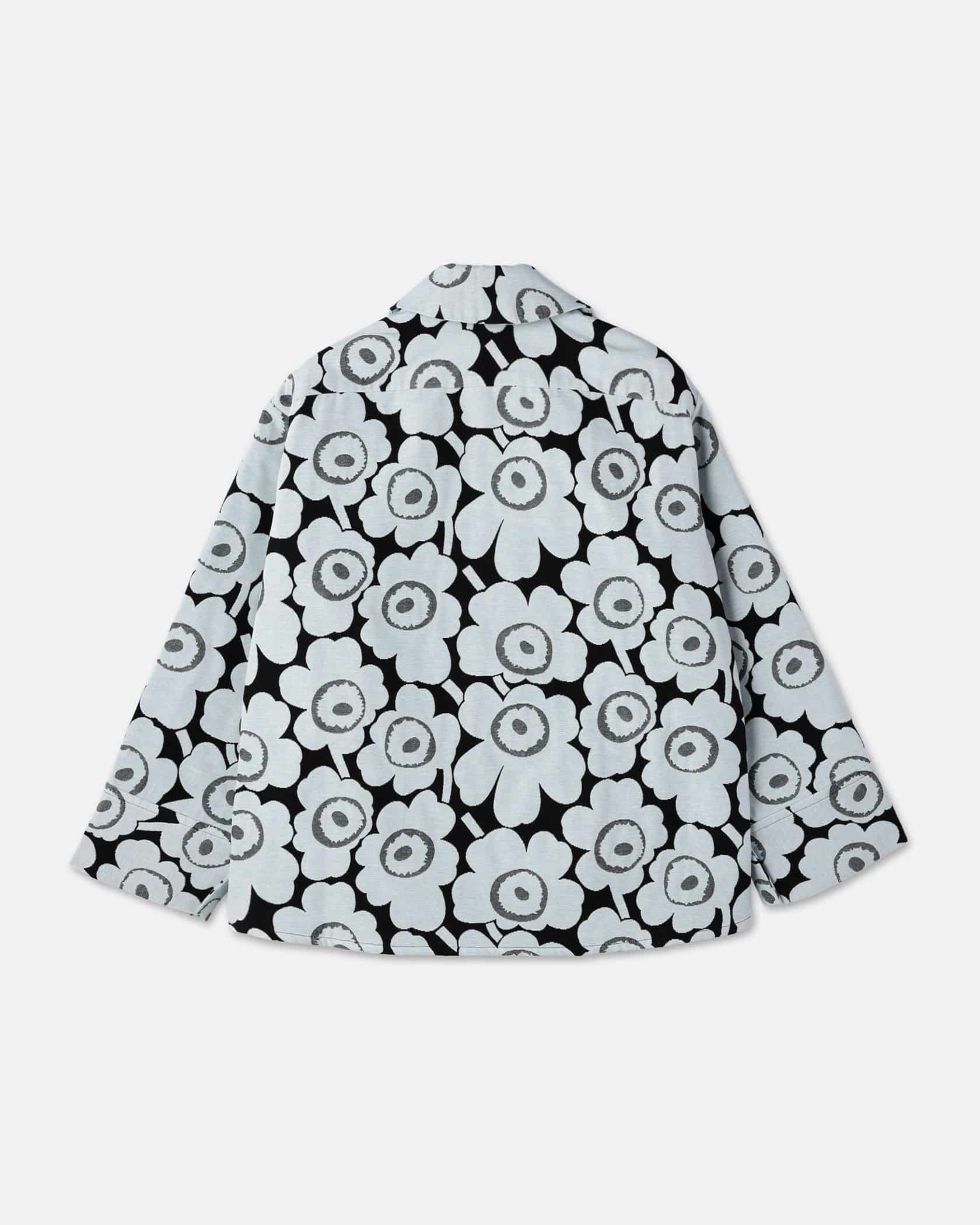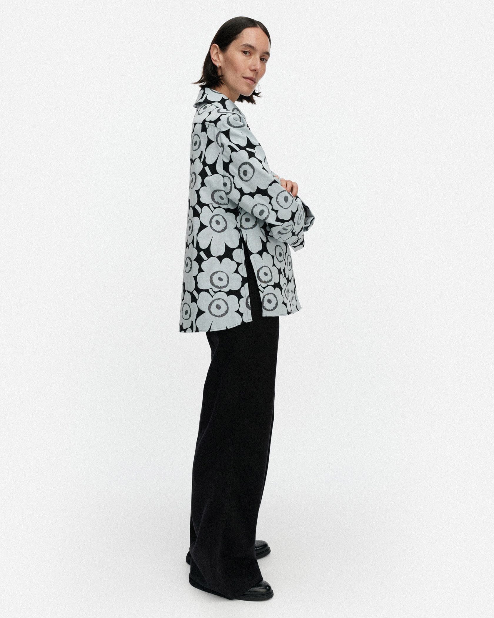 Unikko柄モチーフが特徴のボタンアップシャツ。オーバーサイズのストレートフィットがモダンなシルエット。大きなスリット入りのサイドシームの裾、大きな襟、バックヨークのシームがスタイリッシュなデザインポイント。いつもの着こなしにプラスして華やかなコーディネートが実現するアイテムです。
