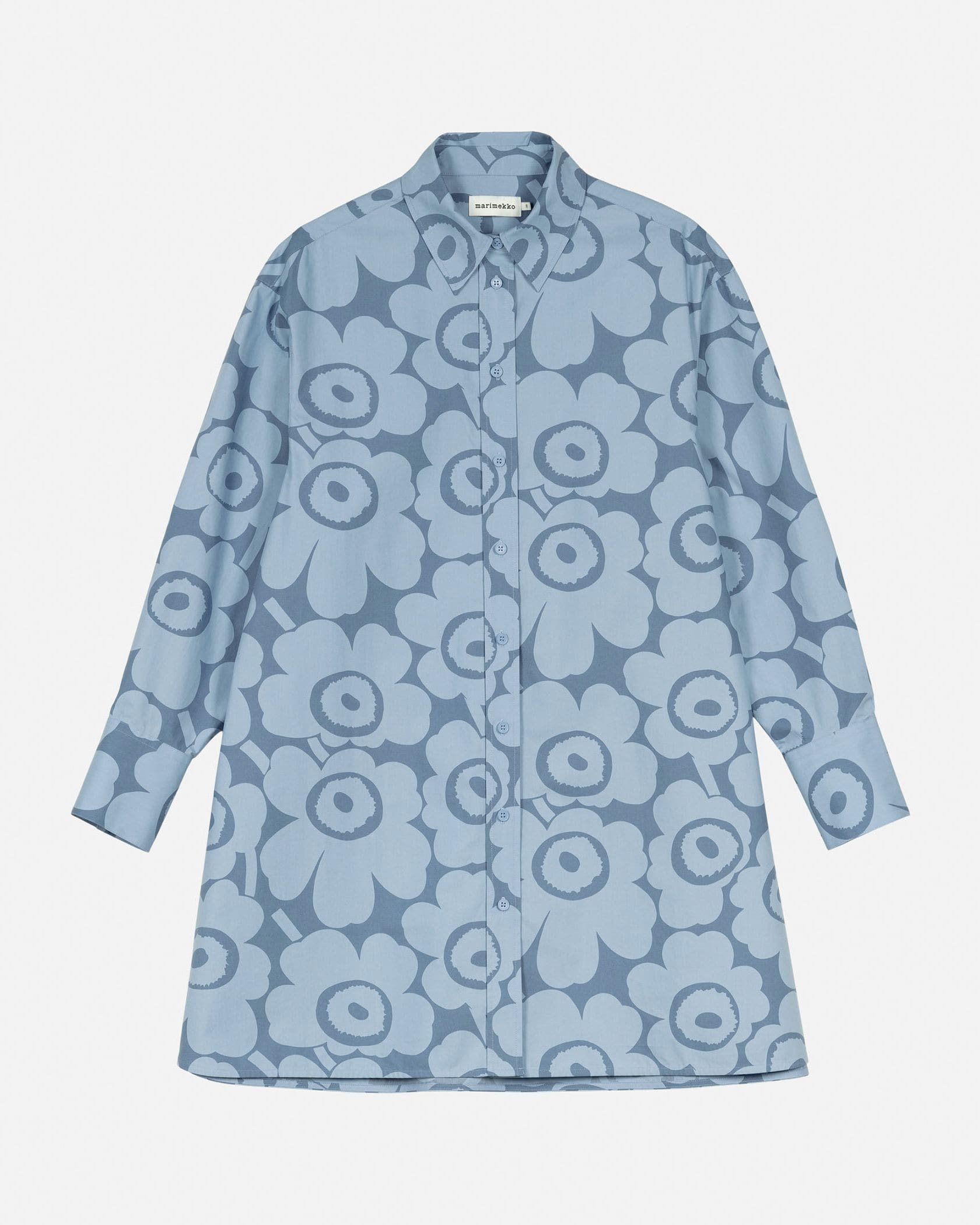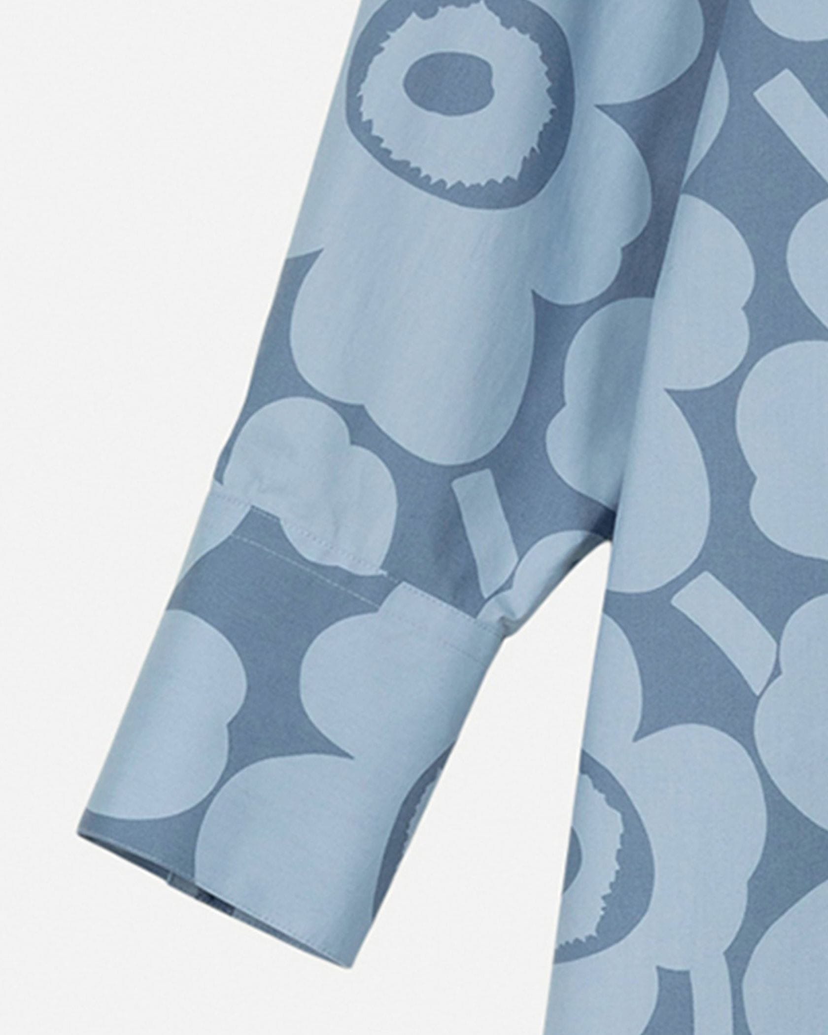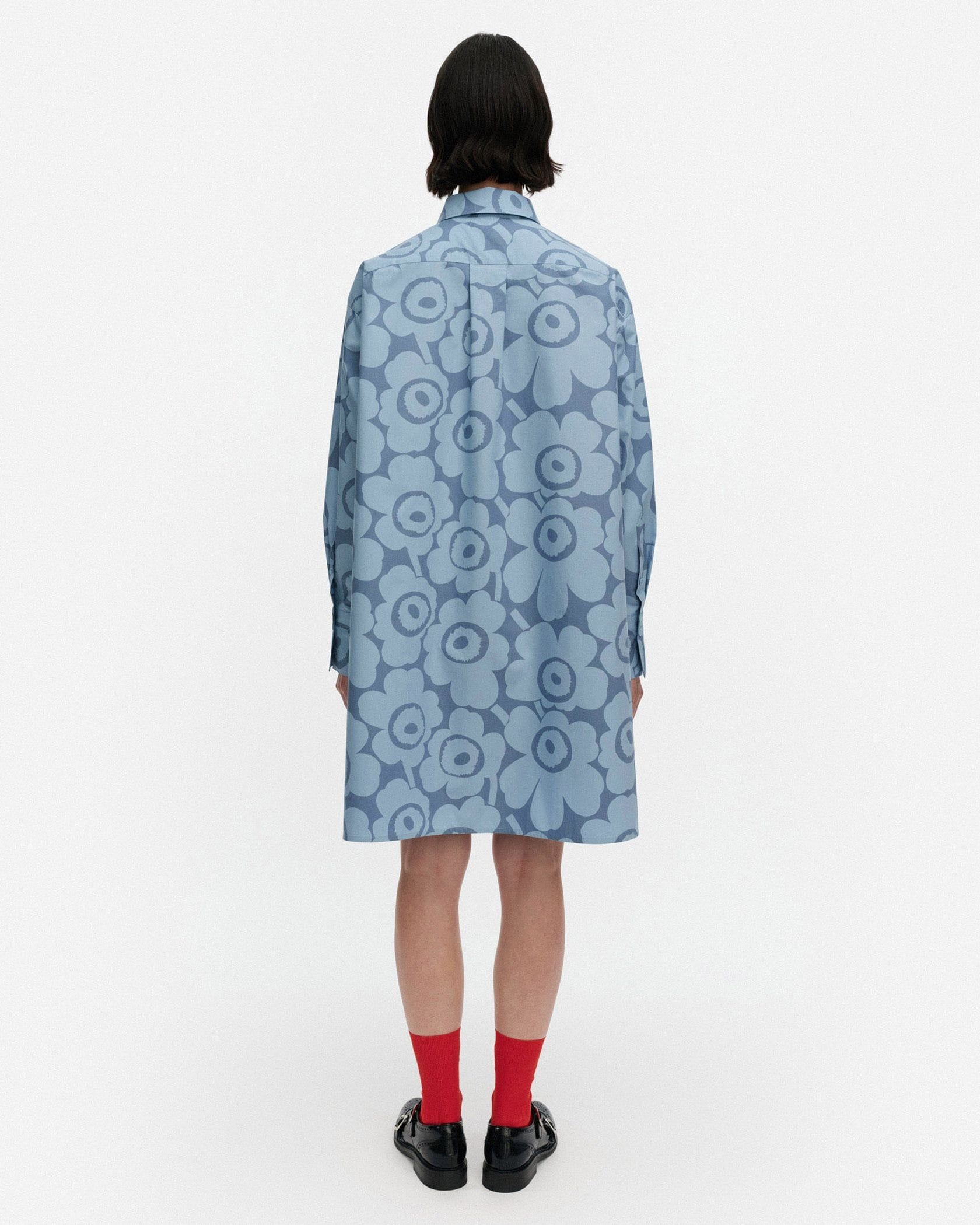 Unikko柄の総柄で仕上げた華やぎムード満点のシャツワンピース。ミニワンピースとしてシンプルに着るのはもちろん、オーバーシャツとしてボトムとレイヤードするのもおすすめです。