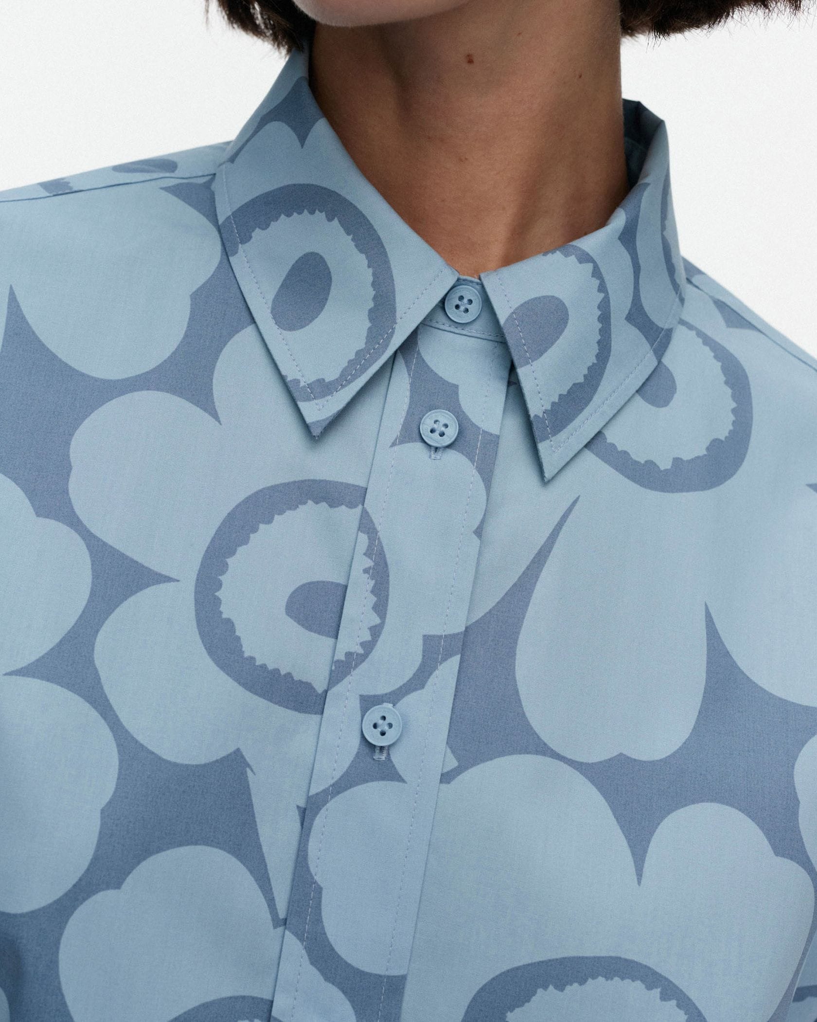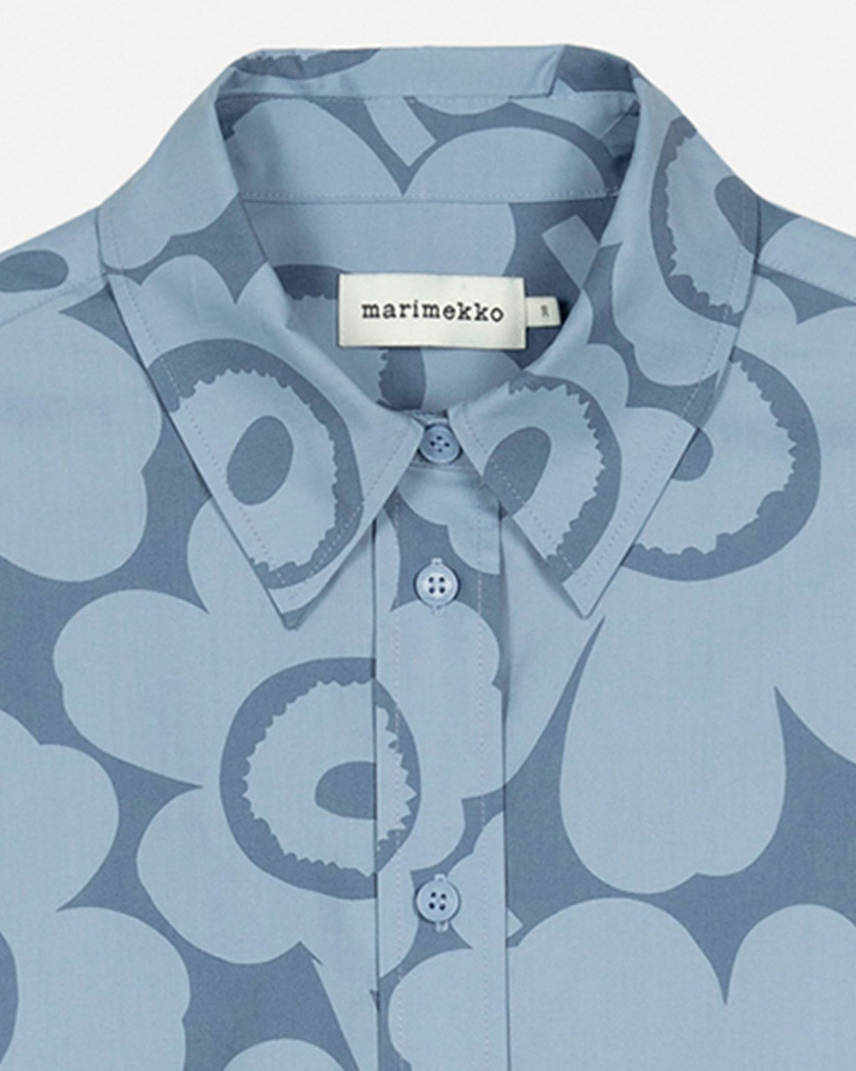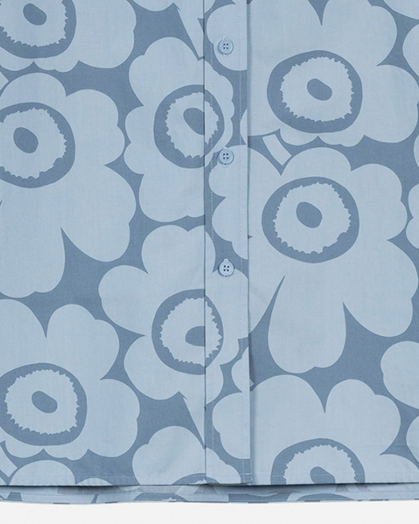 Unikko柄の総柄で仕上げた華やぎムード満点のシャツワンピース。ミニワンピースとしてシンプルに着るのはもちろん、オーバーシャツとしてボトムとレイヤードするのもおすすめです。
