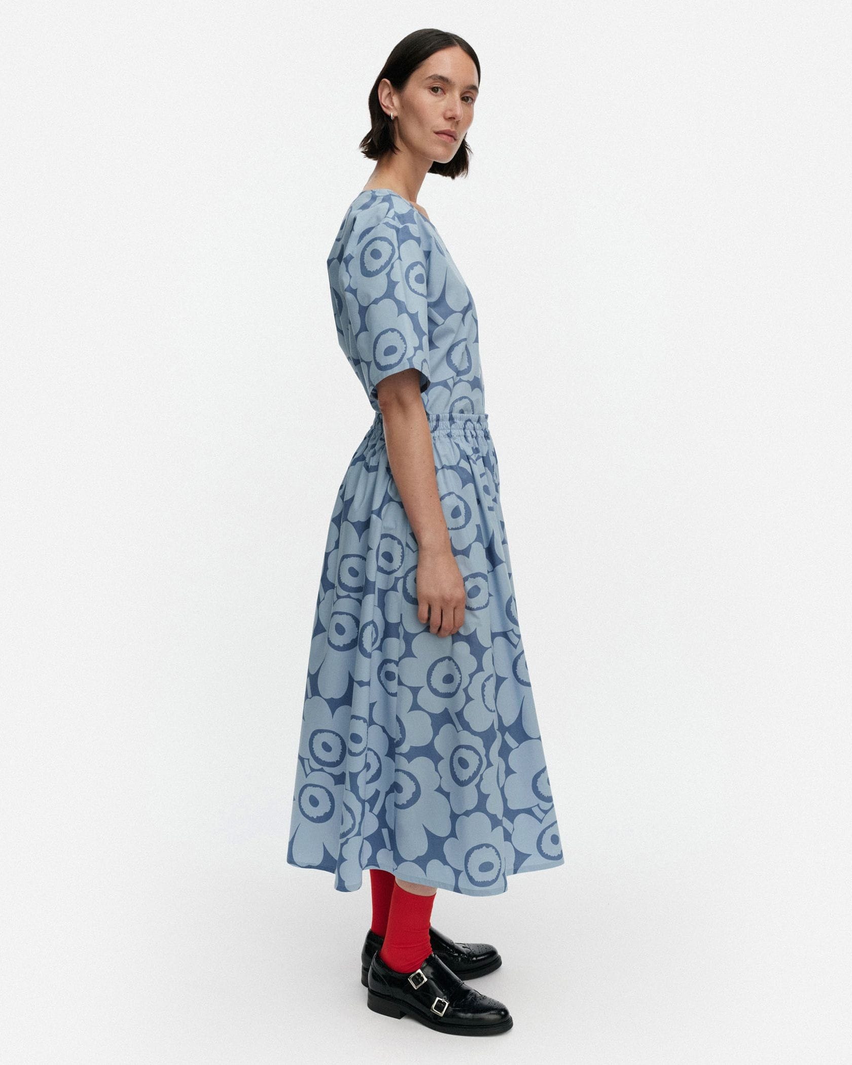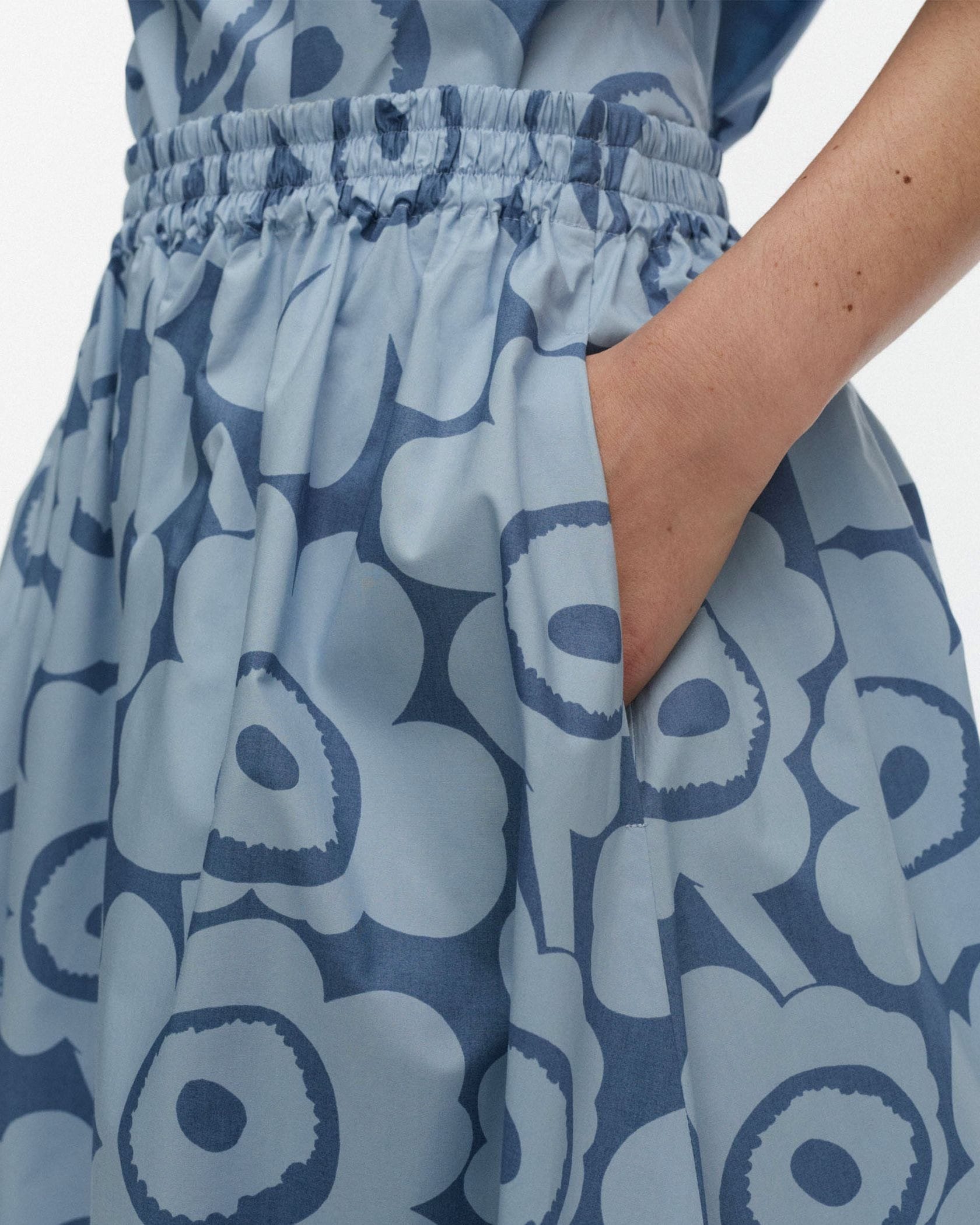 いつもの着こなしがロマンティックに一新するUnikko柄のフレアスカート。きれいめなブラウスはもちろん、Tシャツと合わせてカジュアルダウンさせても小粋なスタイリングに。さらりとした肌ざわりも快適な一枚。