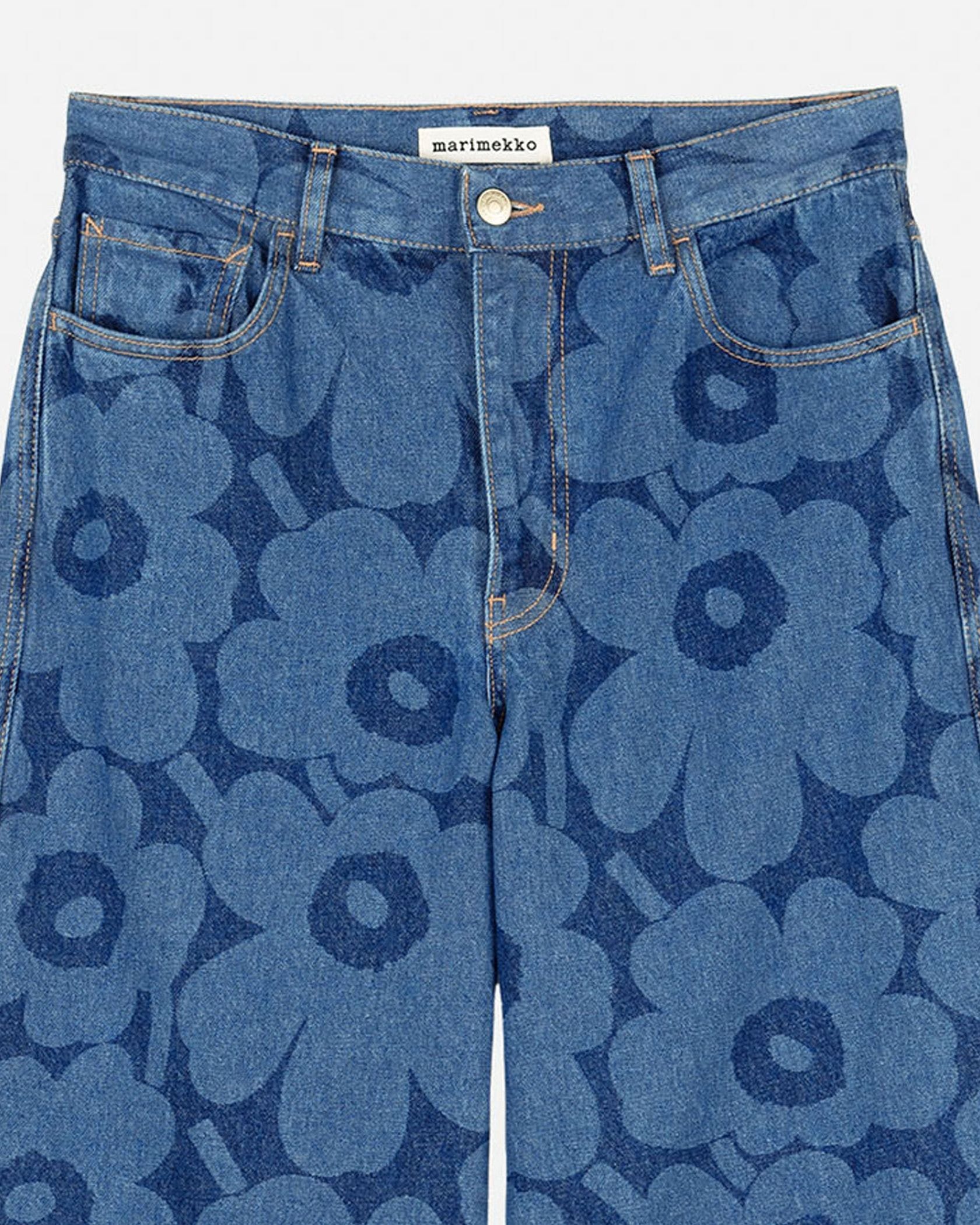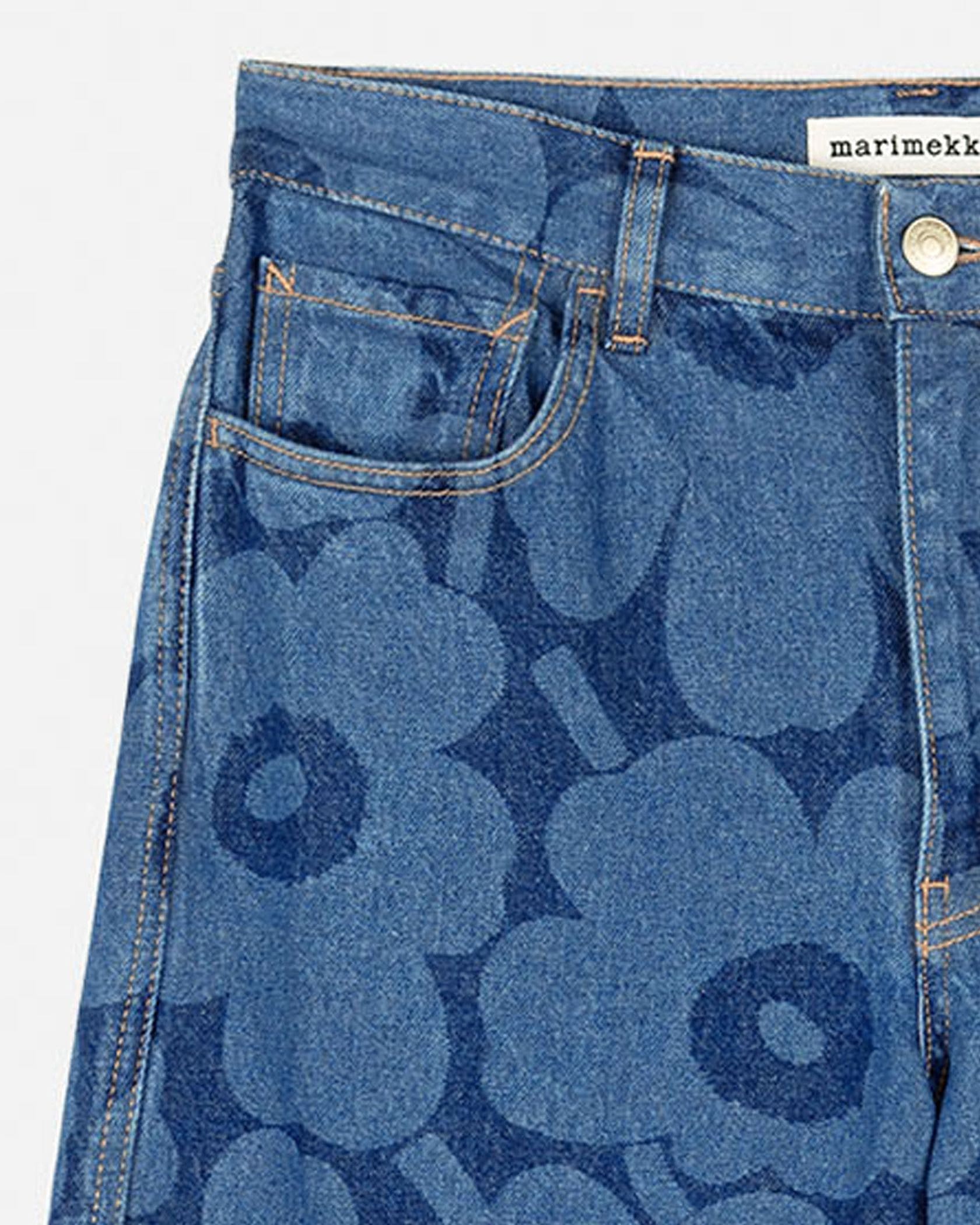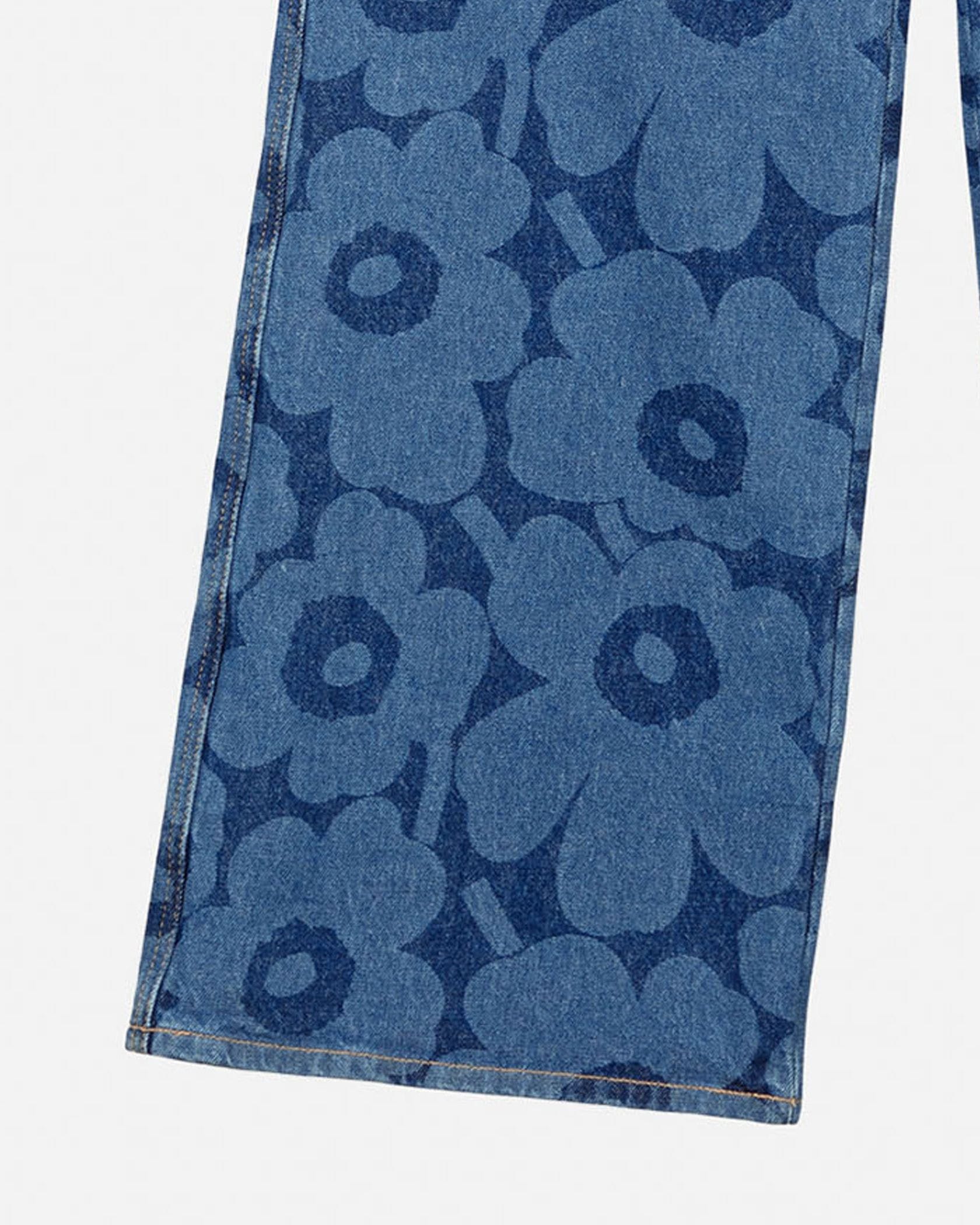 いつもの着こなしがぐっとチャーミングに一新するUnikko柄デニムパンツ。ゆとりのあるストレートシルエットで、抜け感のある着こなしに。シンプルなトップスと合わせて、パンツの個性を引き立たせるのもおすすめです。