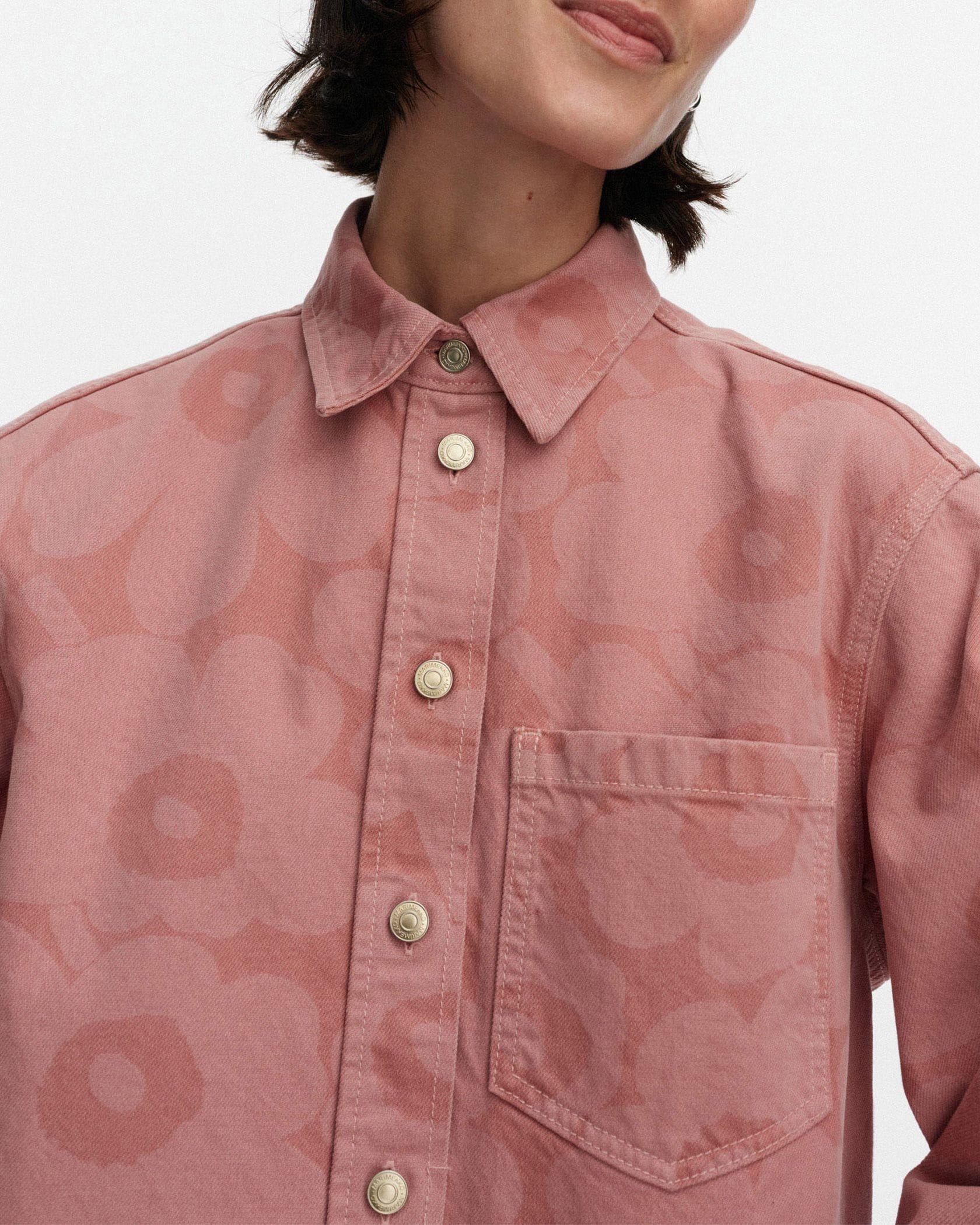 一日中ハッピームードで過ごせそうなUnikko柄のシャツ。適度なゆとりがあり、インとのレイヤードも楽々です。さらりと羽織るだけで、さりげない存在感を発揮する一枚。
