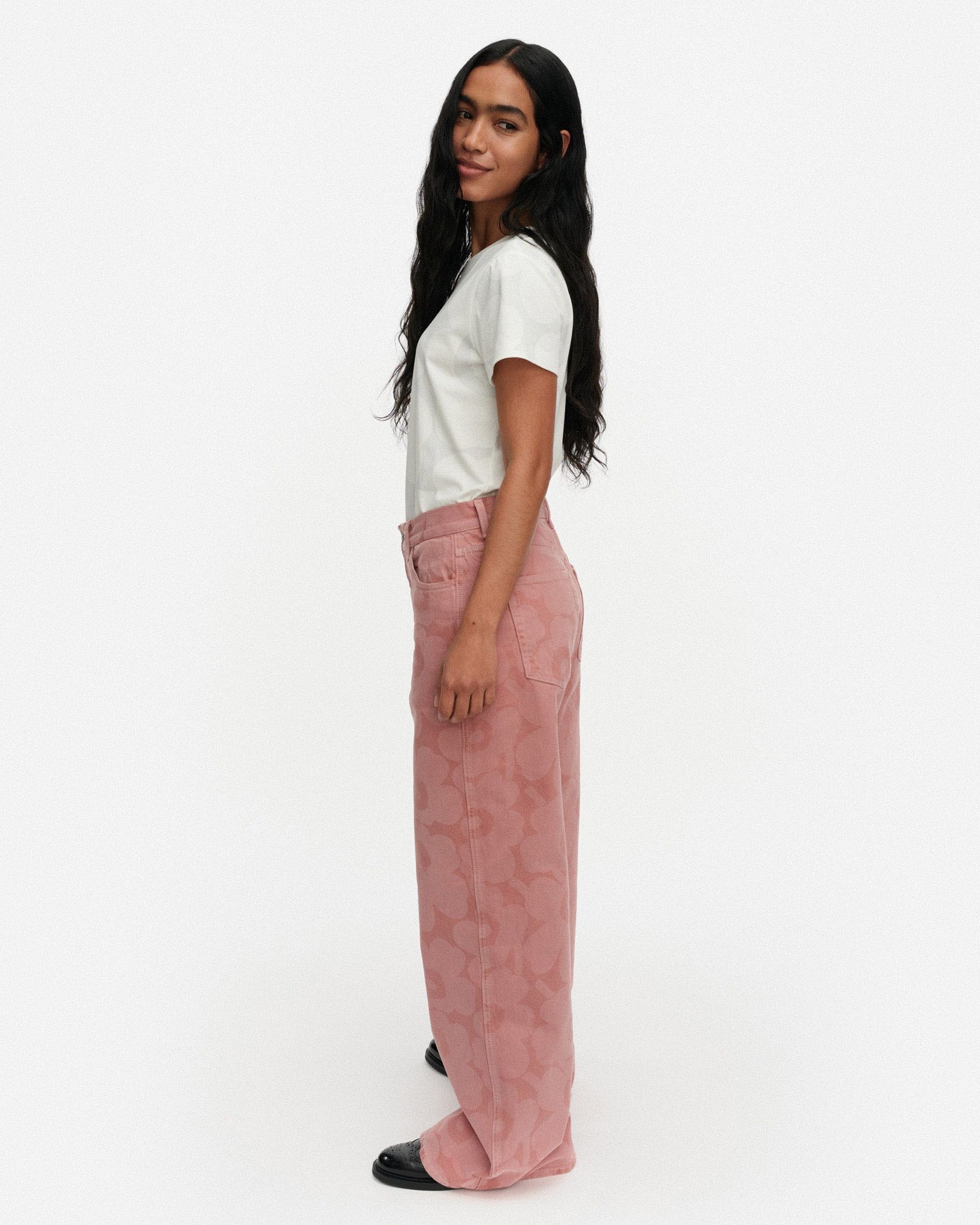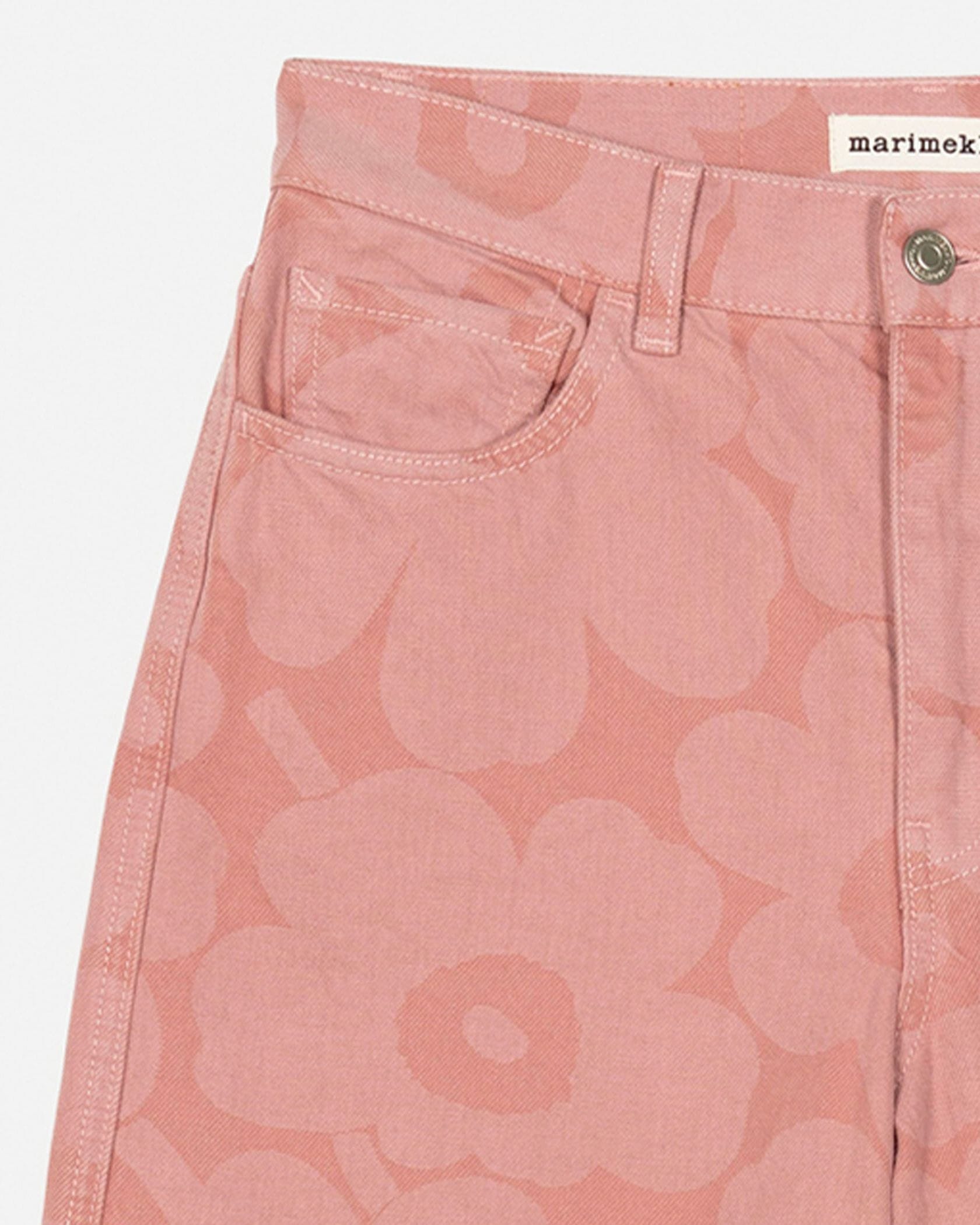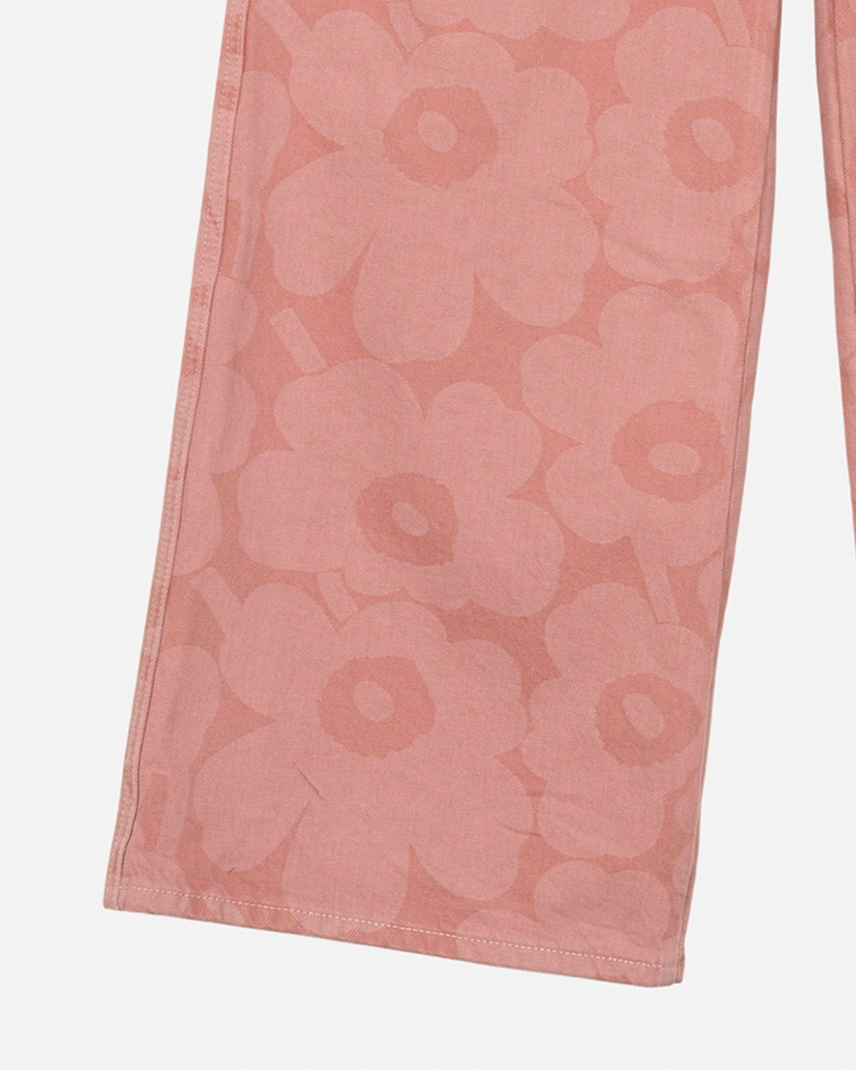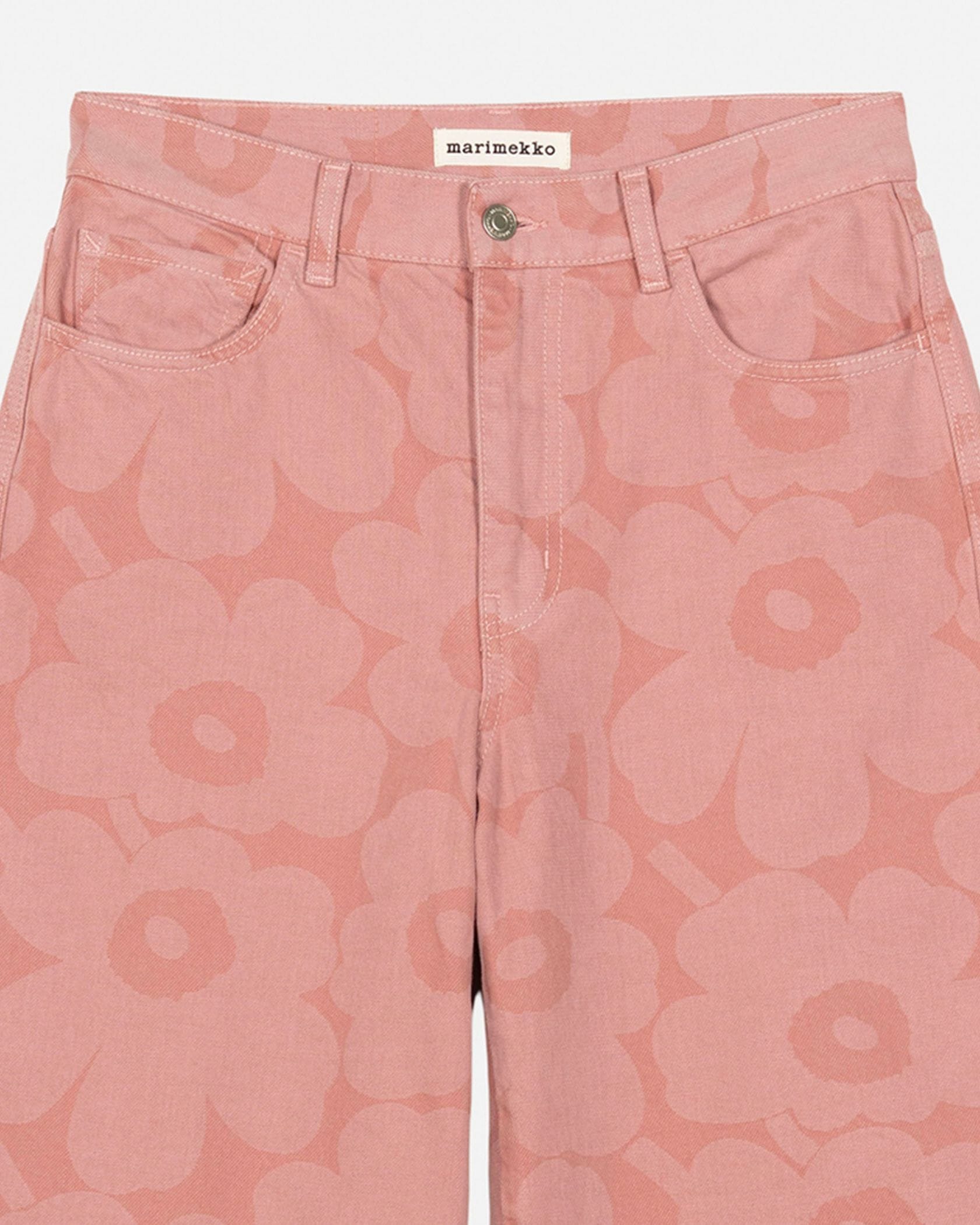 いつもの着こなしがぐっとチャーミングに一新するUnikko柄デニムパンツ。ワイドなシルエットが、小粋な抜け感を演出するポイントに。シンプルなトップスと合わせて、パンツの個性を引き立たせるのもおすすめです。
