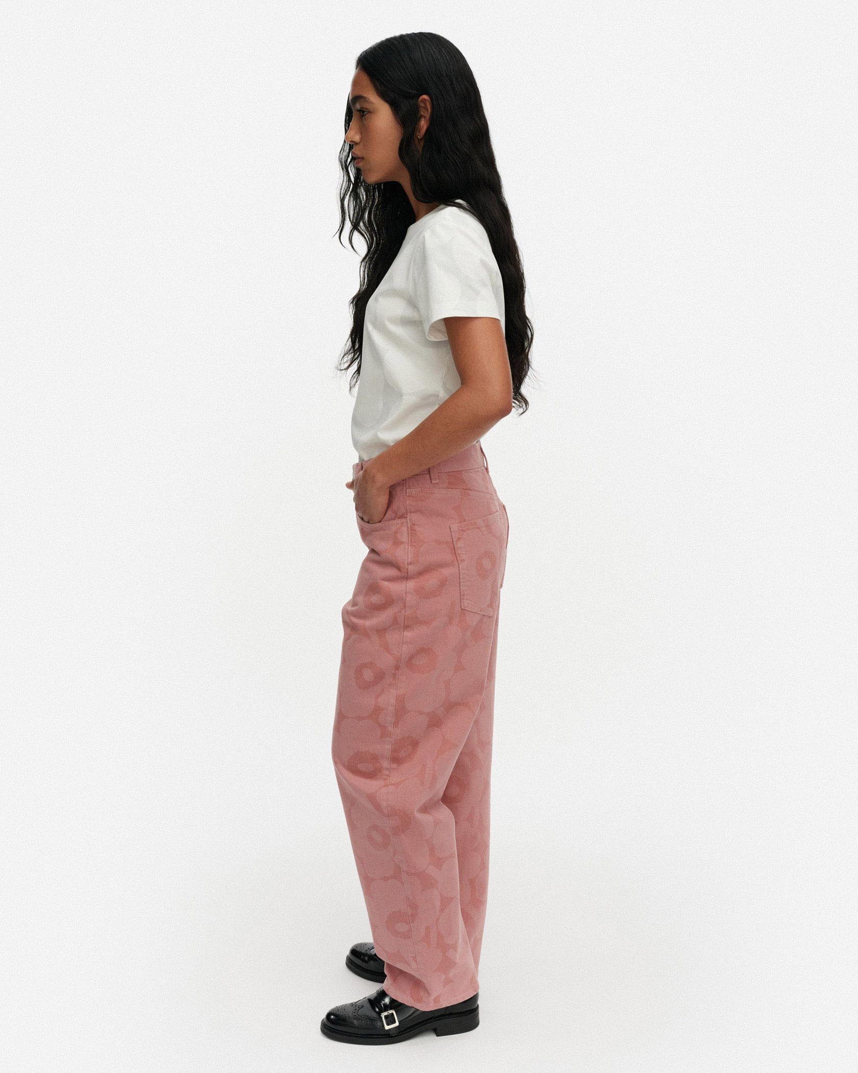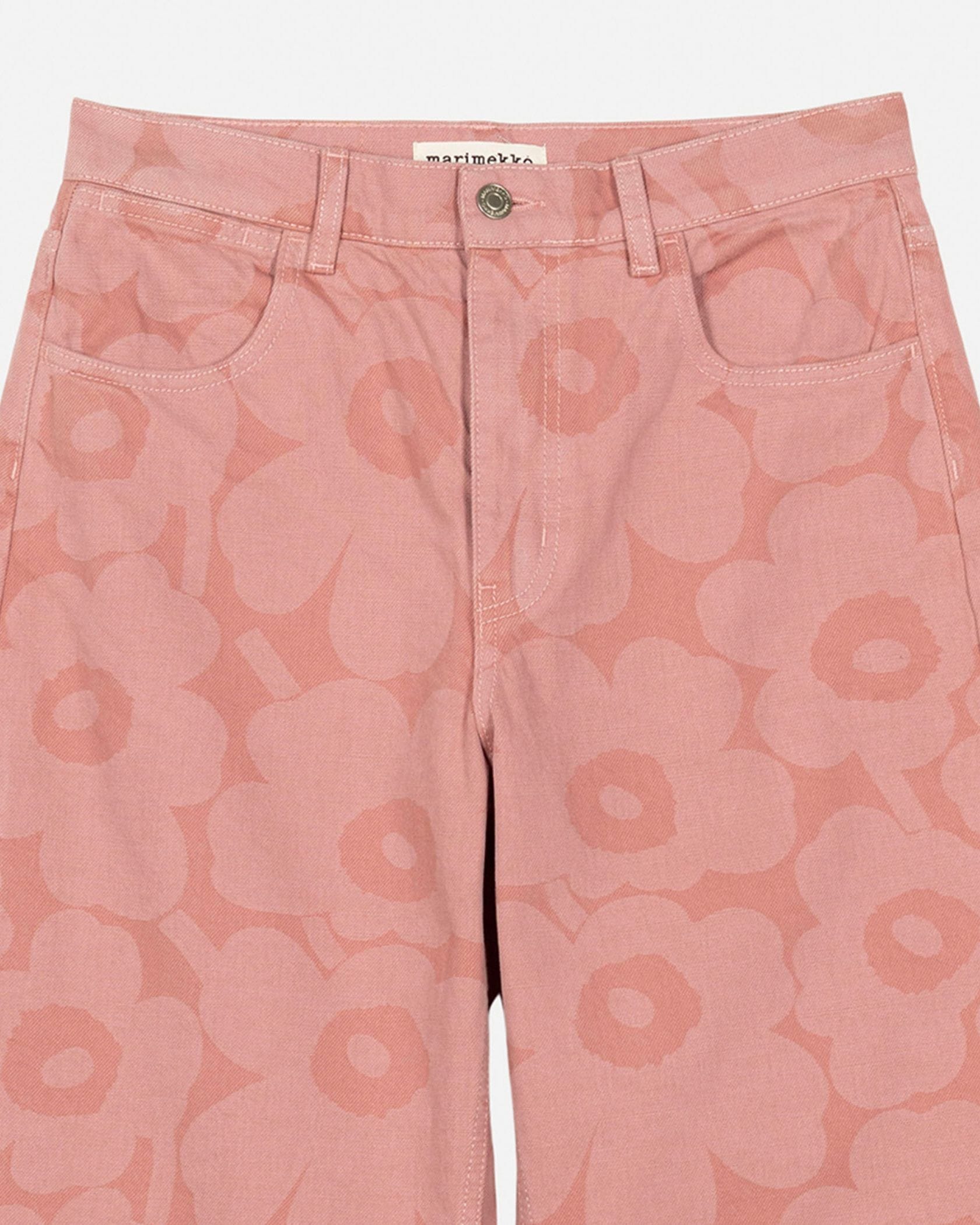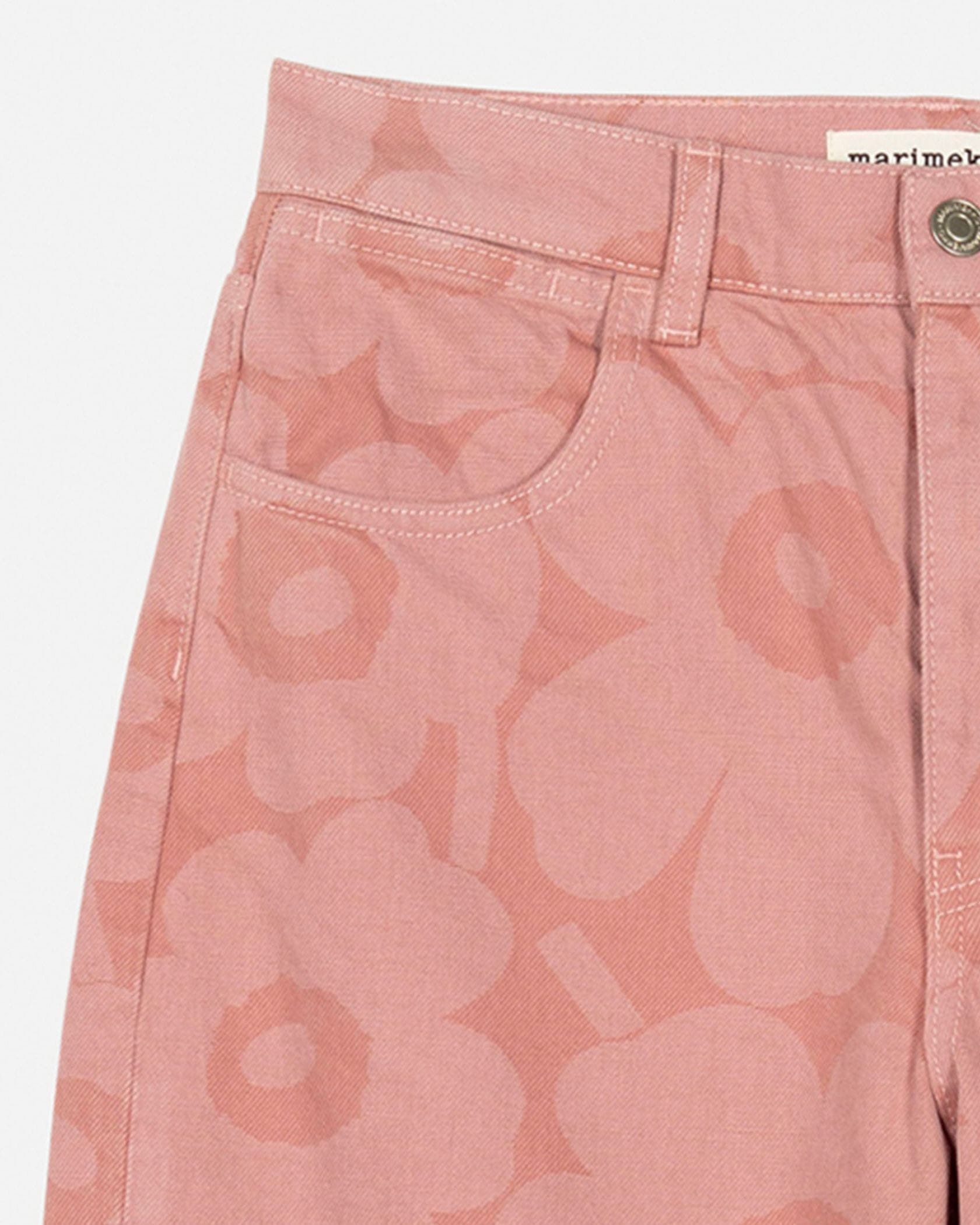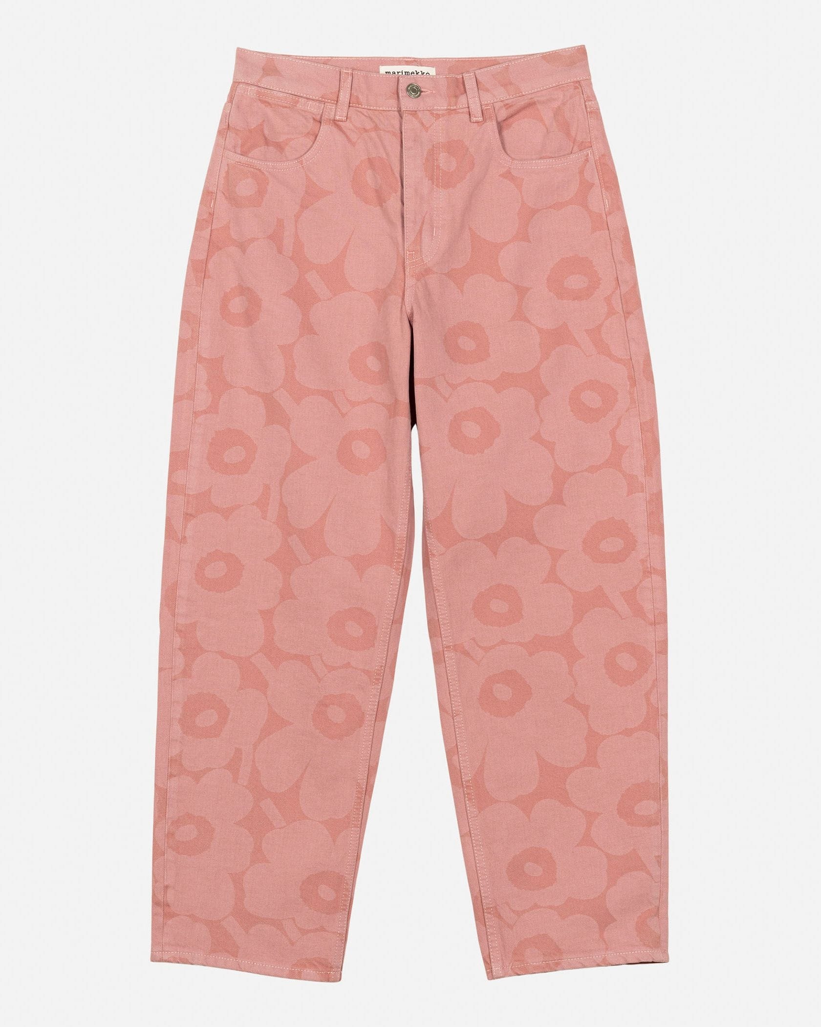一日中ハッピームードで過ごせそうなUnikko柄のパンツ。緩やかなカーブを描くバレルシルエットで、スタイルアップ効果も抜群です。ベーシックなトップスとのスタイリングもぐっと新鮮に仕上げてくれる一本。
