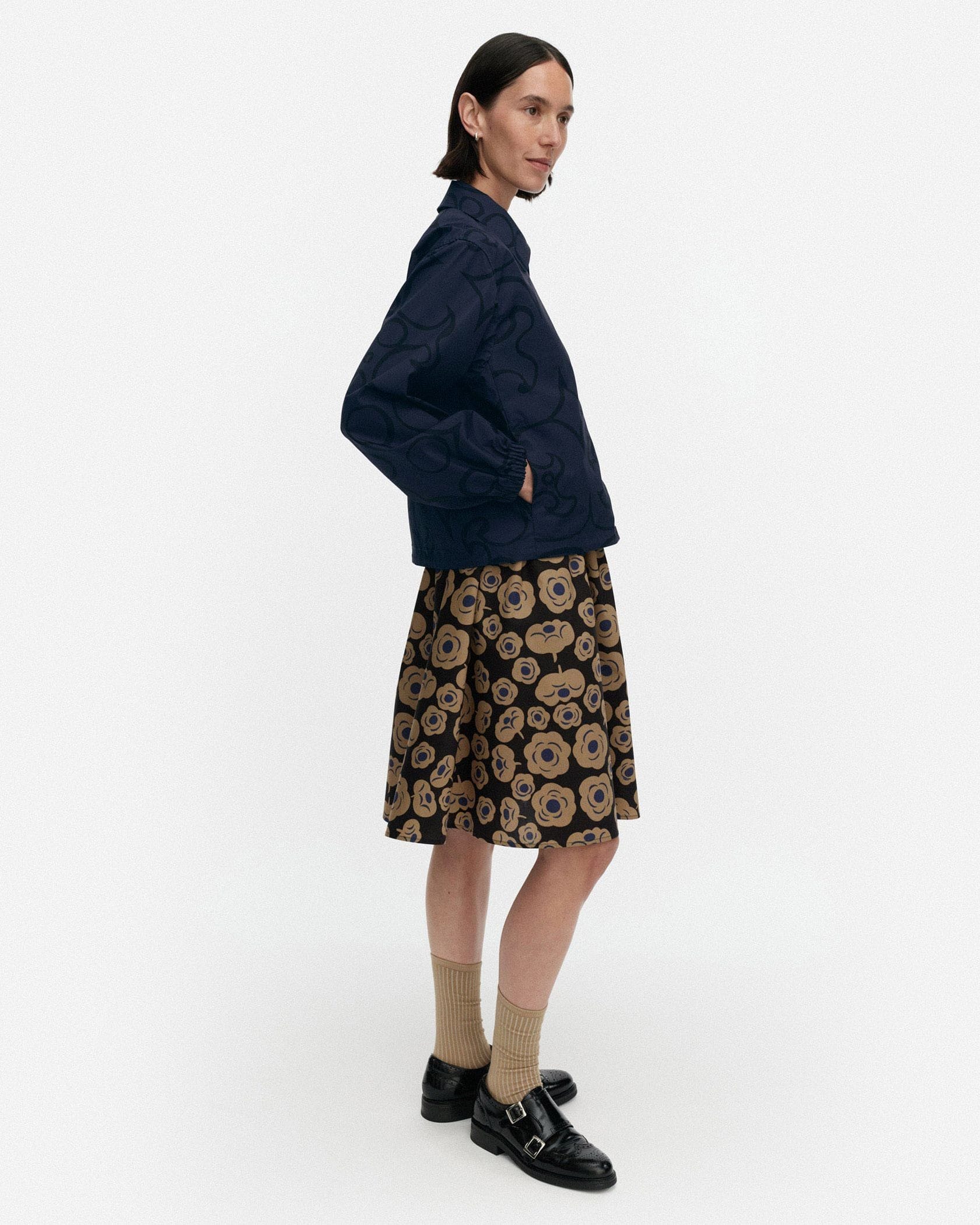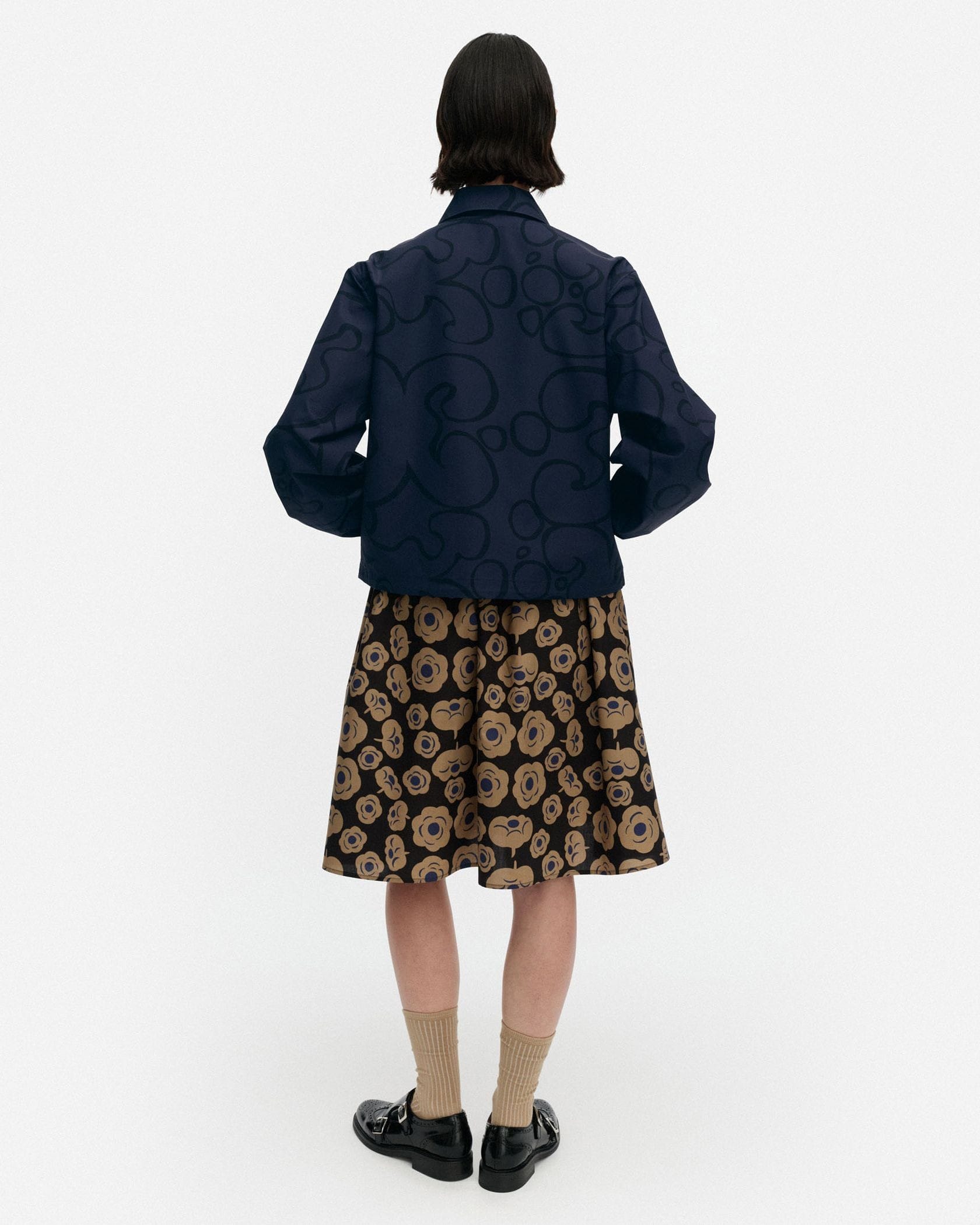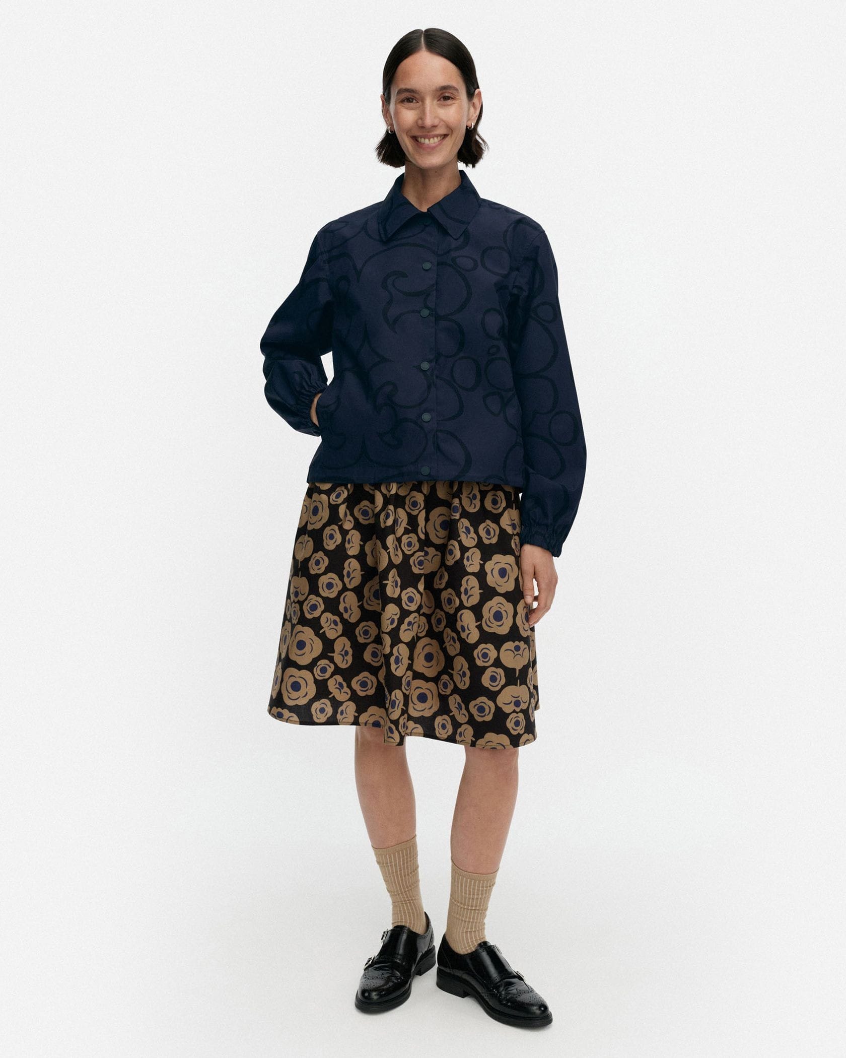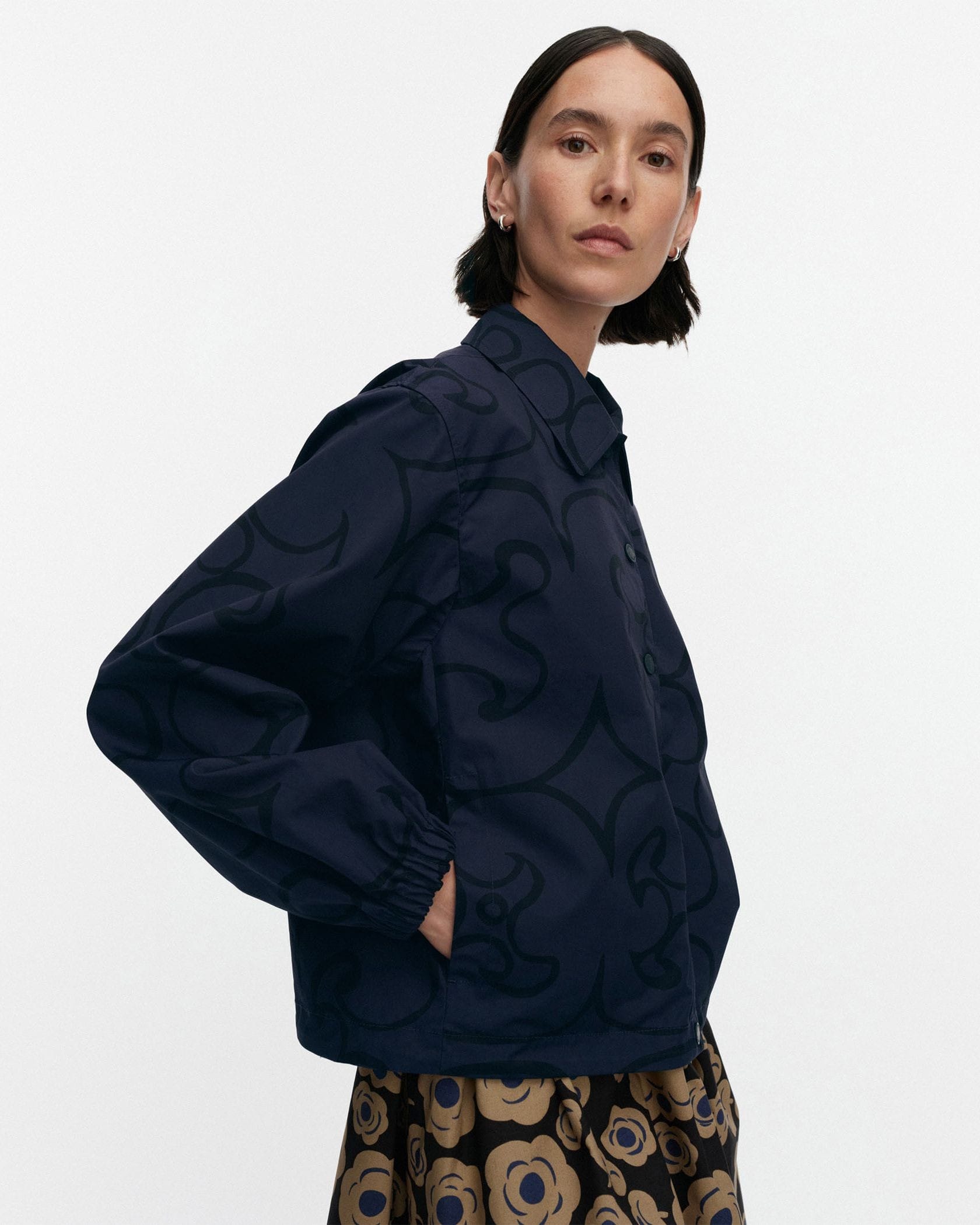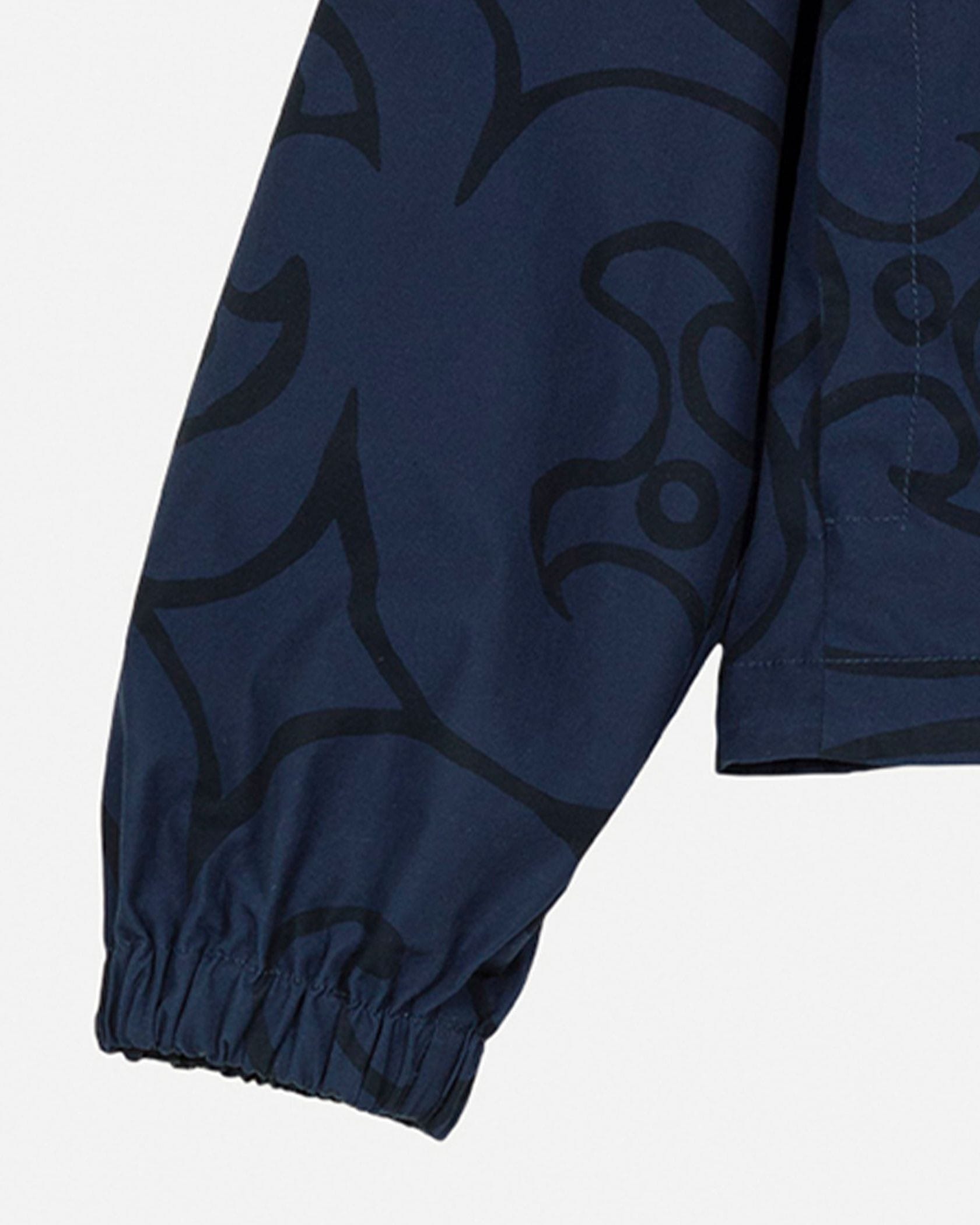 Keidas柄のモチーフがエレガントなムードのショート丈コート。春夏シーズンに最適な軽やかなコットン生地で仕立てました。ゆったりとしたフィット感がモダンなシルエット。袖口は、クシュっとしたゴムギャザーが愛らしいデザインアクセント。落ち着いたカラートーンで様々な着こなしにマッチします。