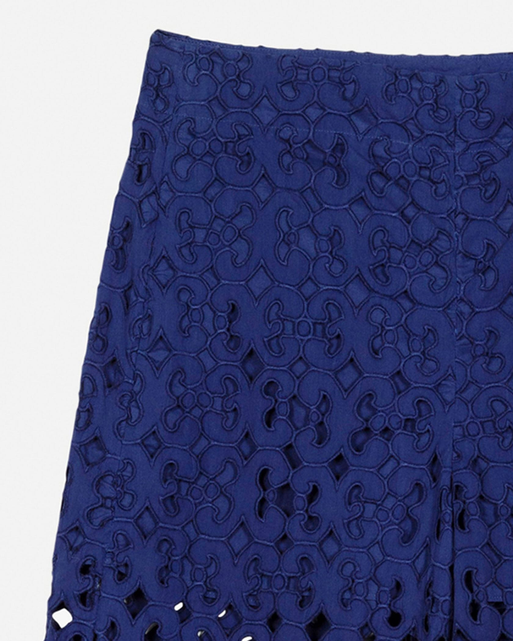 Keidasパターンを透かしデザインで表現したパンツです。裏地が半分付いており、軽やかなデザインに仕上がっています。サイドファスナー仕様、バックにはパッチポケットを1つ配置。コットン100%素材を採用しており、シーズンムード漂う旬のボトムスとして活躍するアイテムです。