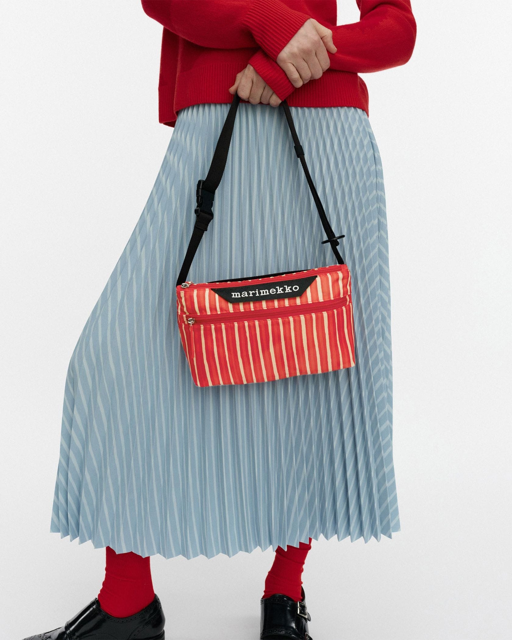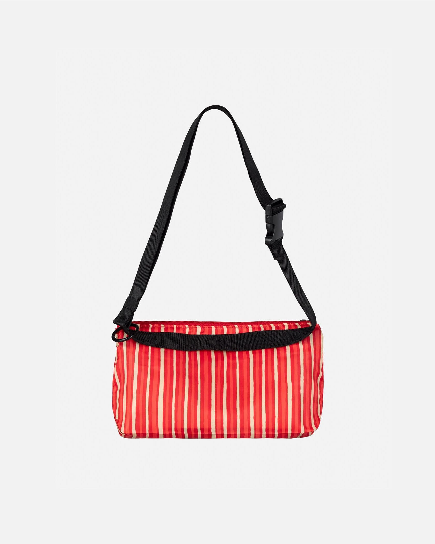 手描きのようなラインがユニークなストライプ柄のショルダーバッグ。フロント上部にはブランドロゴがスタイリッシュなデザインアクセント。ストラップ部分は着こなしに合わせて長さ調整可能。フロントと中面は、ポケット付きで使い勝手も抜群。ちょっとしたお出かけや旅行など様々なシーンにマッチするアイテムです。