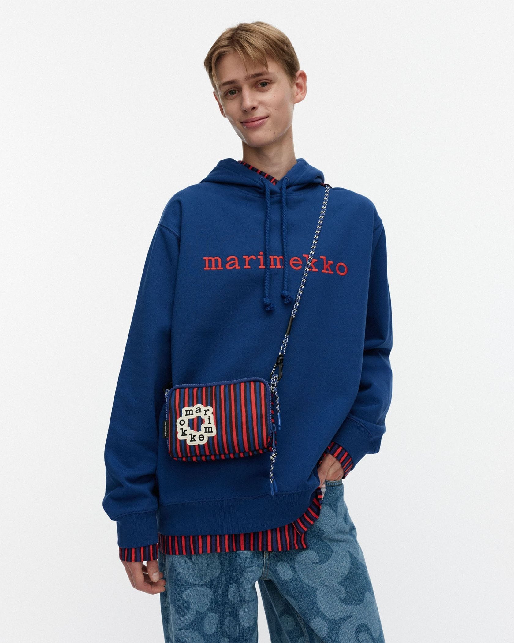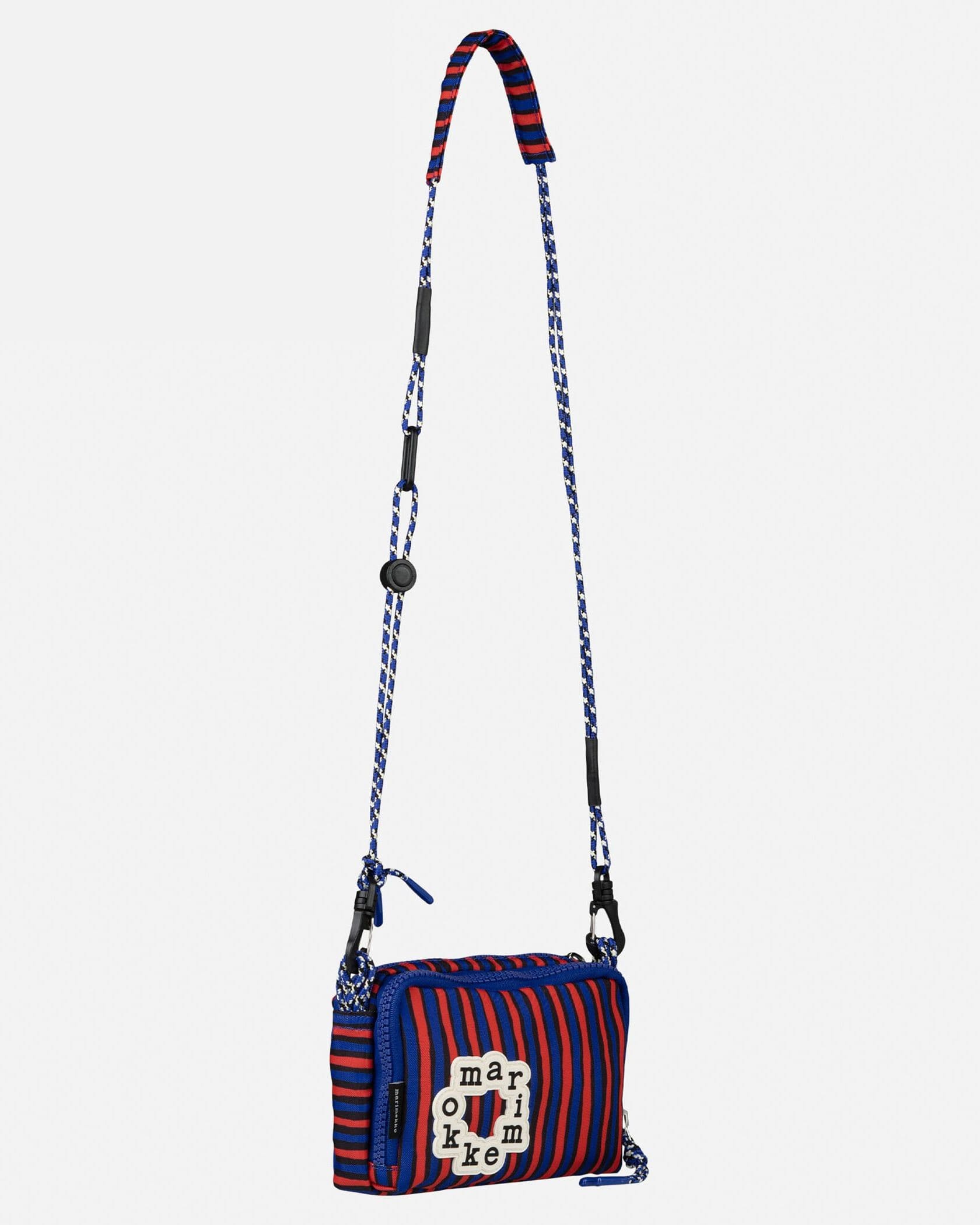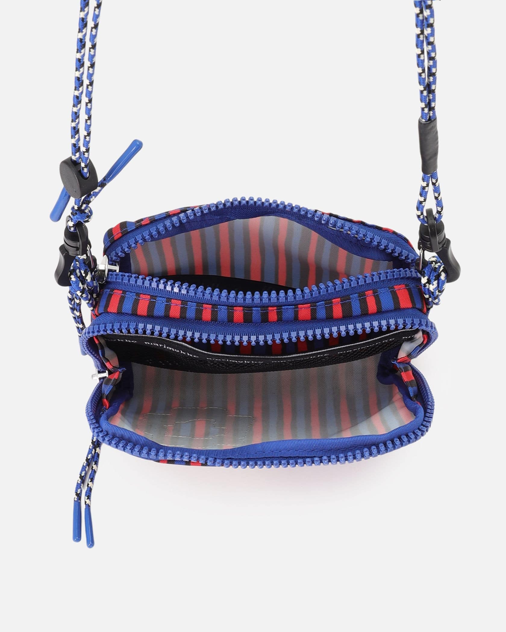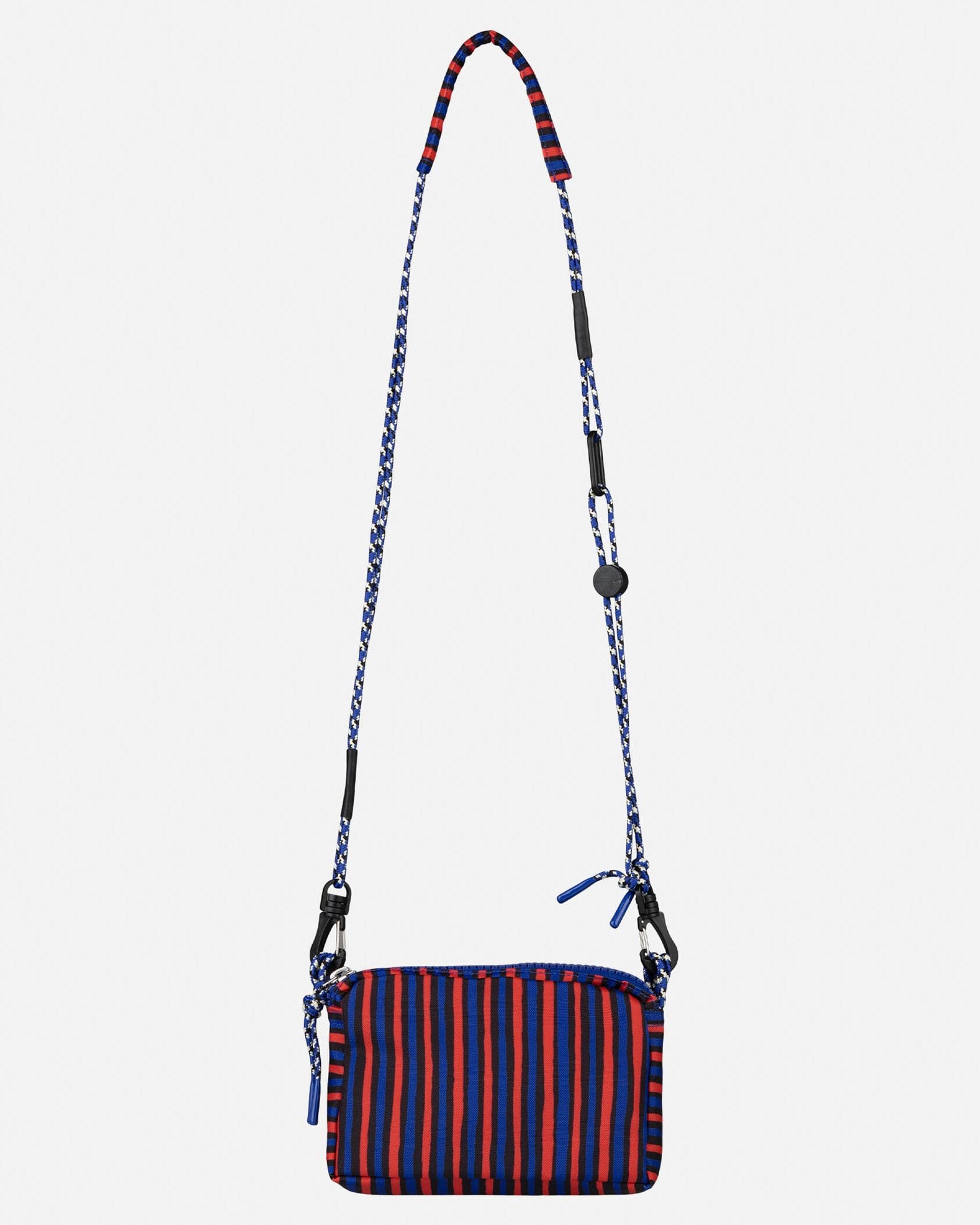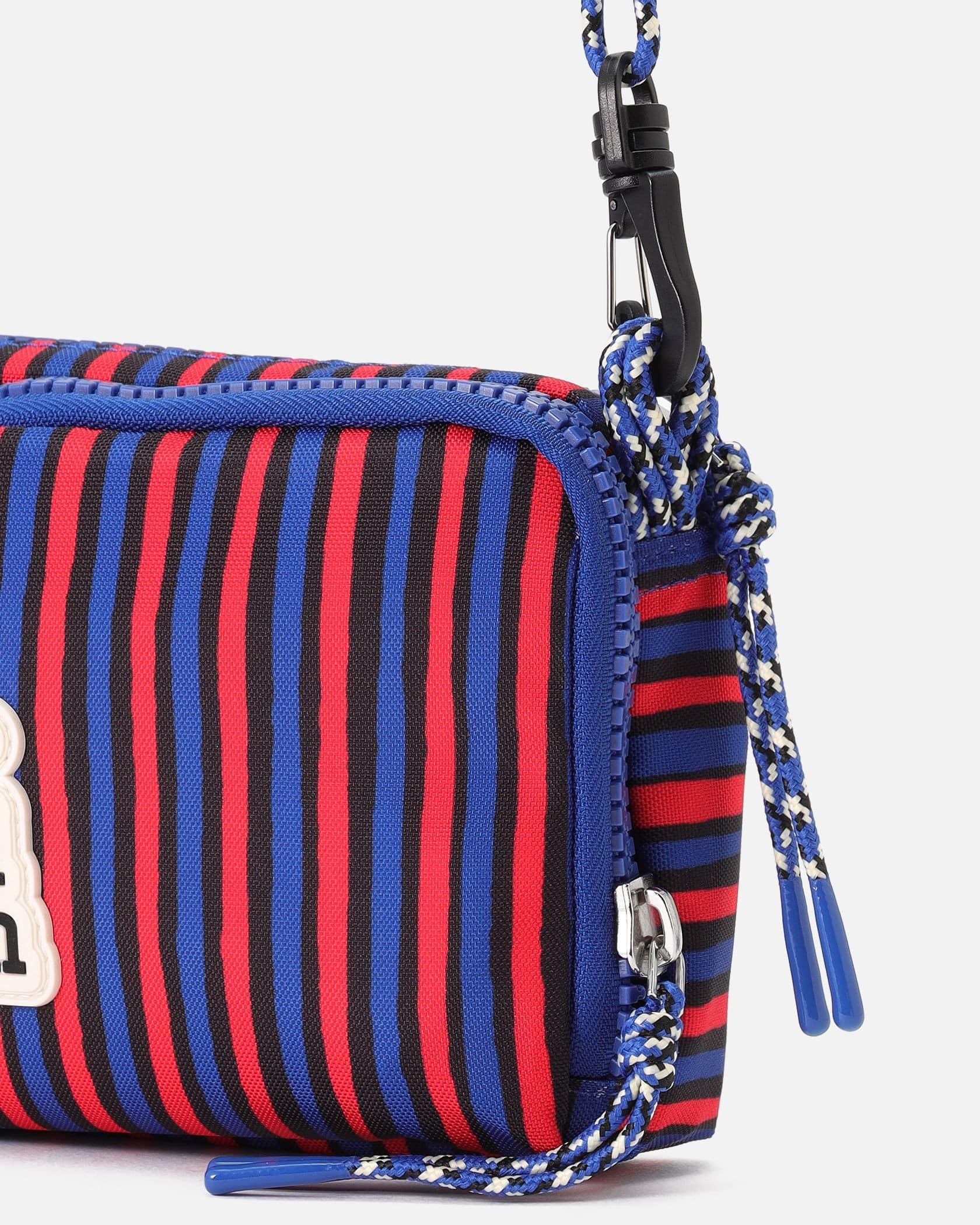 ハンドブラッシュのようなモダンなストライプ柄のショルダーバッグ。サークル型のブランドロゴがスタイリッシュなデザインポイント。ショルダーストラップは、着こなしに合わせて斜めがけにしたりと長さ調整可能。コンパクトなフォルムながら、2つのジップ付きポケットで使い勝手抜群なアイテムです。