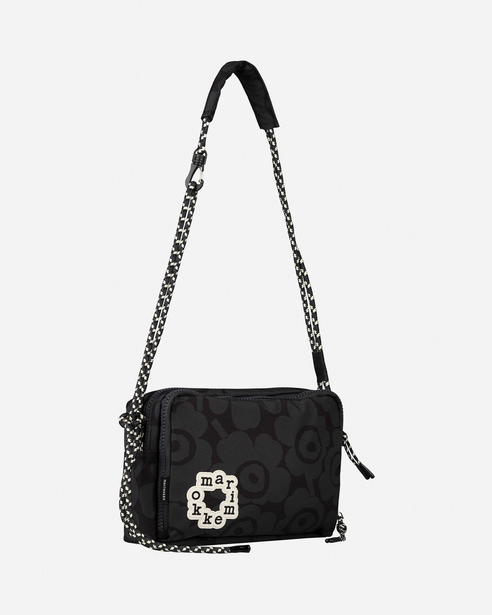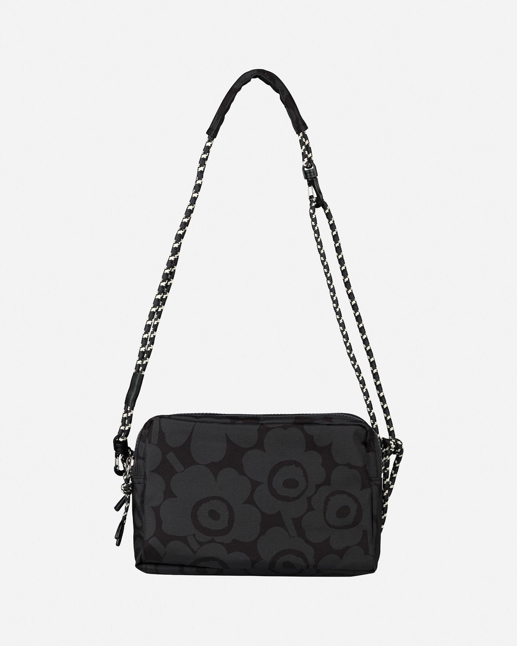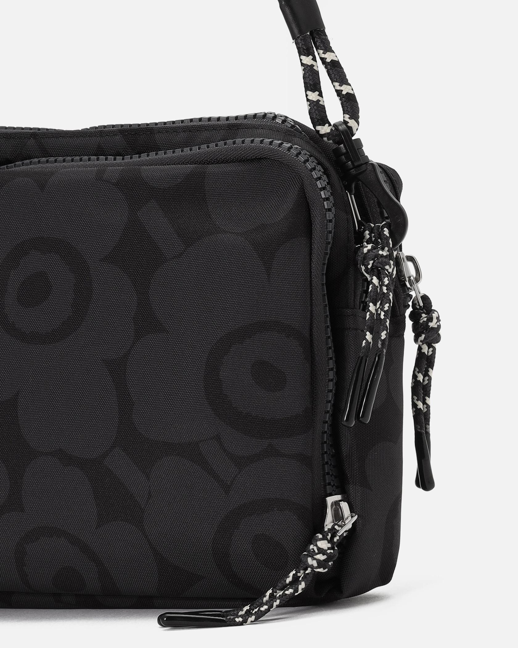 Marimekkoを代表するUnikko柄のショルダーバッグ。サークル型のブランドロゴがスタイリッシュなデザインポイント。ショルダーストラップは、着こなしに合わせて斜めがけにしたりと長さ調整可能。2つのジップポケットで使い勝手抜群。あらゆるお出かけにフィットする便利なアイテムです。