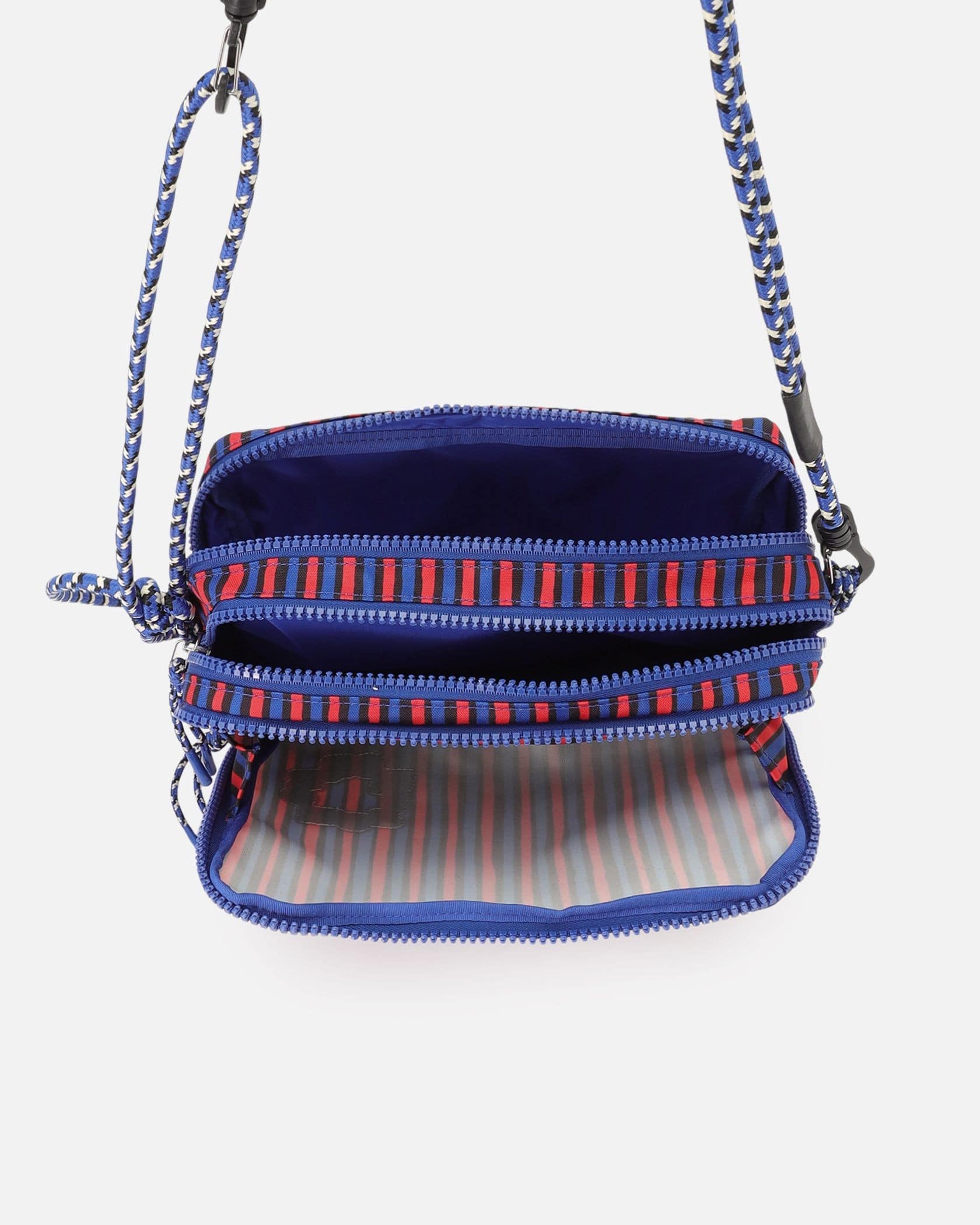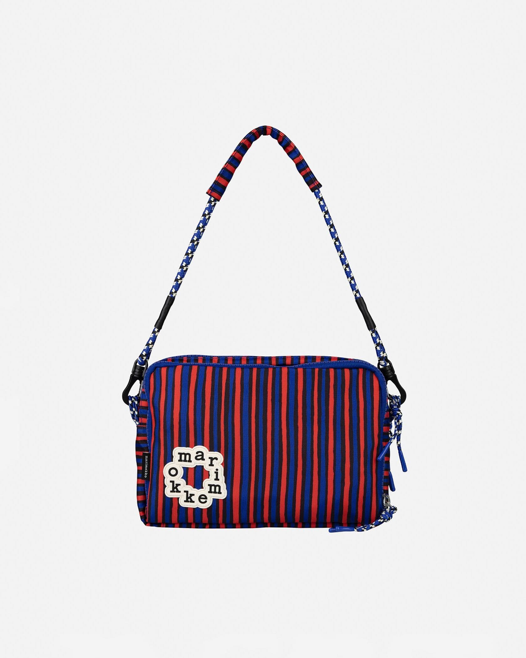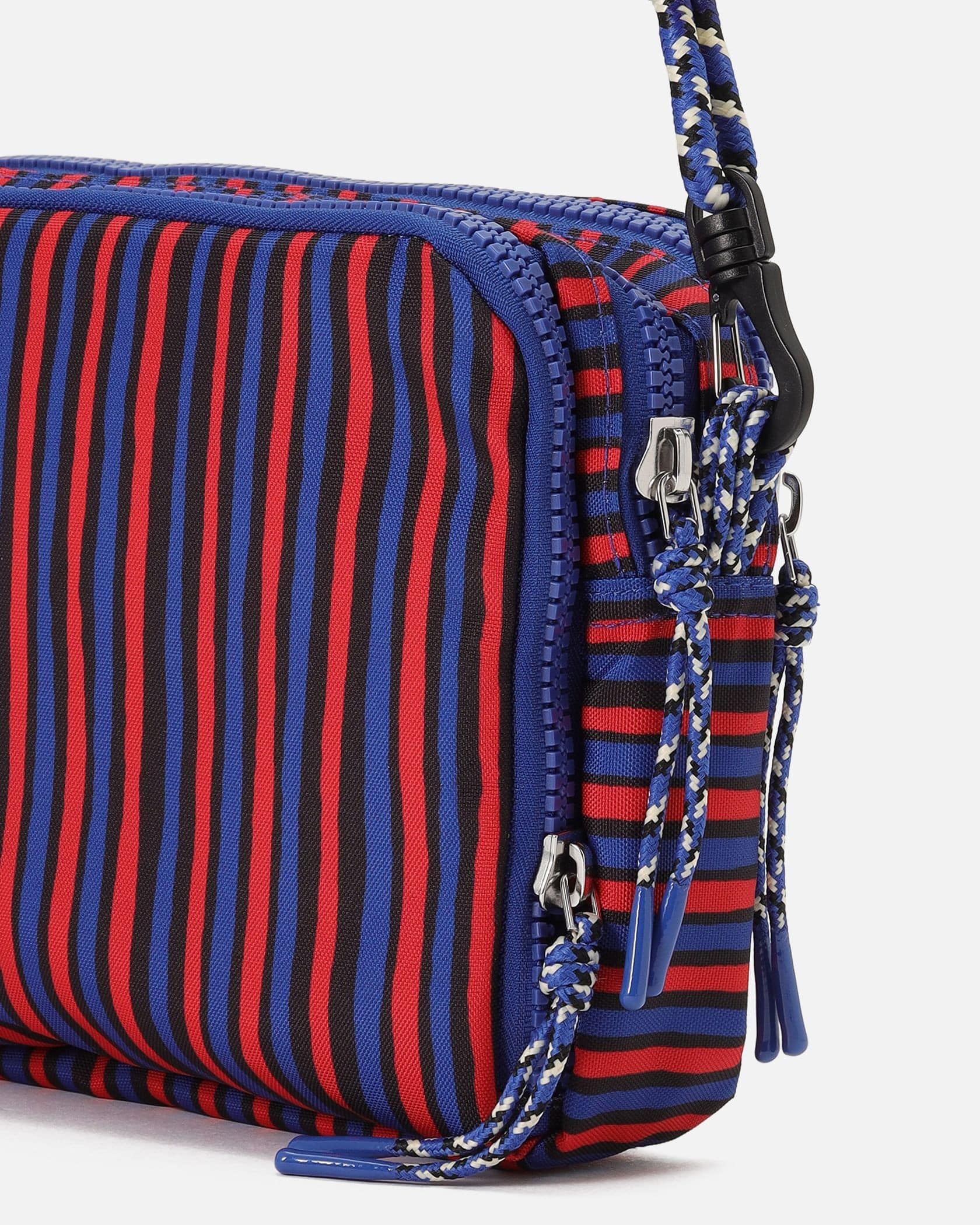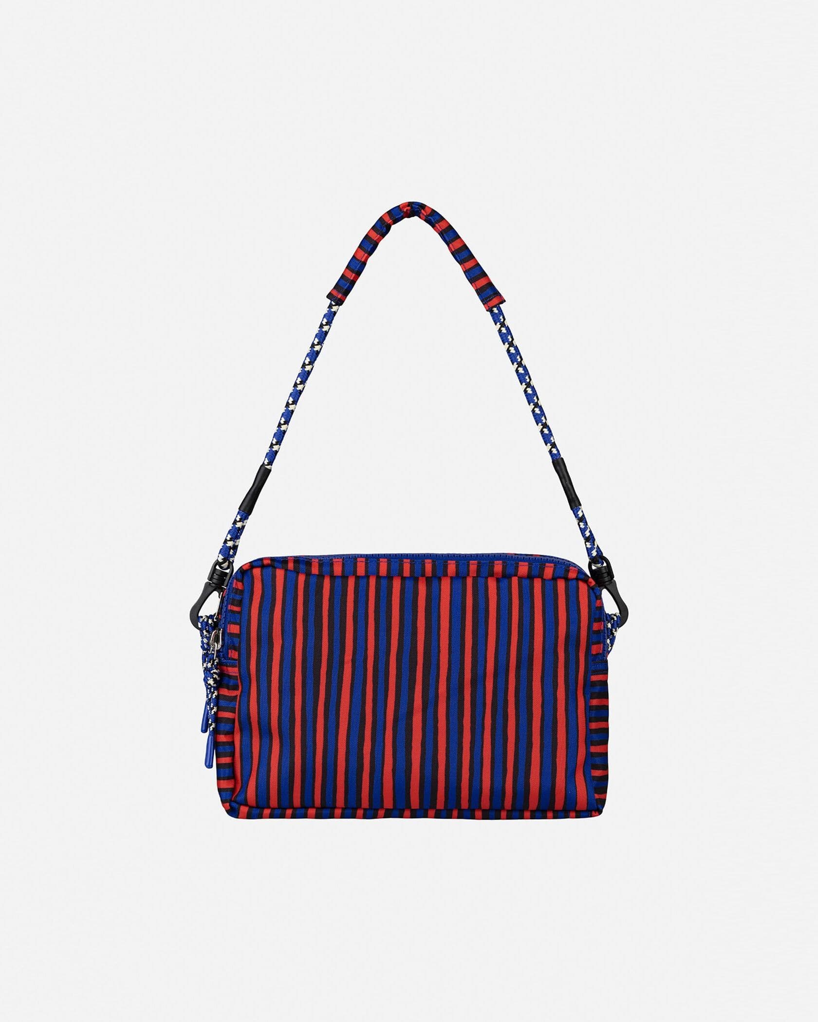 ハンドブラッシュのようなモダンなストライプ柄のショルダーバッグ。サークル型のブランドロゴがスタイリッシュなデザインポイント。ショルダーストラップは、着こなしに合わせて斜めがけにしたりと長さ調整可能。2つのジップポケットで使い勝手抜群。あらゆるお出かけにフィットする便利なアイテムです。