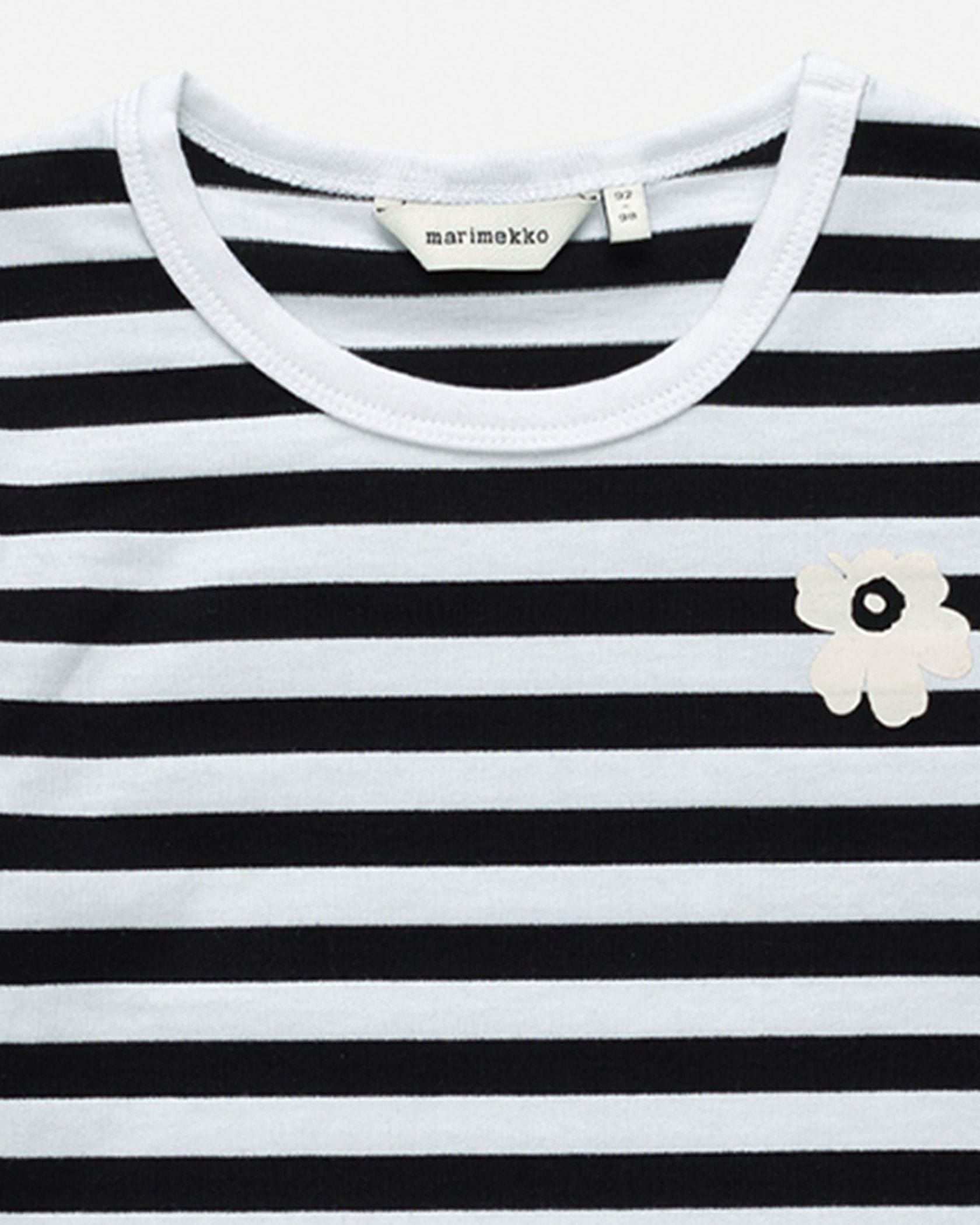MarimekkoからVinde Tasaraita Unikkoの長袖カットソーが登場です。お肌の敏感なキッズも安心なコットン100%素材で仕上げました。ジェンダーレスなストライプ柄であわせるアイテムを選ばないのもポイント、自分のお子様にはもちろんギフトにもおすすめのアイテムです。